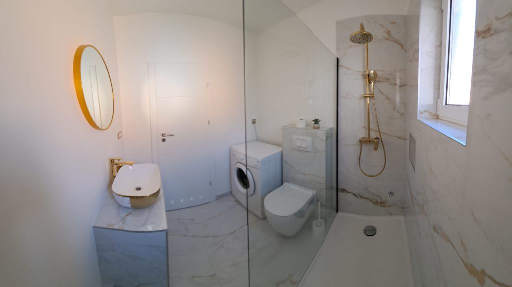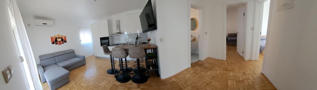 Appartementen D bevinden zich op 100-150 m van het Karabana-strand (3-5 minuten lopen) en op 400 m van het Sulterova Vala-strand.De luchthaven van Zadar ligt op 12 km afstand (5 km via een kortere route). Appartementen D bieden gasten gratis parkeergelegenheid, gratis wifi, terras/balkon, uitzicht op de tuin, zithoek, flatscreen-tv, accommodatie met airconditioning, volledig uitgeruste keuken met koelkast, oven, vaatwasser, magnetron, kookplaat, waterkoker voor water, een broodrooster en een eigen badkamer met een douche. De gemeenschappelijke barbecue binnenshuis is beschikbaar op afspraak. Bibinje (ruim 4.000 inwoners) ligt 6 km ten zuidoosten van de historische stad Zadar (10 minuten met de auto of bus), tussen de Adriatische toeristenweg en de zee, heeft vier kilometer kustlijn met stranden en paden, en wandelpaden langs de promenade in de ochtend en in de avond is een bijzondere ervaring aan zee. Lokale restaurants bieden speciale gerechten uit de regio, er zijn cafés, kleine winkeltjes, een markt, s