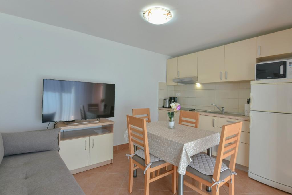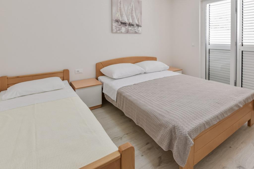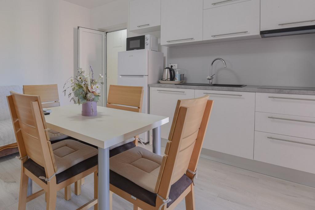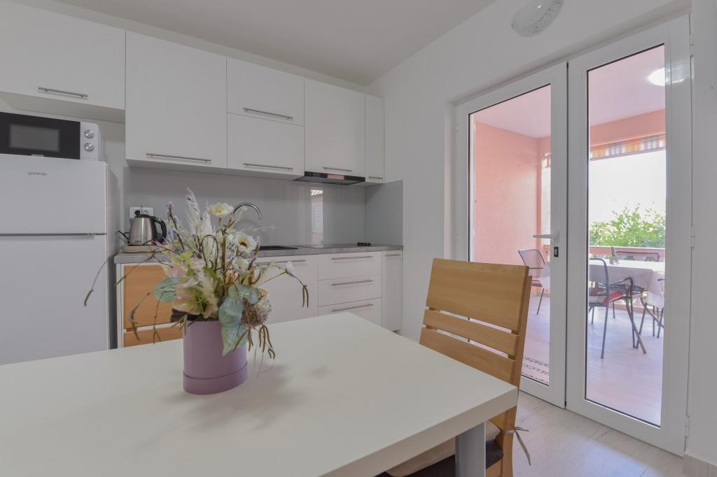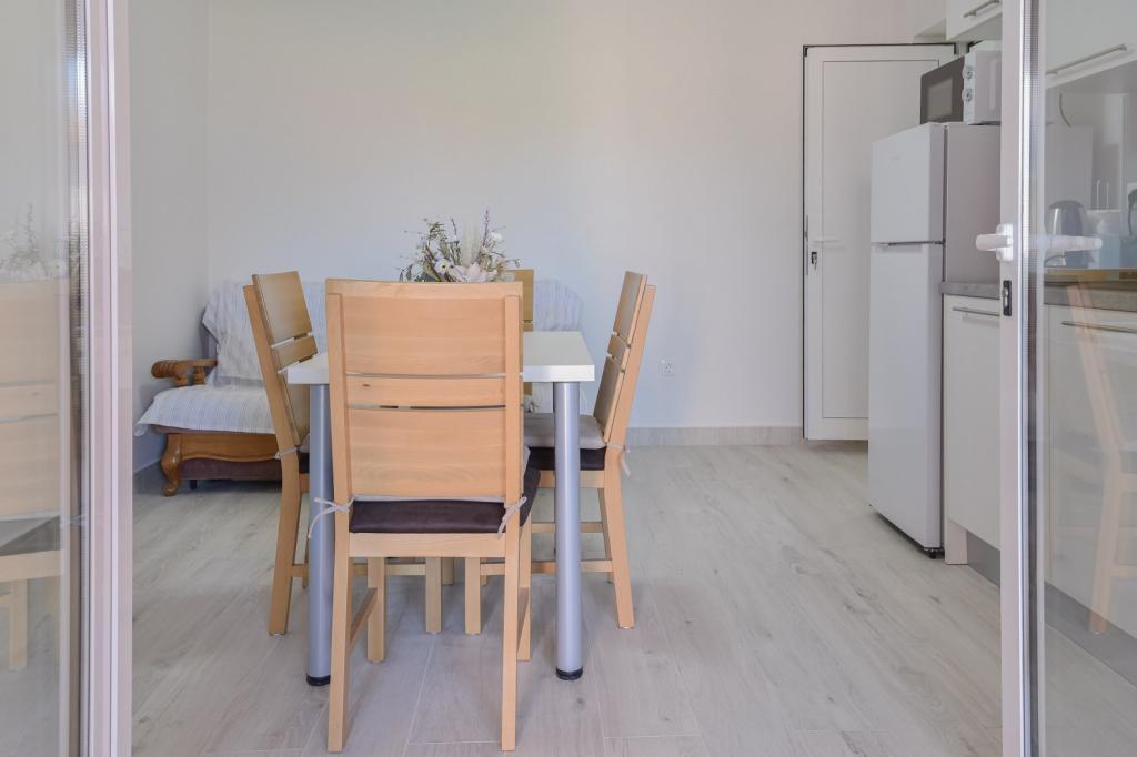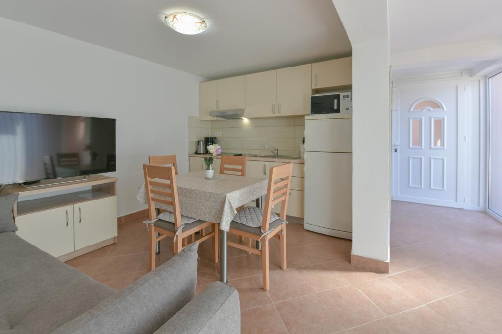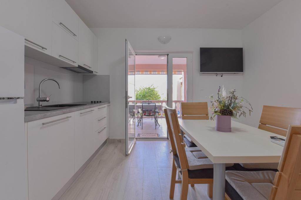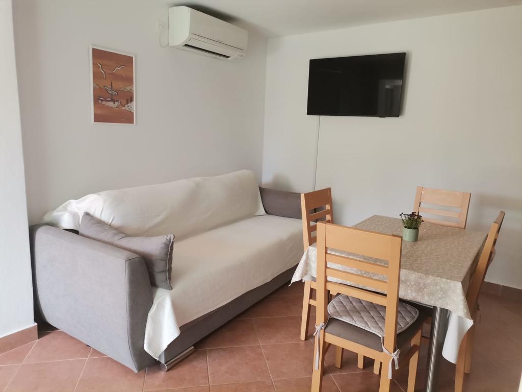 Proficiat aan de familie Frleti! Ze verwelkomden ons hartelijk en vriendelijk. Het appartement was netjes, schoon, voorzien van servies, beddengoed, tv, airconditioning en WiFi. Zoals het op de foto's staat, zo is het ook in werkelijkheid. Het appartement is ruim, mooi ingericht, de bedden zijn comfortabel om te slapen. Het heeft een groot terras met een luifel van waaruit u kunt genieten van het uitzicht op de mediterrane tuin van de familie Frlete. Een groot aantal goed onderhouden stranden met helderblauwe zee en prachtig versierde promenades langs de zee met een groot aantal restaurants en bars. Ideaal om te ontsnappen aan lawaai en het dagelijks leven. Rust, stilte met het geluid van krekels, het geschreeuw van meeuwen en het geluid van de zee. Puur hedonisme!