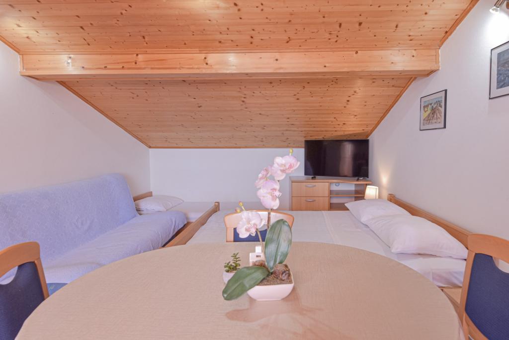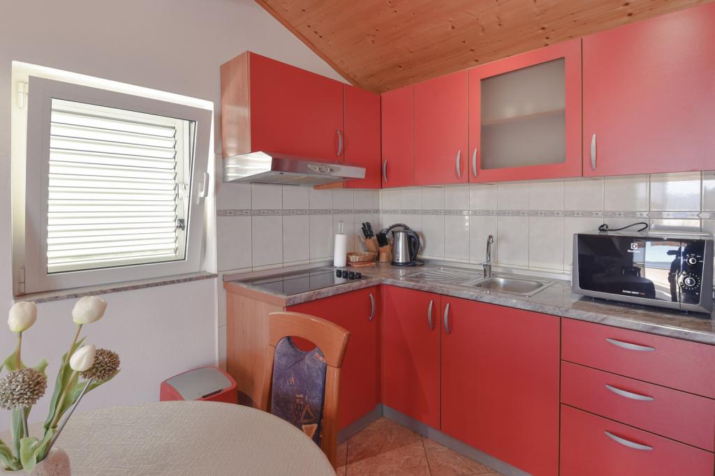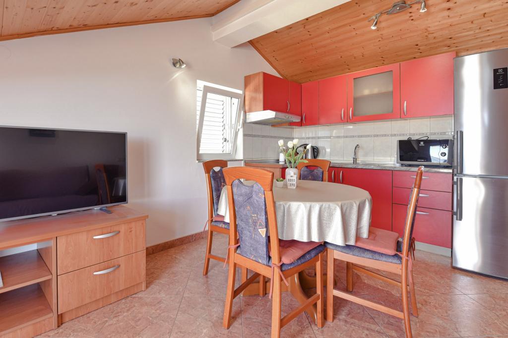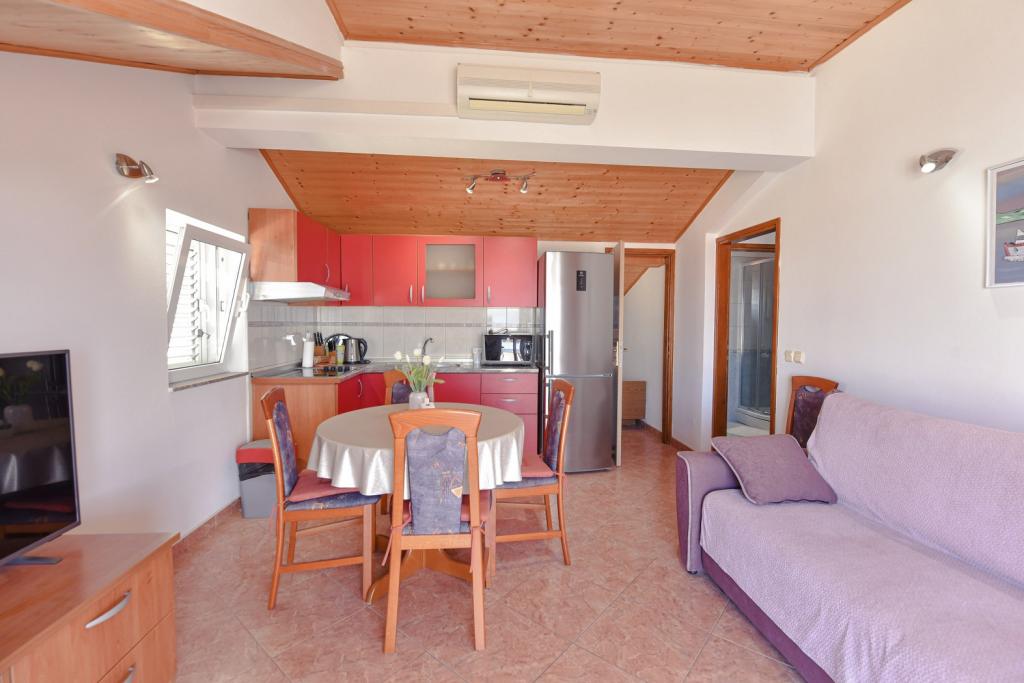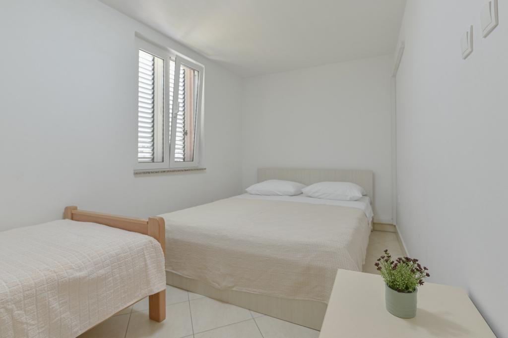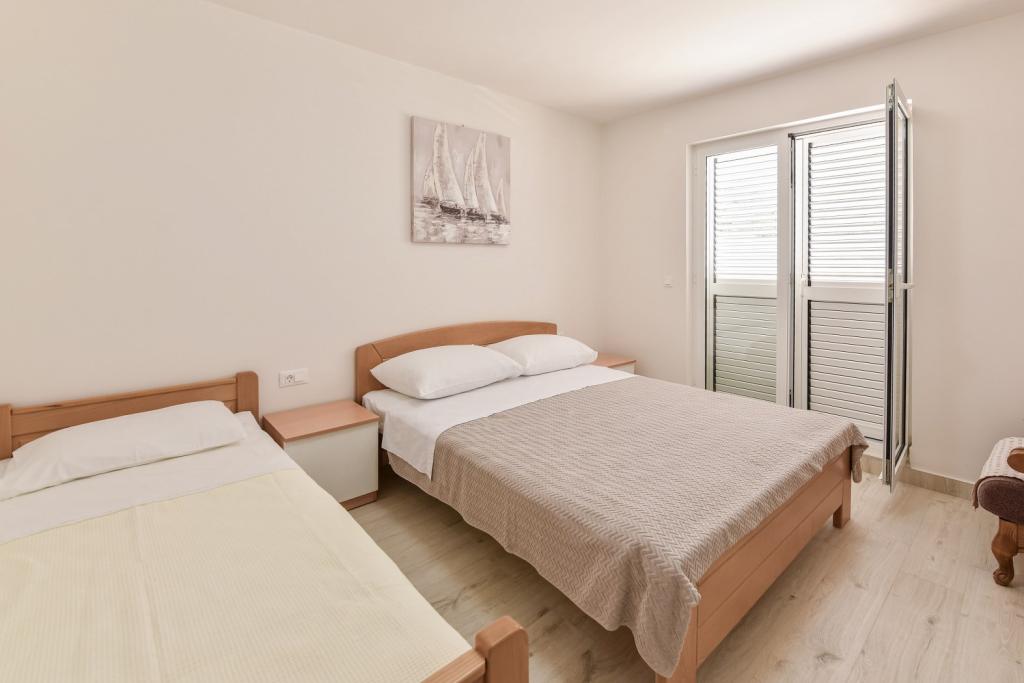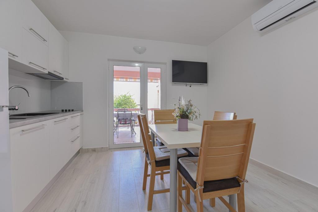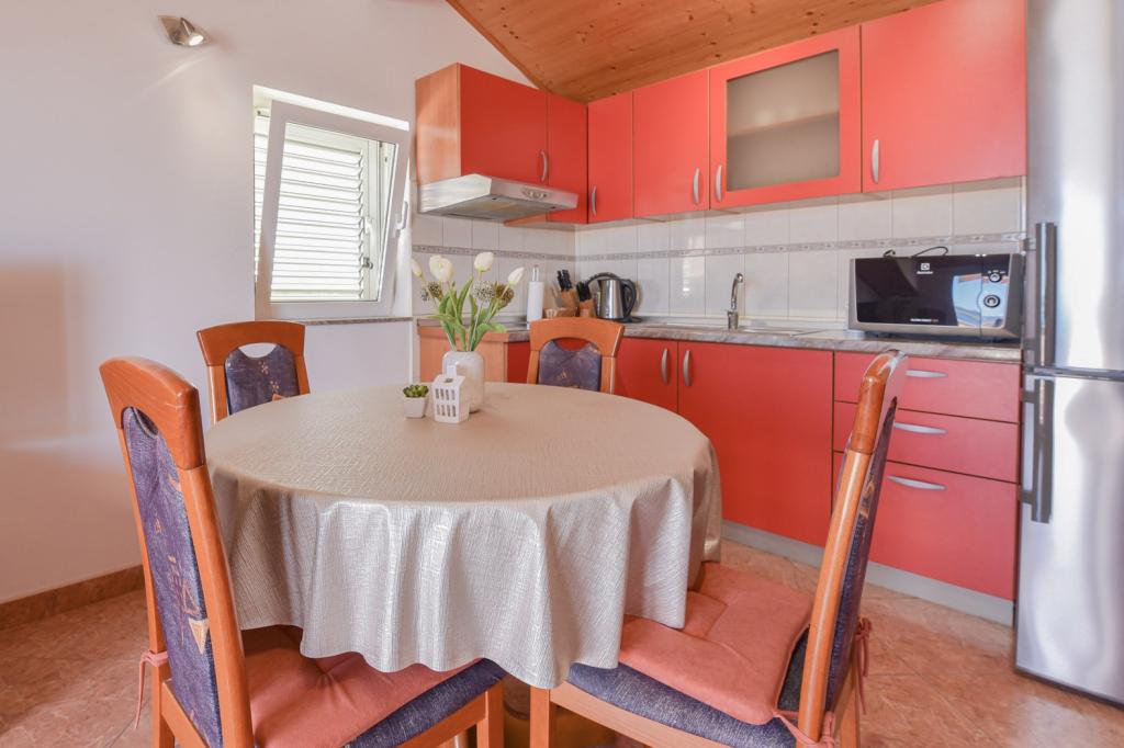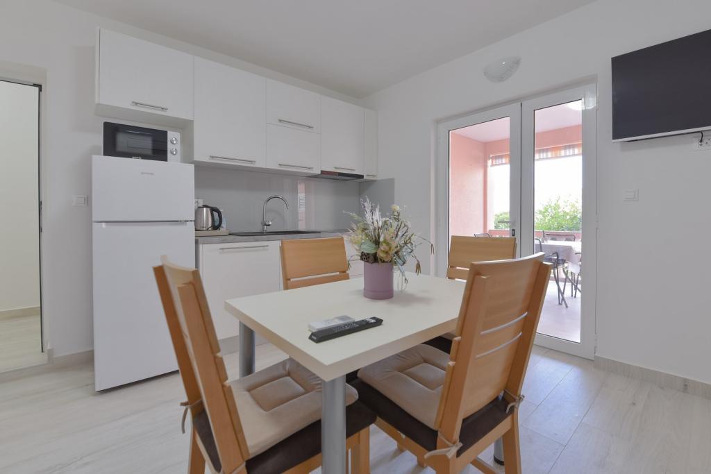 Proficiat aan de familie Frleti! Ze verwelkomden ons hartelijk en vriendelijk. Het appartement was netjes, schoon, voorzien van servies, beddengoed, tv, airconditioning en WiFi. Zoals het op de foto's staat, zo is het ook in werkelijkheid. Het appartement is ruim, mooi ingericht, de bedden zijn comfortabel om te slapen. Het heeft een groot terras met een luifel van waaruit u kunt genieten van het uitzicht op de mediterrane tuin van de familie Frlete. Een groot aantal goed onderhouden stranden met helderblauwe zee en prachtig versierde promenades langs de zee met een groot aantal restaurants en bars. Ideaal om te ontsnappen aan lawaai en het dagelijks leven. Rust, stilte met het geluid van krekels, het geschreeuw van meeuwen en het geluid van de zee. Puur hedonisme!