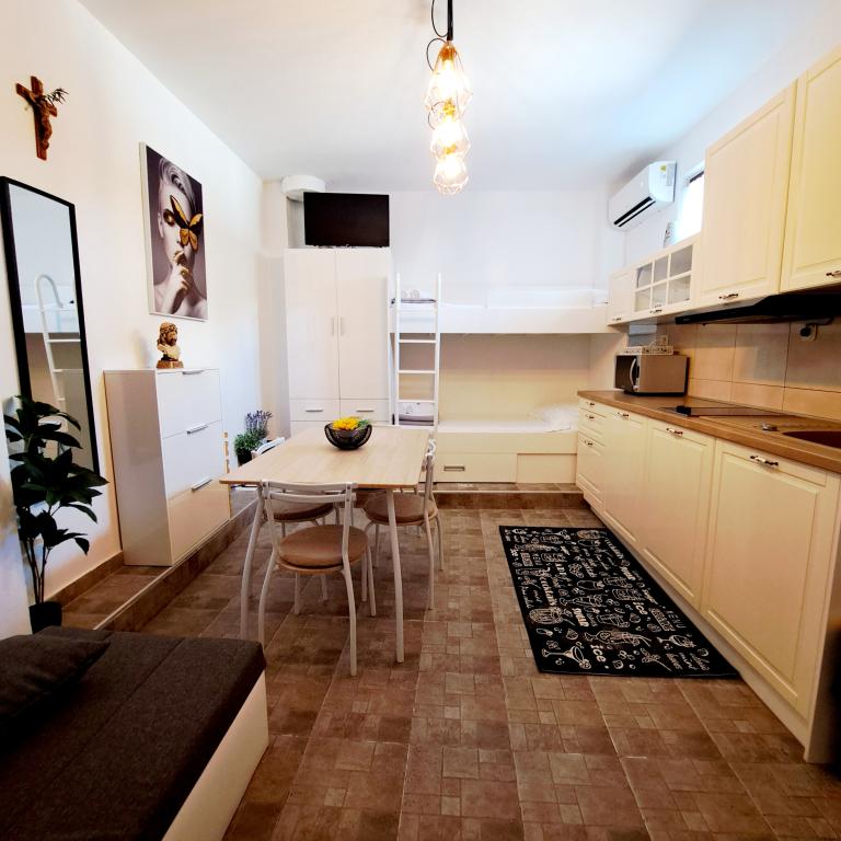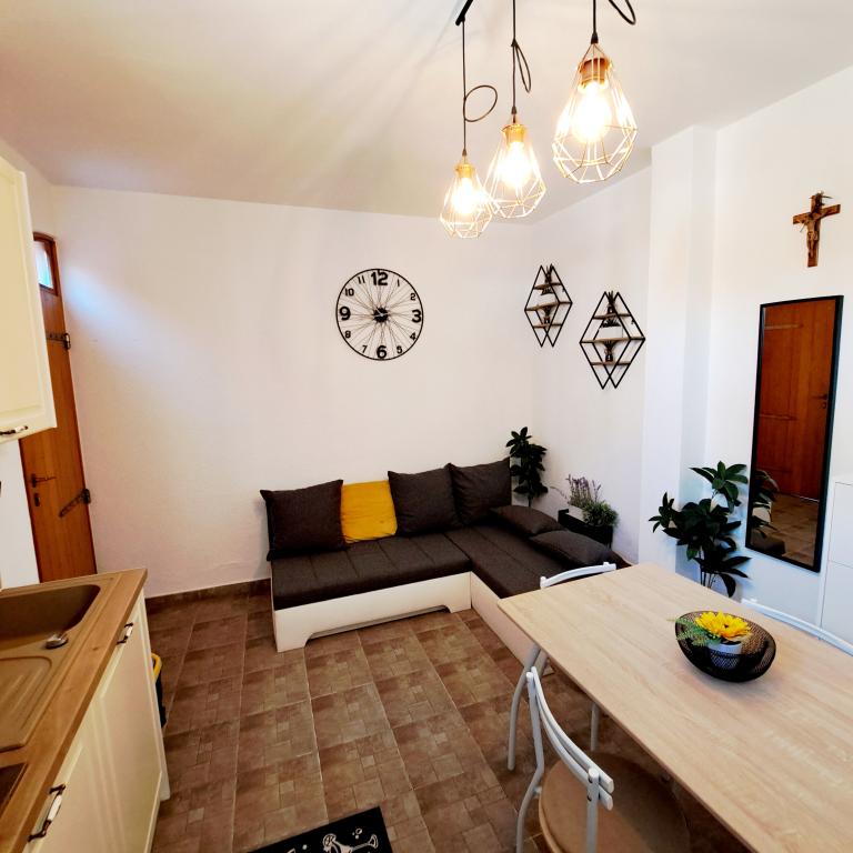 Appartementen Staro selo bevinden zich op de begane grond van een gezinswoning. Ze bestaan uit twee slaapkamers, badkamer, keuken en woonkamer. Elk appartement heeft een terras om uit te rusten. De appartementen beschikken over een buitengrill, een taverne voor gezelligheid, een beveiligde parkeerplaats onder videobewaking, een buitendouche, ligbedden, gratis WiFi, een eigen speeltuin voor kinderen voor diverse activiteiten (voetbal, basketbal, darten, tafeltennis, badminton, terwijl schoenen en planken voor de zee die ze huren.). De appartementen liggen zeer dichtbij de zee, restaurants, winkels en het centrum. Bibinje ligt op 5 km van de historische stad Zadar. In de omgeving zijn de nationale parken Krka, Kornati, Paklenica, Plitvicemeren en natuurparken. Kom genieten van onze plek met een prachtige en unieke zonsondergang.