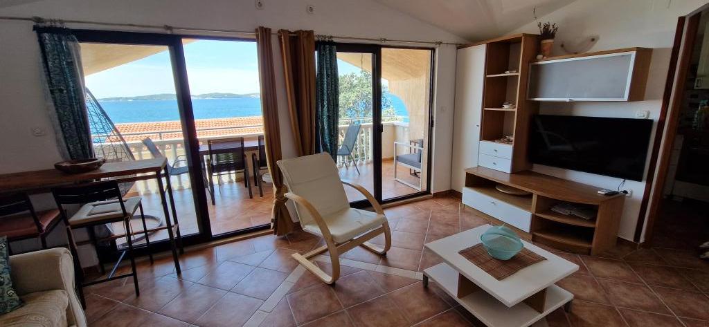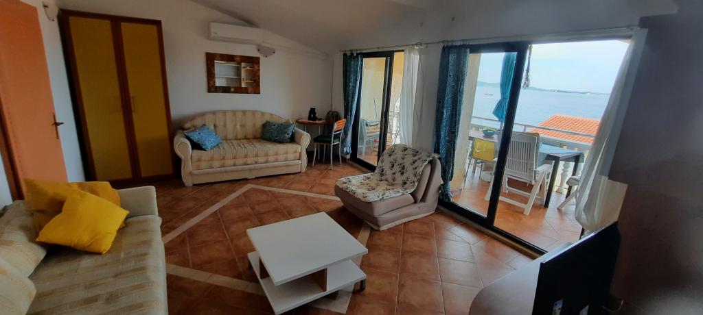 Villa Ivan is gelegen in een familiale omgeving van huizen in de straat aan zee. Vanuit het appartement slechts een paar stappen naar het strand! Huiselijke sfeer en appartementen met charme. Gratis WiFi, satelliet-tv, eigen parkeerplaats. Het strand voor het huis is typisch Dalmatisch met pieren, kiezels en een betonnen zonnedek. Het strand is te bereiken met een kinderwagen. Het centrum met restaurants, winkels en andere bijbehorende voorzieningen op slechts 10-15 minuten loopafstand. Vanwege de locatie is Villa Ivan een ideale keuze voor uw rustige familievakantie en het startpunt van uw actieve vakantie en wilt u de vele historische of natuurlijke schoonheden bezoeken die in de omgeving te vinden zijn, zoals PP Telascica, NP Kornati, Vrana Lake, Krka-watervallen, NP Paklenica, Velebit. De algemeen bekende en mooie historische stad Zadar, naar verluidt de stad met de mooiste zonsondergang, ligt op slechts 6 km afstand. Marina Dalmacija met de bijbehorende voorzieningen ligt op ongeveer 1 km van het huis. Welkom!