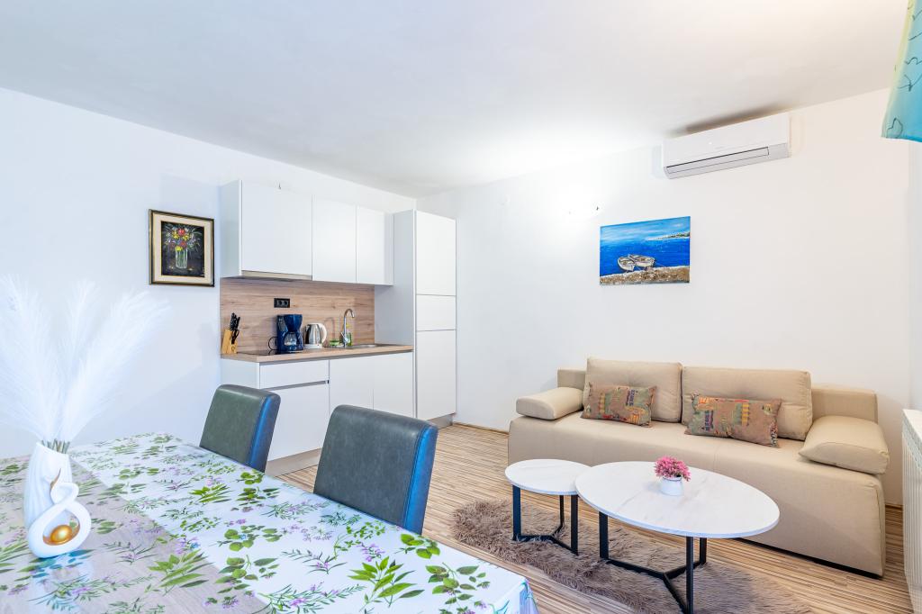 Gelegen in Bibinje, vlakbij Zadar, in een groene oase op slechts een minuut lopen van het strand, biedt Villa Rudi zijn gasten een ontspannen sfeer voor een ideaal verblijf. Villa Rudi biedt tevens 8 wooneenheden, waarvan 3 kamers en 5 appartementen. Marina Dalmacija ligt op een paar minuten van de villa en de stad Zadar, die ook bekend staat om de mooiste zonsondergangen, ligt op slechts 15 minuten rijden. Villa Rudi biedt gratis WiFi en privéparkeergelegenheid. Alle wooneenheden zijn uitgerust met lcd-tv's, airconditioning en de nieuwste technologie: tv-satellieten die alle wereldprogramma's in alle talen volgen. Elk appartement heeft een eigen uitgeruste badkamer, moderne keuken, koelkast en standaard bestek en koffiezetapparaat. Tijdens hun verblijf kunnen gasten genieten van een barbecue in de tuin en gratis gebruikmaken van onze ligbedden. De luchthaven ligt op slechts 15 minuten rijden van de accommodatie, evenals de toegang tot de snelweg