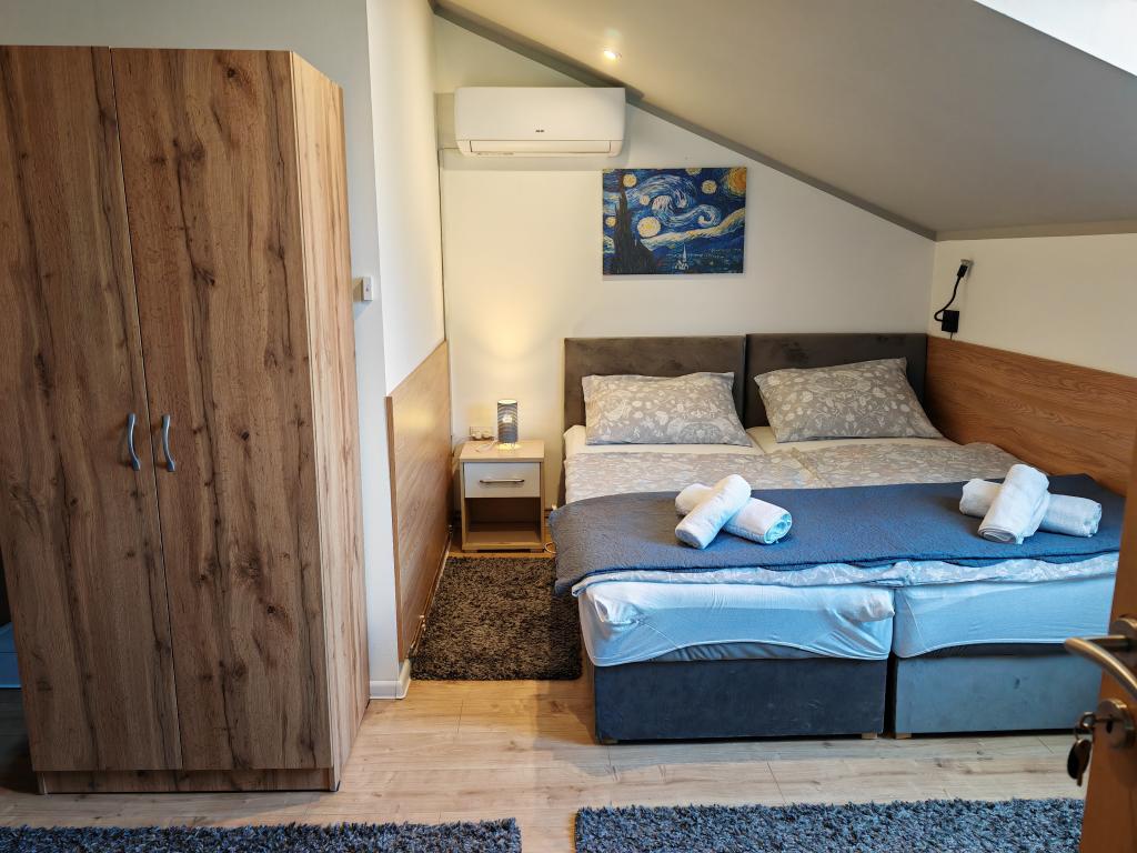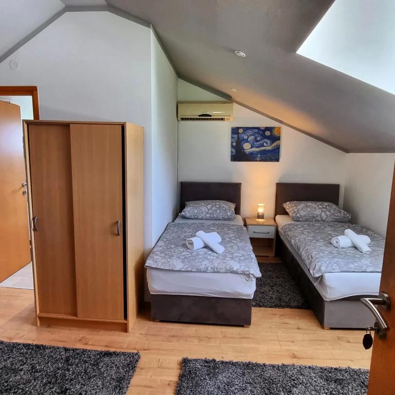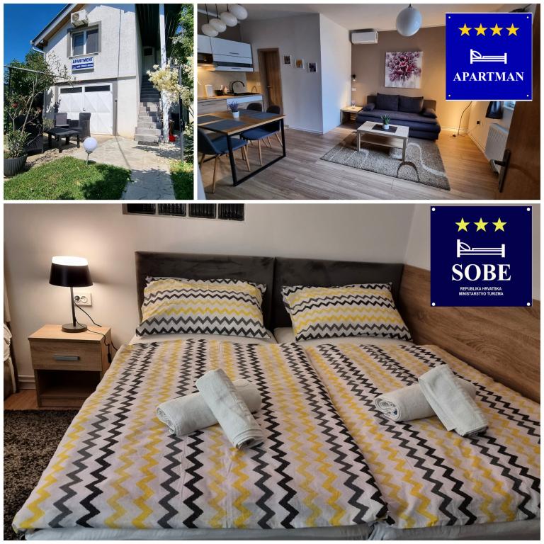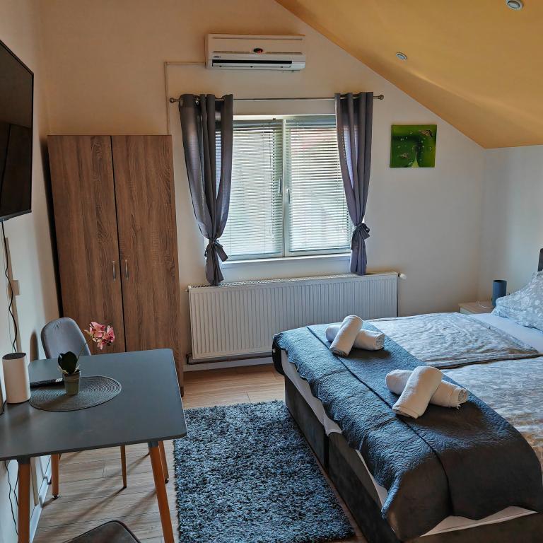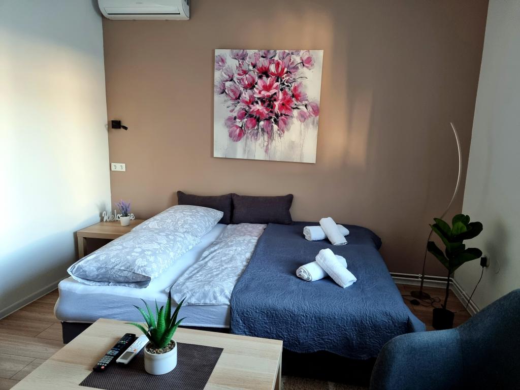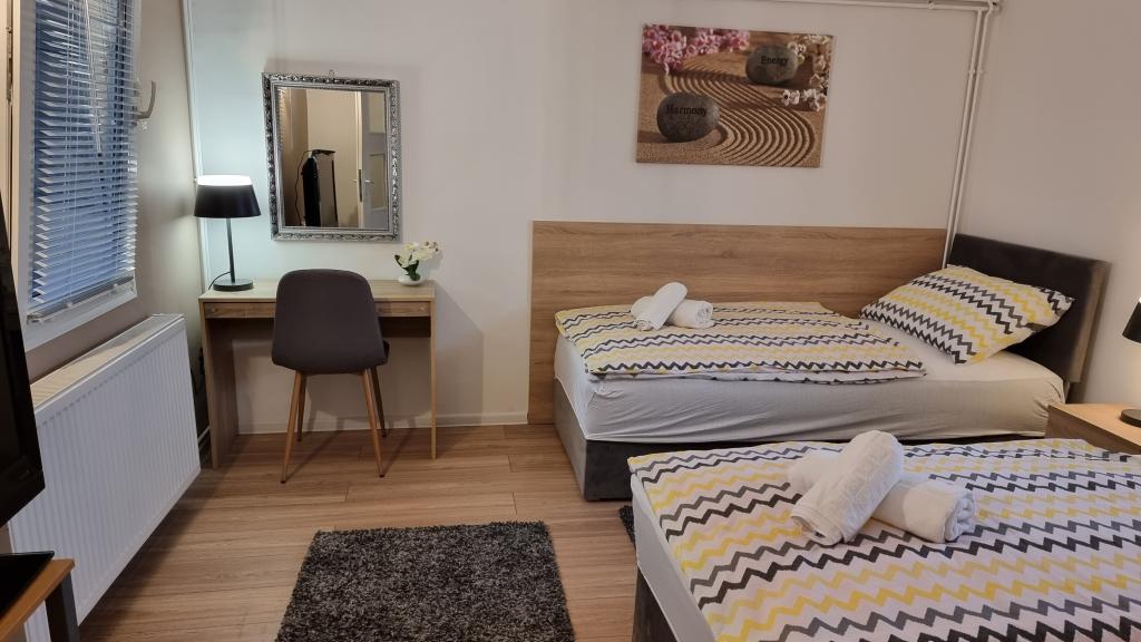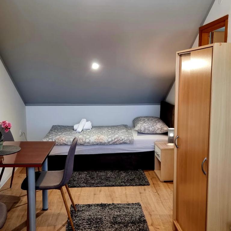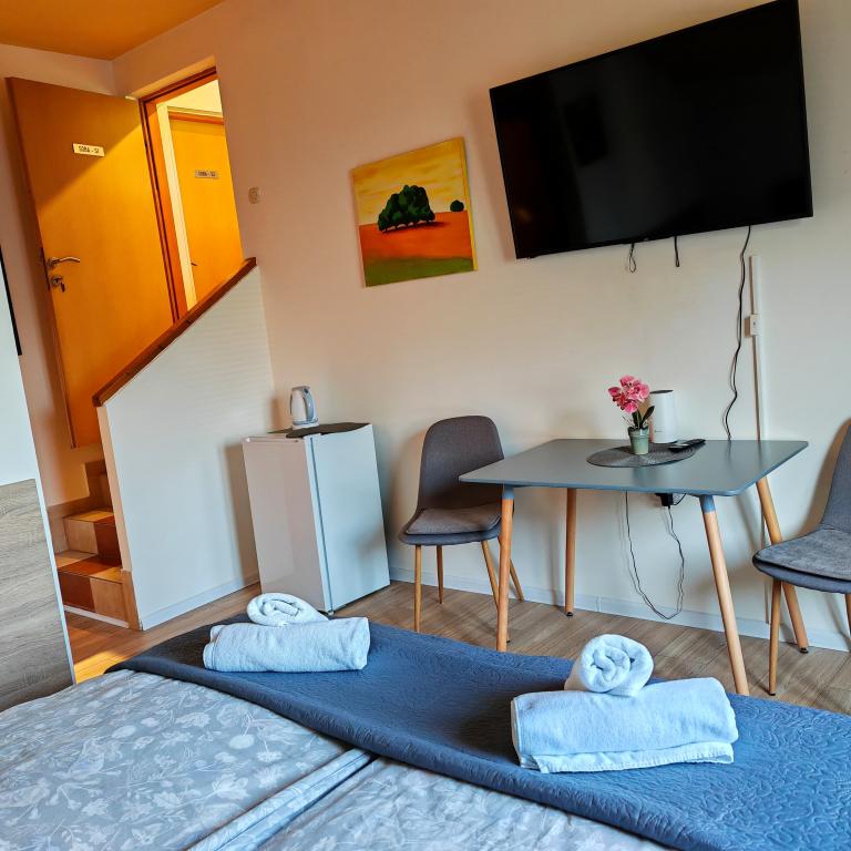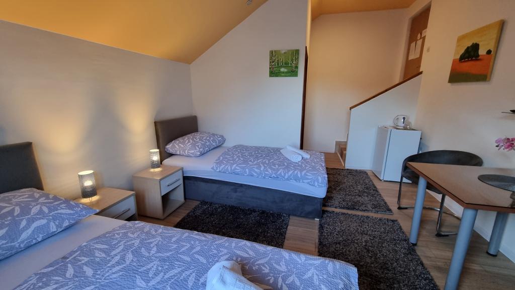 Privé accommodatie Corina, moderne en comfortabel ingerichte kamers en appartement in het rustige stadje Bilje, een buitenwijk van Osijek, 3 km van het natuurpark Kopački rit, en 5 km van de stad Osijek (Tvrđe). kunt genieten van de voordelen van de natuur en wakker worden met de geur van verse bloemen en fluitende vogels. Kamer (dubbel 23 m2) Kamereigenschappen: - uitzicht op de tuin - SMART TV 126 cm (internet televisie, Netflix) - airconditioning - strijkijzer - eettafel met twee stoelen - centrale verwarming - klamboe - kledingkast - badkamer met douche en toilet - haardroger - gratis toiletartikelen - beddengoed - gratis draadloos internet. Driepersoonskamer (25 m2) Kamereigenschappen: - uitzicht op de tuin - SMART TV 110 cm (internet televisie, Netflix) - airconditioning - strijkijzer - eettafel met twee stoelen - centrale verwarming - klamboe - badkamer met douche en toilet Appartement 46 M2 tuin uitzicht - SMART TV 120 cm (internet televisie-woonkamer) Smart TV 126 cm slaapkamer wasmachine