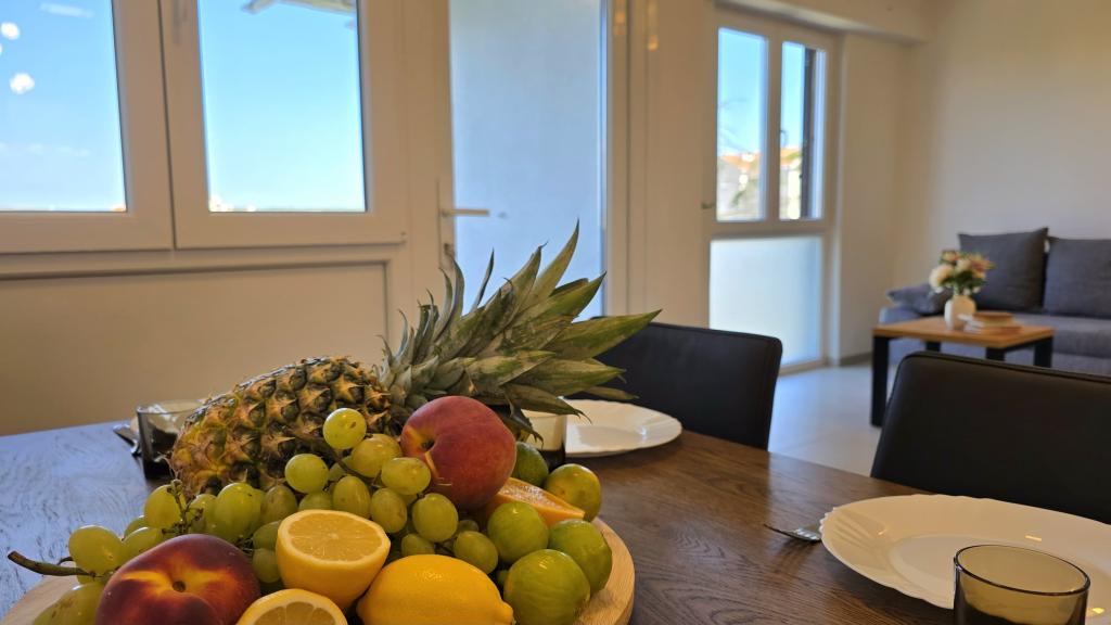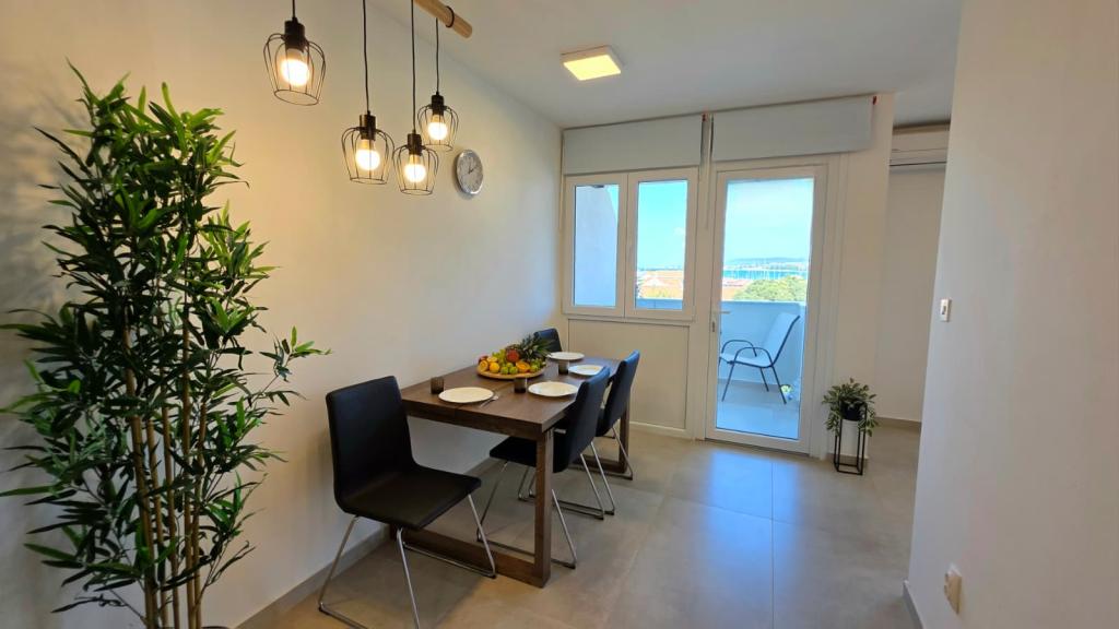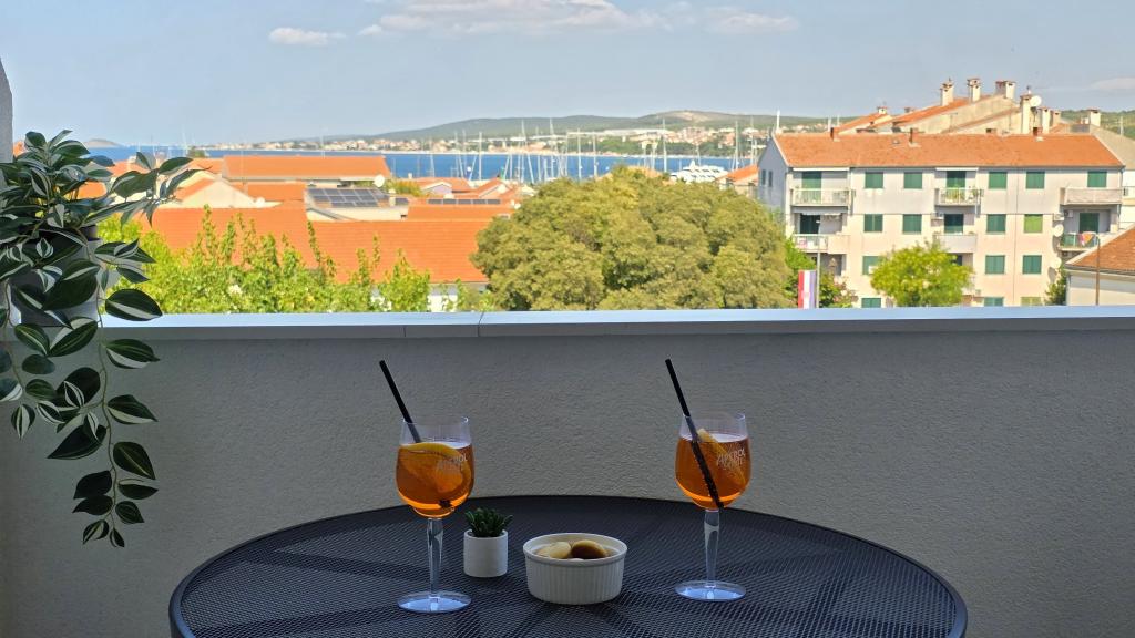 Onlangs gerenoveerd appartement in het centrum van Biograd. Alle essentiële voorzieningen zoals restaurants, cafés, banketbakkers, winkels, enz. zijn vlakbij. Het strand ligt op 5 minuten lopen. Het balkon biedt uitzicht op zee en het centrum van Biograd. Het appartement beschikt over een vaatwasser en een wasmachine. Het busstation is vlakbij. Het appartement bevindt zich op de vierde verdieping in een gebouw zonder lift.