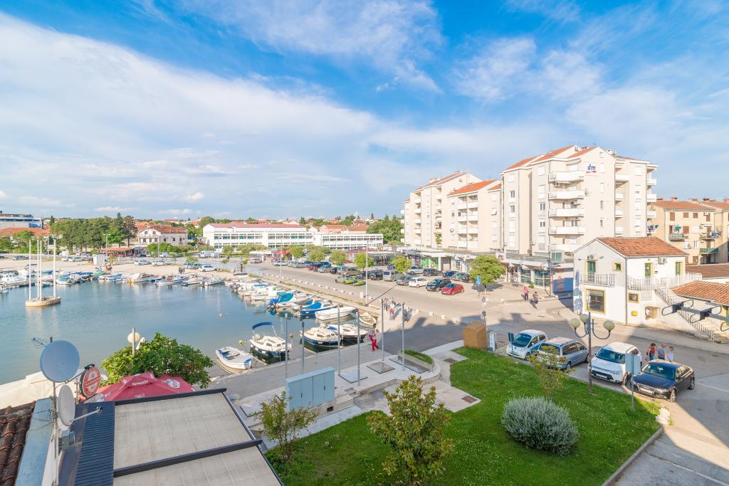 Het appartement is gelegen in een woongebouw op de tweede verdieping op het adres van koning Petar Svačić 20a Biograd na moru in het centrum van Biograd na moru. Balkon, uitzicht op de jachthaven Kornat en Shangulin, veerboot naar Tkon (eiland Pasman) 100 meter en een boot naar Vrgada, bijna 100 m alle pizzeria-restaurants, lokaal museum, kerk. Strand 5 minuten gezondheidscentrum 200 meter. Een fles wijn en een gekoeld drankje van cognac, sap, mineraalwater, fruit wachten op de gast. Het appartement is van alle gemakken voorzien: beddengoed, handdoeken, theedoeken, servies, internet, tv. Stad Zadar en luchthaven 33 km, Šibenik 40 km boten naar Kornati 200 m dicht bij Nationaal Park Krka 40 km, Zrmanja 25 km. markt 30 m, winkel, bakkerij 30 m.