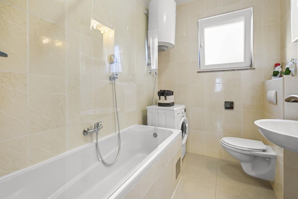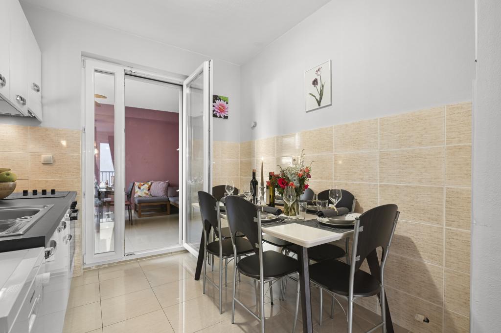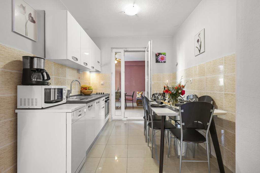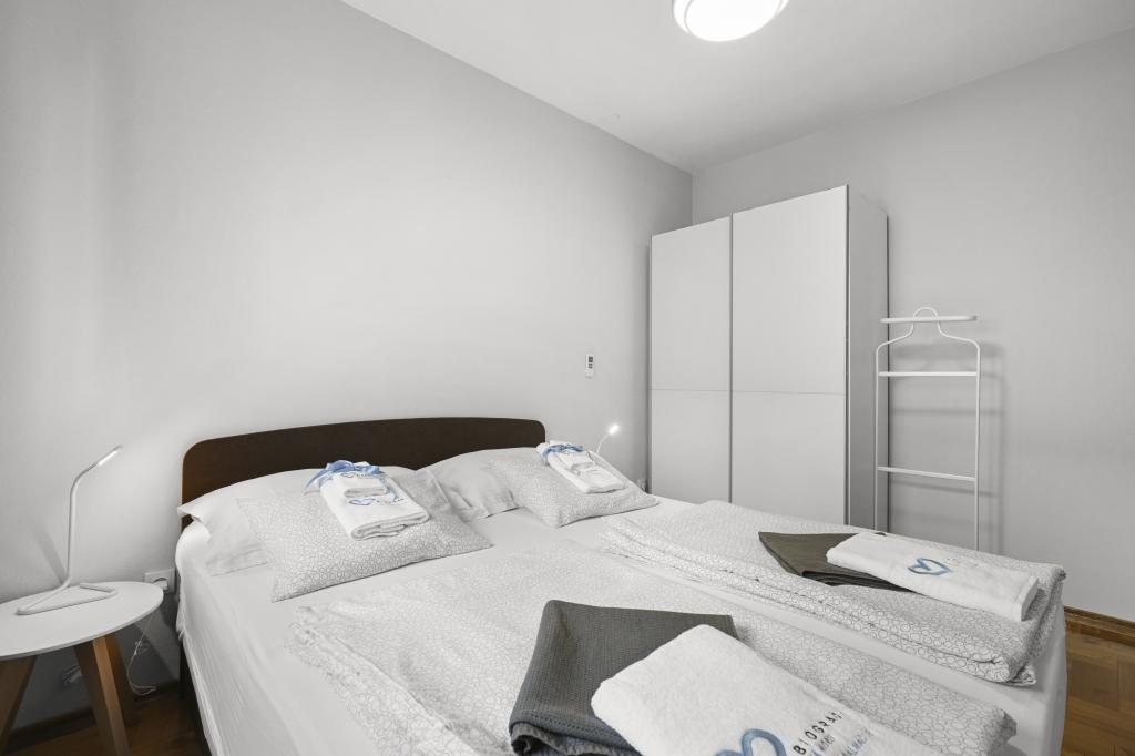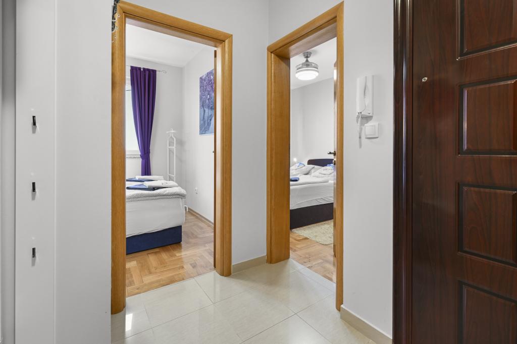 Appartement Majviva is gelegen op een toplocatie in het prachtige, kleine familiestadje Biograd na Moru. Zoals de naam al doet vermoeden, is het aan drie kanten omgeven door de zee en prachtige stranden. Het appartement ligt in het centrum, in een rustige straat op 150 meter van het strand van Dražice, dat bekroond is met de Blauwe Vlag voor de mooiste stranden van de Adriatische Zee. Het appartement is van alle gemakken voorzien en bevindt zich op de eerste verdieping van een klein gebouw met slechts 3 appartementen. Op de binnenplaats van het gebouw is een privéparkeerplaats voor één auto, gemarkeerd met de letter M (de eerste letter van de naam van het appartement). Het appartement beschikt over twee slaapkamers met een tweepersoonsbed, een woonkamer met een grote hoekbank die kan worden omgebouwd tot een echt bed voor twee extra personen, 2 badkamers (één met een bad en de andere met een douche), een volledig uitgeruste keuken (grote koelkast met vriezer, vaatwasser, koffiezetapparaat, waterkoker, oven, enz.) en een groot overdekt terras. De ideale locatie van het appartement zorgt voor volledige ontspanning, omdat u de auto de hele vakantie niet hoeft te gebruiken.