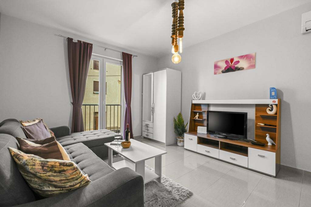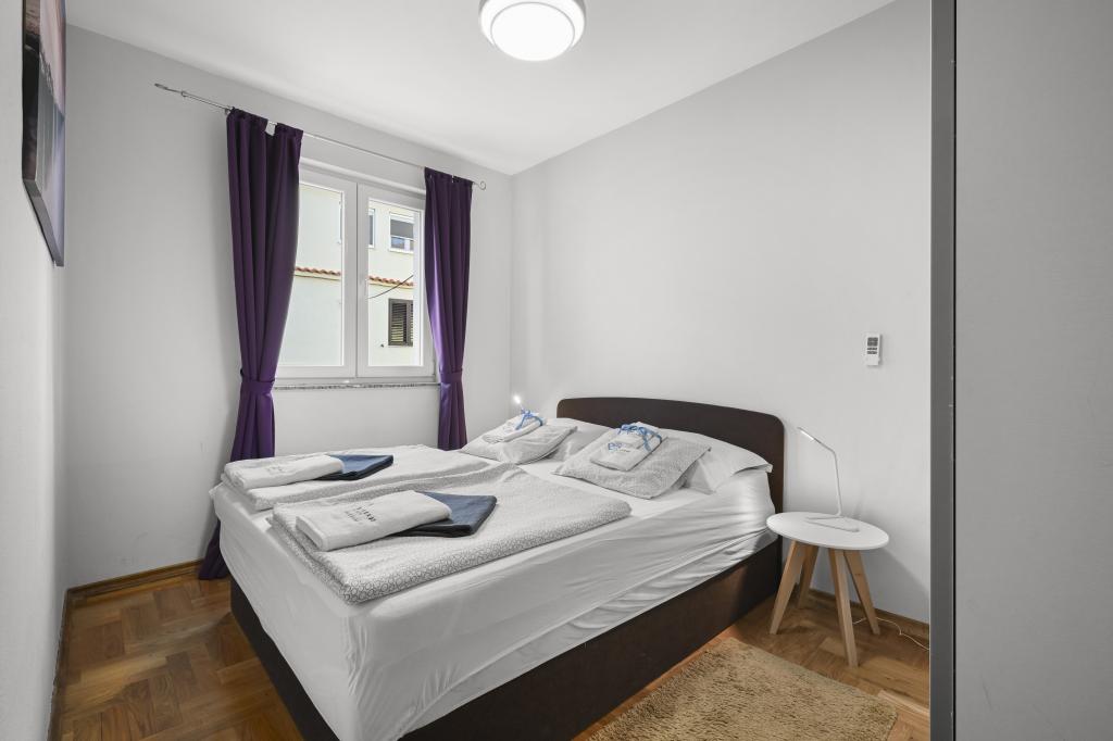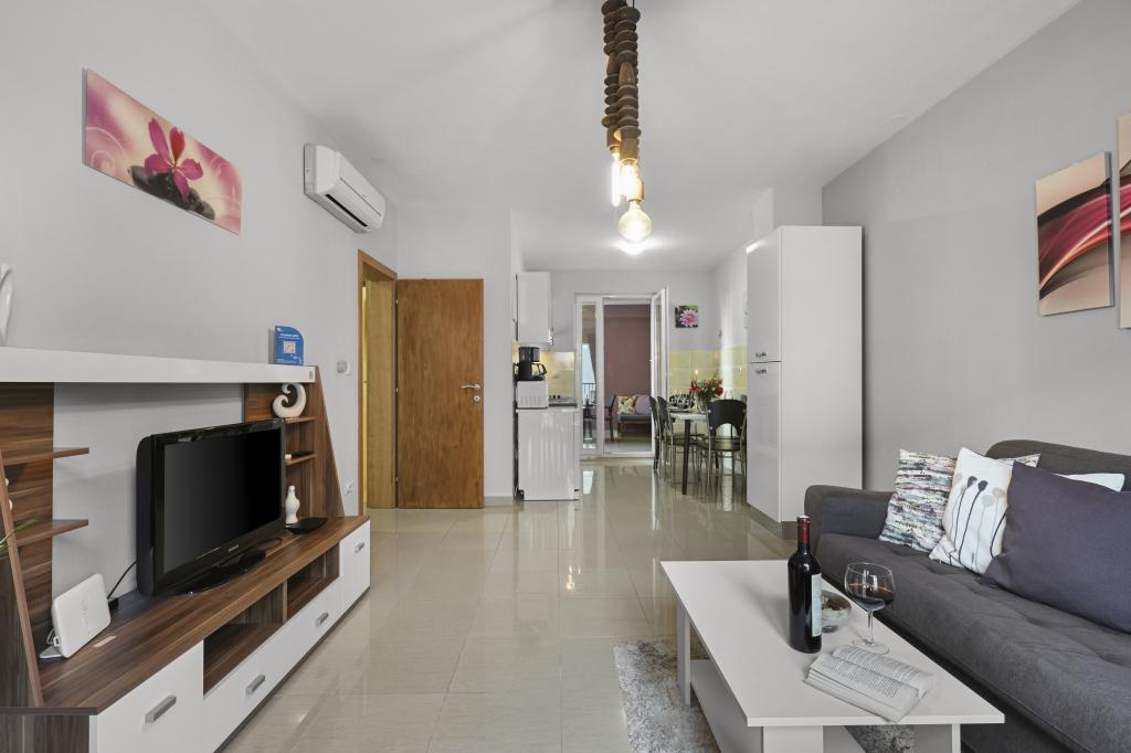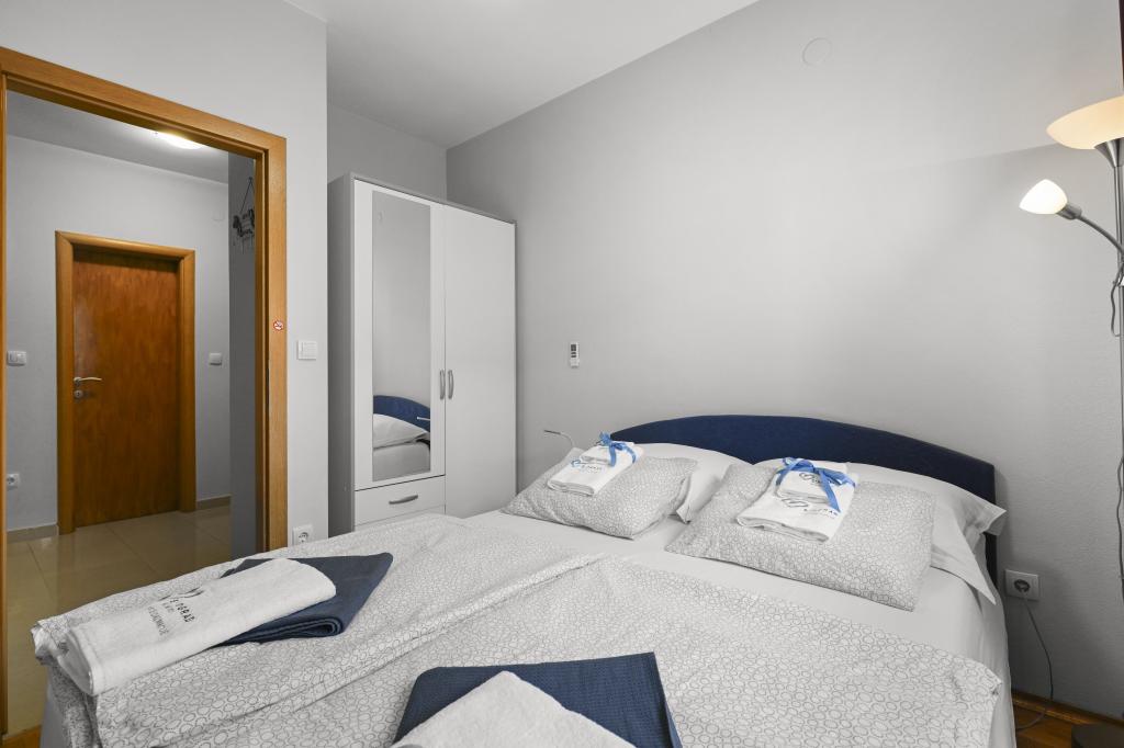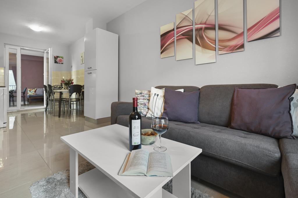 Appartement Majviva is gelegen op een toplocatie in het prachtige, kleine familiestadje Biograd na Moru. Zoals de naam al doet vermoeden, is het aan drie kanten omgeven door de zee en prachtige stranden. Het appartement ligt in het centrum, in een rustige straat op 150 meter van het strand van Dražice, dat bekroond is met de Blauwe Vlag voor de mooiste stranden van de Adriatische Zee. Het appartement is van alle gemakken voorzien en bevindt zich op de eerste verdieping van een klein gebouw met slechts 3 appartementen. Op de binnenplaats van het gebouw is een privéparkeerplaats voor één auto, gemarkeerd met de letter M (de eerste letter van de naam van het appartement). Het appartement beschikt over twee slaapkamers met een tweepersoonsbed, een woonkamer met een grote hoekbank die kan worden omgebouwd tot een echt bed voor twee extra personen, 2 badkamers (één met een bad en de andere met een douche), een volledig uitgeruste keuken (grote koelkast met vriezer, vaatwasser, koffiezetapparaat, waterkoker, oven, enz.) en een groot overdekt terras. De ideale locatie van het appartement zorgt voor volledige ontspanning, omdat u de auto de hele vakantie niet hoeft te gebruiken.