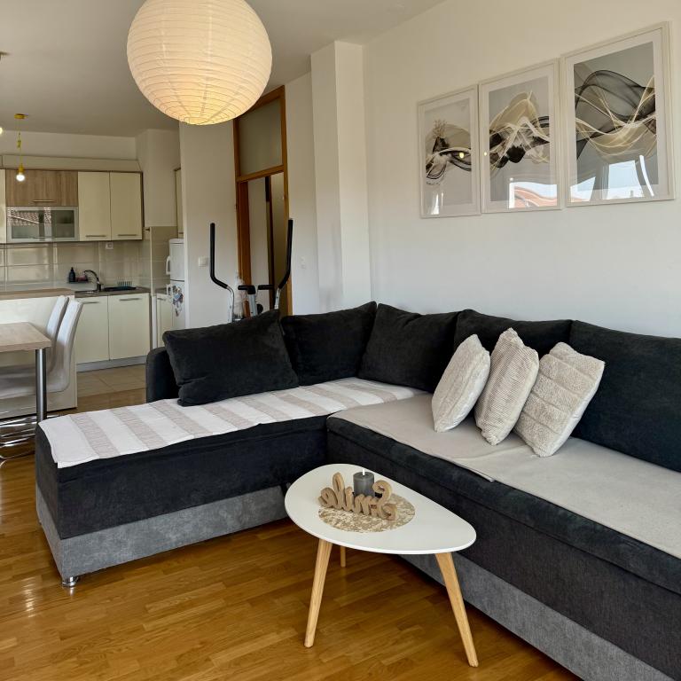 Het prachtige appartement beschikt over 2 ruime kamers, een volledig uitgeruste keuken, een comfortabele woonkamer, een moderne badkamer en een ruim balkon voor 4 personen. Gelegen op de tweede verdieping, op slechts 500 meter van de kust, biedt dit luxe appartement comfort en elegantie. Dit moderne appartement op de tweede verdieping heeft alles wat u nodig heeft voor een comfortabel verblijf: elegant design, kwaliteitsmeubilair en een volledig uitgeruste keuken. Geniet van de nabijheid van de zee en ontspan na het strand op het ruime balkon met een prachtig uitzicht...