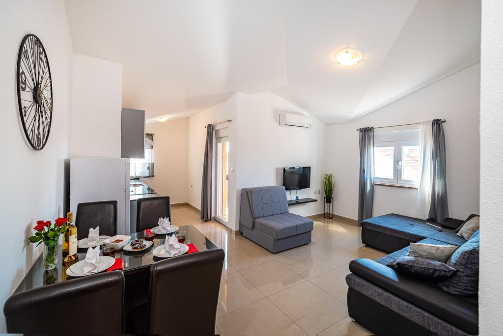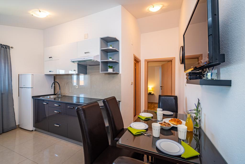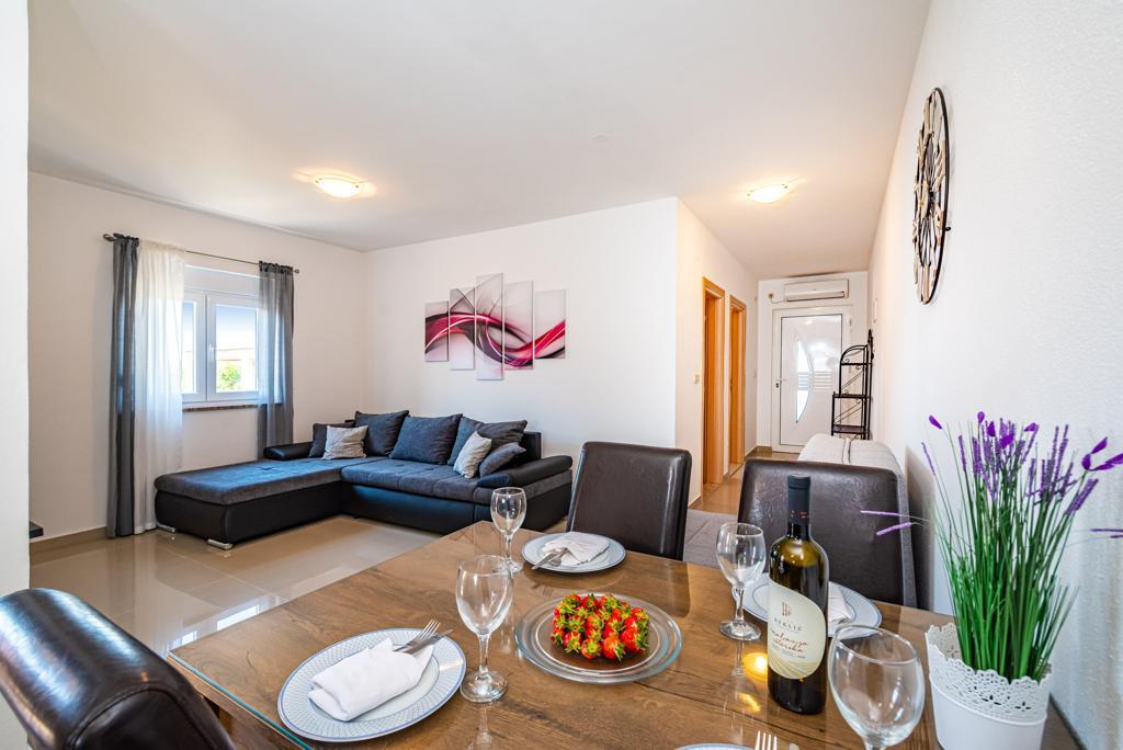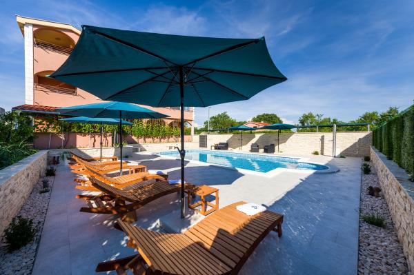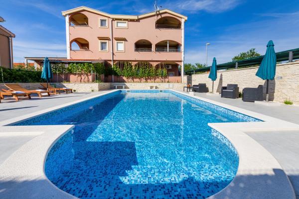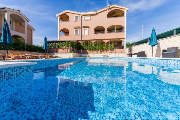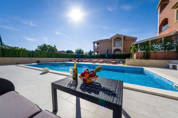 Ik huur 5 appartementen met één slaapkamer en een zwembad, de appartementen zijn gelegen in een rustig deel van Biograd. Elk appartement heeft een volledig uitgeruste keuken (met vaat), een kamer met een tweepersoonsbed (beddengoed), een woonkamer met een grote slaapbank (voor twee personen), een babybedje, een eenpersoonsbed. (TV, satelliet), toilet, balkon, barbecue, parkeerplaats, airconditioning. Het zwembad (10 × 5m) heeft tegenstroomzwemmen, hydromassage en ijsverlichting. De accommodatie staat onder videobewaking De appartementen zijn uitsluitend bedoeld voor vakantie omdat ze zich in een gezinswoning bevinden, dus het is niet voor plezier en feesten. Elk appartement is geschikt voor 4-5 personen. De stad is ideaal voor kinderen, jong en oud gezien het diverse uitgaansaanbod.