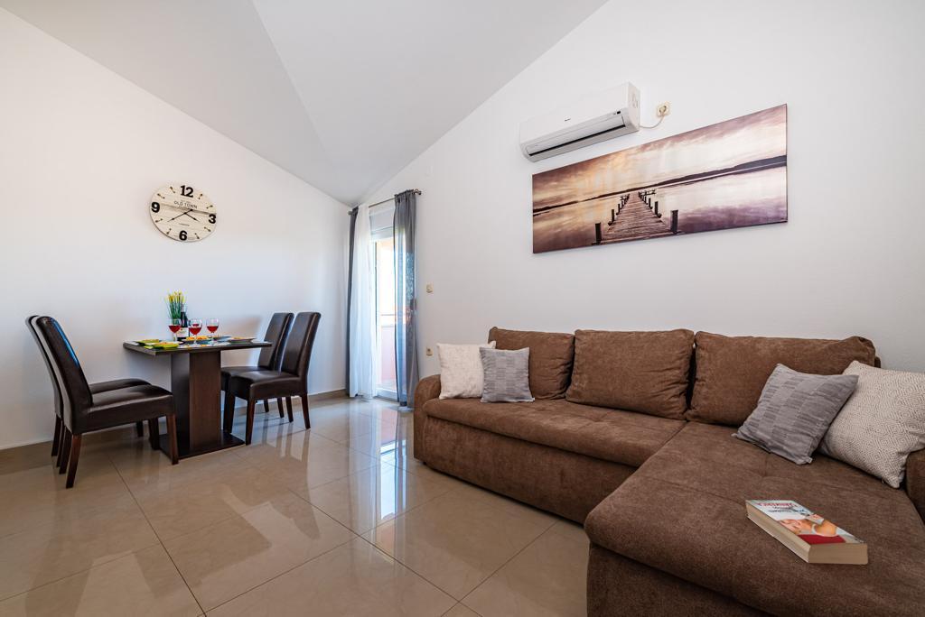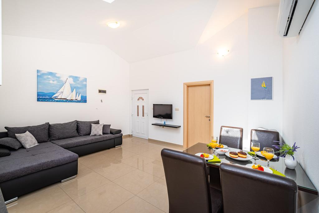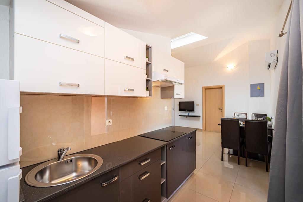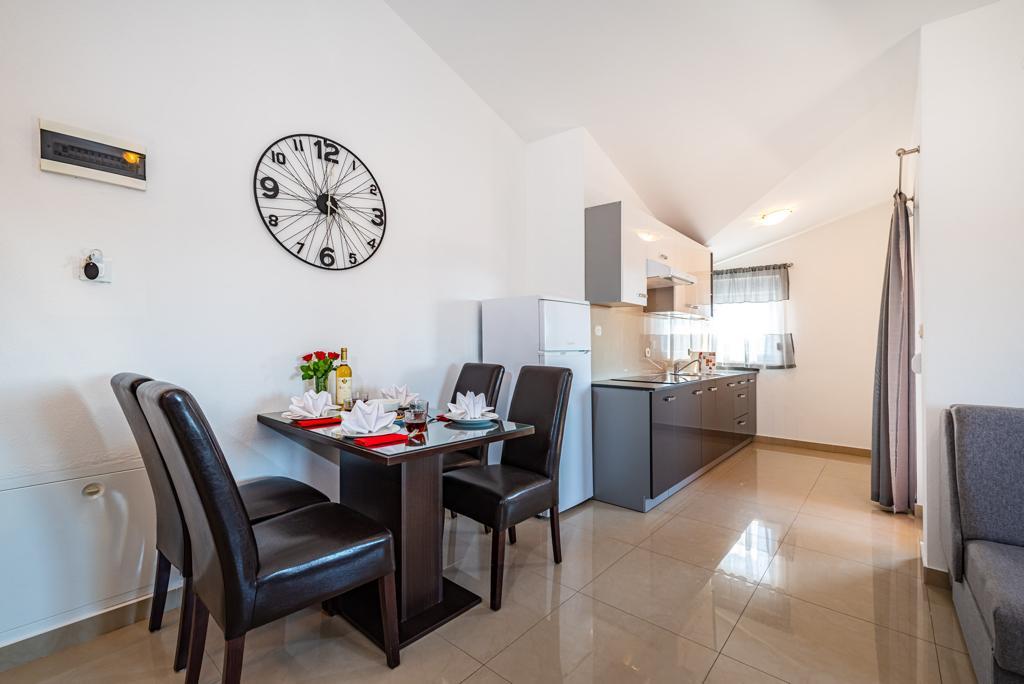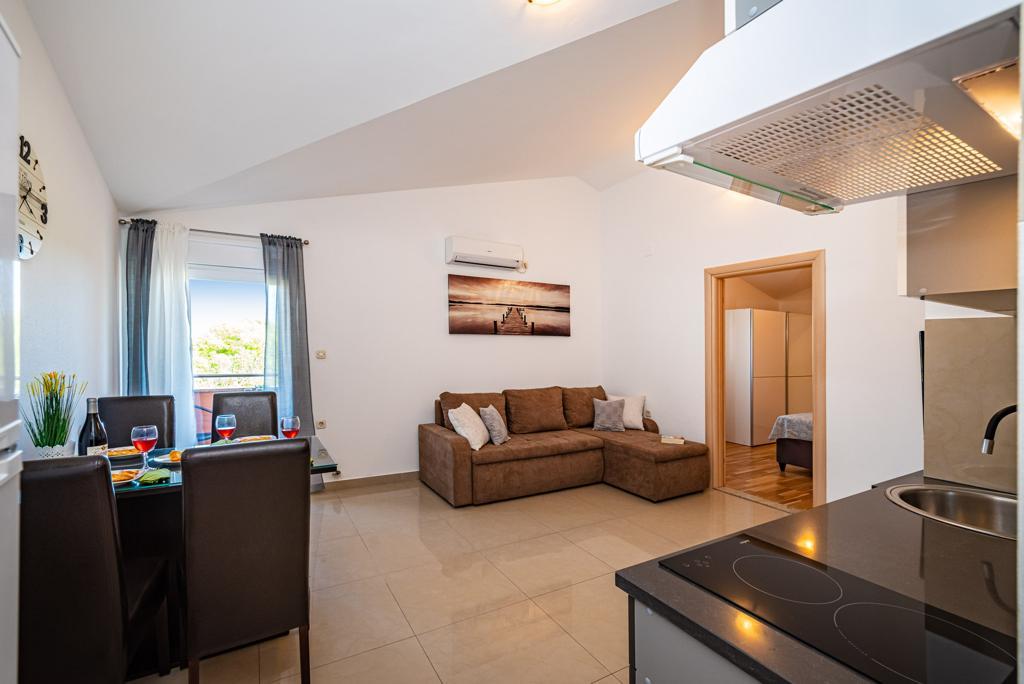 Ik huur 5 appartementen met één slaapkamer en een zwembad, de appartementen zijn gelegen in een rustig deel van Biograd. Elk appartement heeft een volledig uitgeruste keuken (met vaat), een kamer met een tweepersoonsbed (beddengoed), een woonkamer met een grote slaapbank (voor twee personen), een babybedje, een eenpersoonsbed. (TV, satelliet), toilet, balkon, barbecue, parkeerplaats, airconditioning. Het zwembad (10 × 5m) heeft tegenstroomzwemmen, hydromassage en ijsverlichting. De accommodatie staat onder videobewaking De appartementen zijn uitsluitend bedoeld voor vakantie omdat ze zich in een gezinswoning bevinden, dus het is niet voor plezier en feesten. Elk appartement is geschikt voor 4-5 personen. De stad is ideaal voor kinderen, jong en oud gezien het diverse uitgaansaanbod.