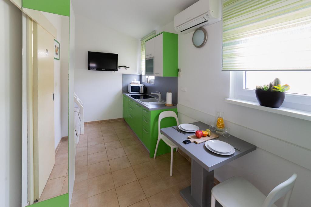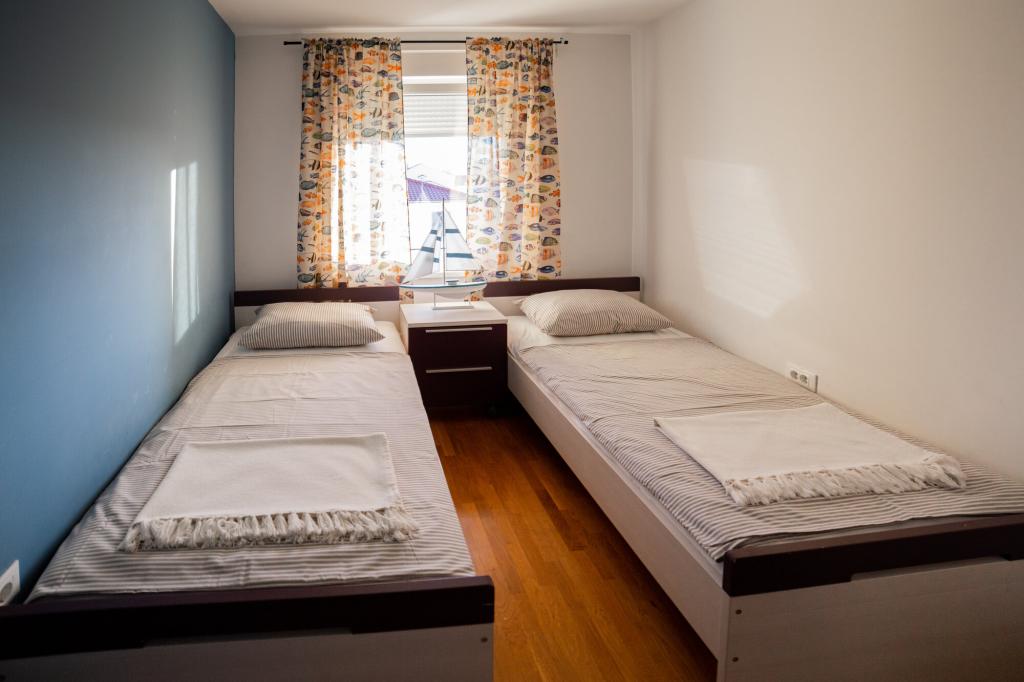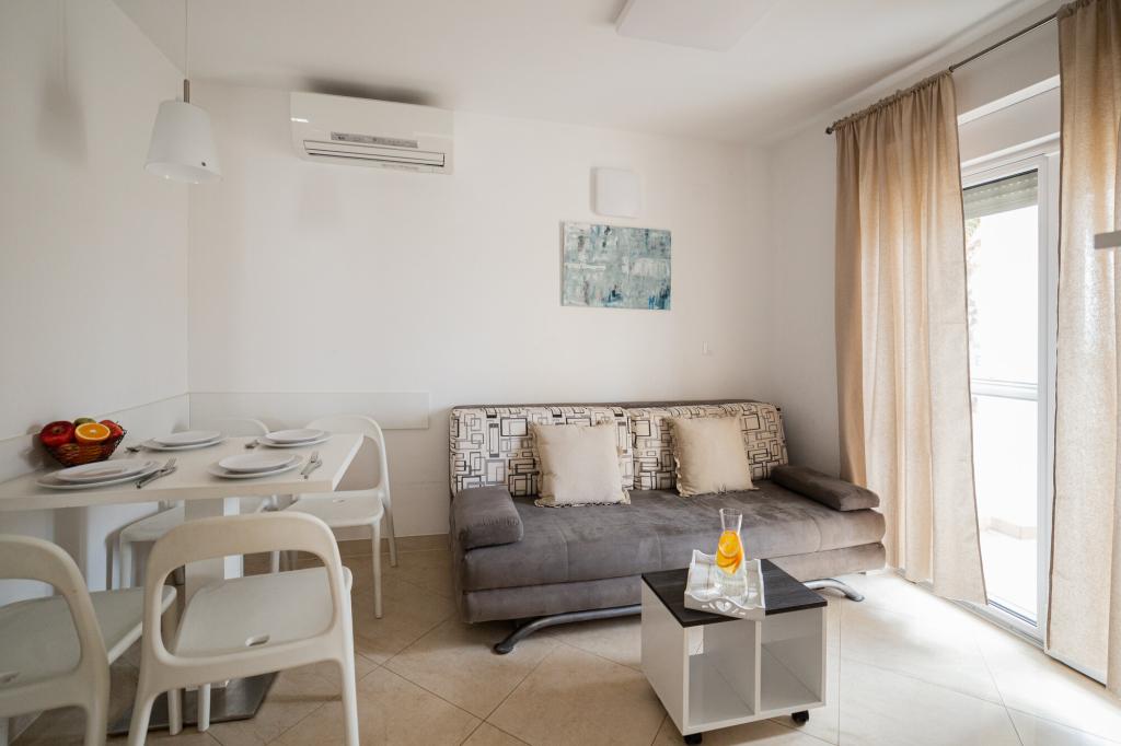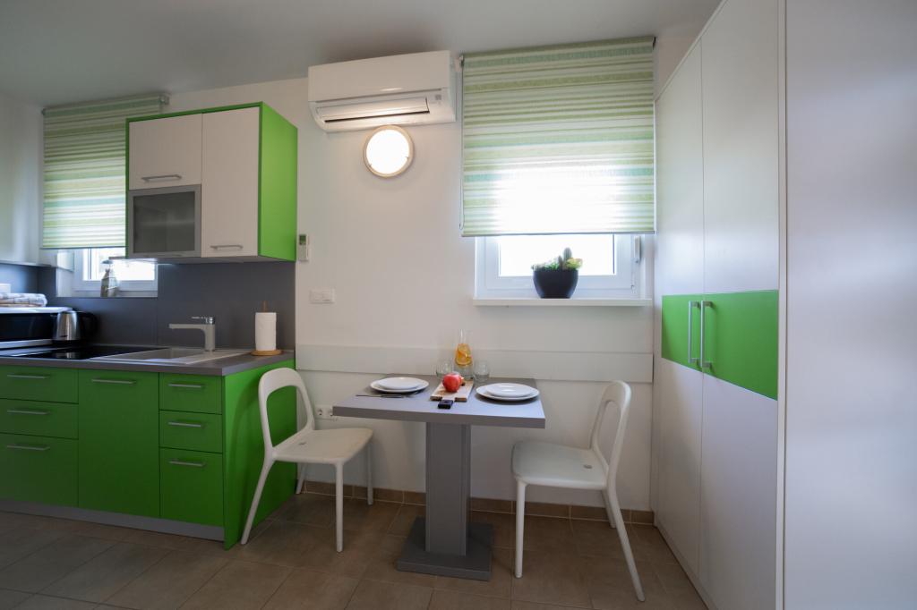 Apartments Jasna bevinden zich in een woonhuis op slechts 280 meter van het strand, omgeven door prachtige natuur. De faciliteit bestaat uit 7 appartementen, waarvan 6 huurprijzen. Drie appartementen zijn 40 m2 voor twee tot vier personen, twee appartementen zijn 77m2 voor 4-6 personen en een studio-appartement voor twee tot drie personen. Alle units zijn voorzien van satelliet-tv en airconditioning, evenals het terras met uitzicht op zee. In de privacy van groen en een groot gemeenschappelijk terras op de begane grond, tot uw beschikking is een barbecue en een parkeerplaats ruimte binnen de werf.