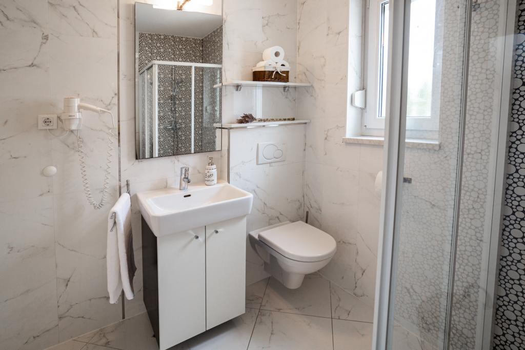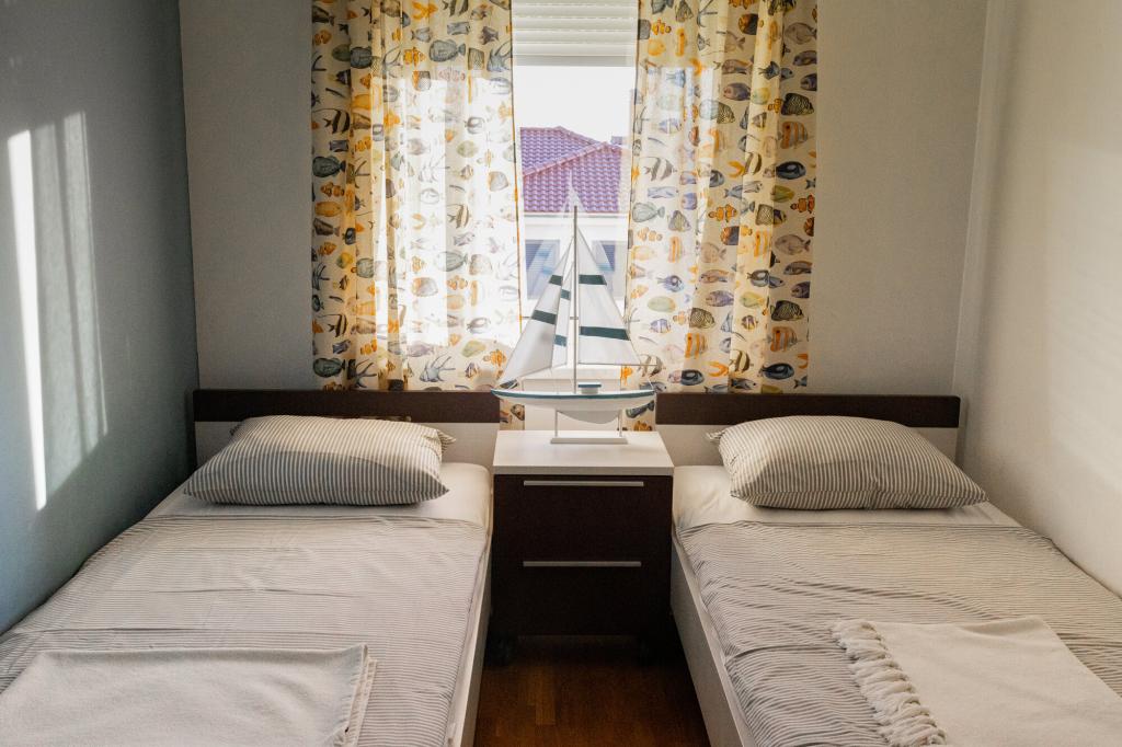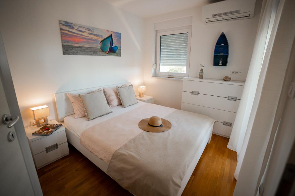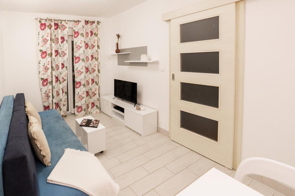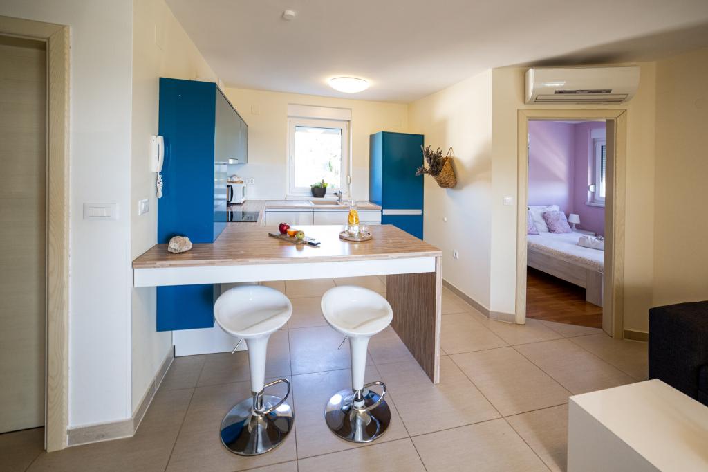 Apartments Jasna bevinden zich in een woonhuis op slechts 280 meter van het strand, omgeven door prachtige natuur. De faciliteit bestaat uit 7 appartementen, waarvan 6 huurprijzen. Drie appartementen zijn 40 m2 voor twee tot vier personen, twee appartementen zijn 77m2 voor 4-6 personen en een studio-appartement voor twee tot drie personen. Alle units zijn voorzien van satelliet-tv en airconditioning, evenals het terras met uitzicht op zee. In de privacy van groen en een groot gemeenschappelijk terras op de begane grond, tot uw beschikking is een barbecue en een parkeerplaats ruimte binnen de werf.