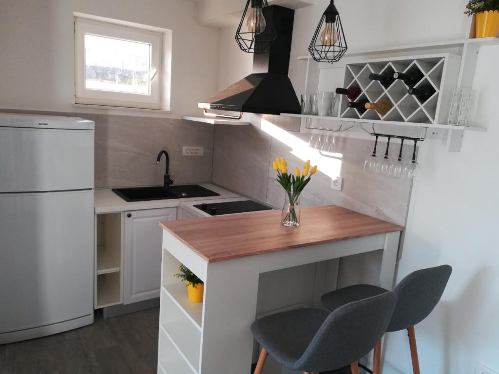 Geweldig appartement, precies zoals beschreven, schoon, goed uitgerust. Vanaf het terras een prachtig uitzicht op zee, 's avonds kunt u genieten van prachtige zonsondergangen. Het strand ligt er direct naast, naar het stadscentrum 10 misschien 15 minuten lopen. Er is een markt in de buurt waar u verse vis, groenten en fruit kunt kopen. De gastvrouw was erg aardig en behulpzaam. Bedankt Sanja, Met vriendelijke groet. Ireneusz en Agnieszka