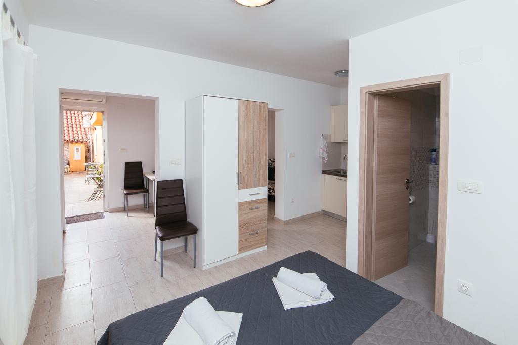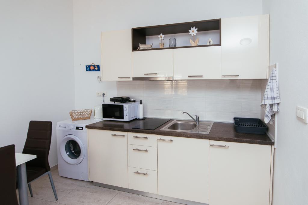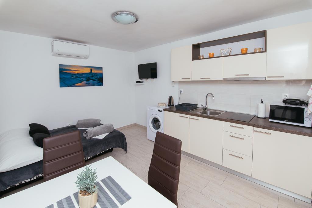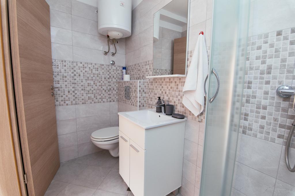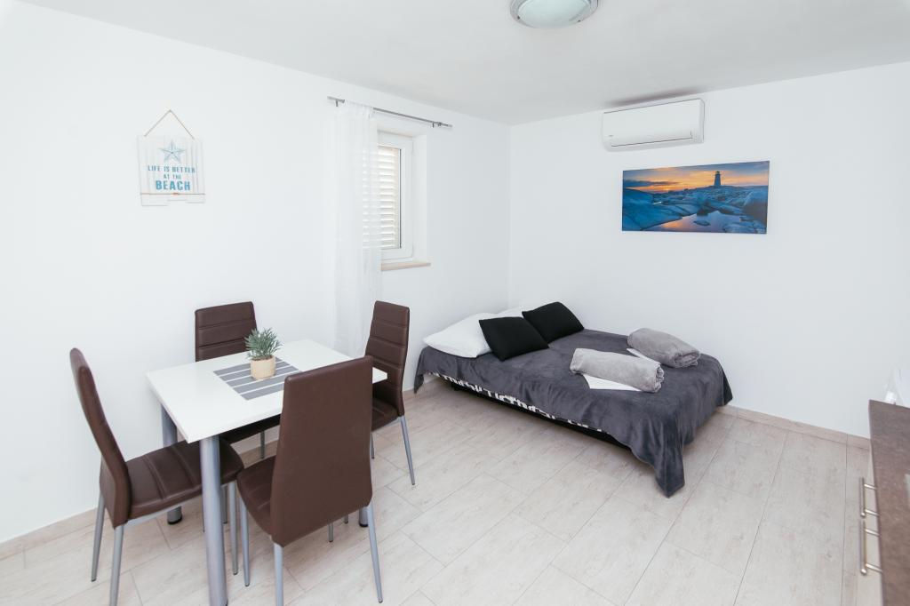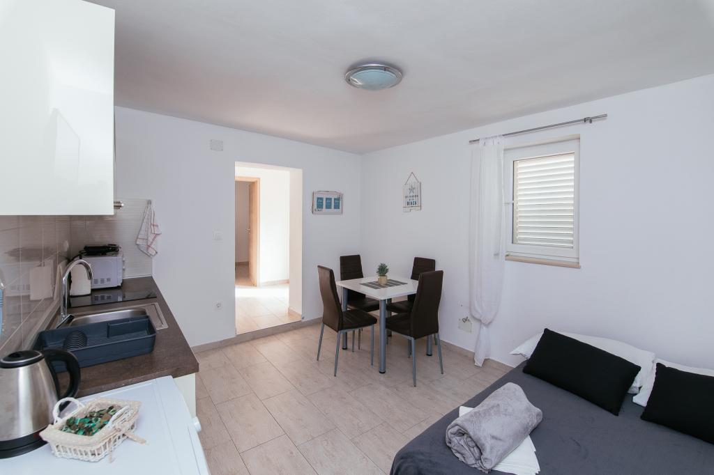 Appartementen AE bevinden zich in Biograd na moru aan Splitska ulica 37a. De appartementen liggen op 700 meter van het strand van Dražice (maximaal 7 minuten lopen) en op 500 meter van het stadscentrum. Een winkel bevindt zich op 20 meter van het appartement. Het appartement beschikt over een slaapkamer, een slaapbank, een keuken, een badkamer, een eetkamer en een groot gemeenschappelijk terras. Gratis parkeergelegenheid, airconditioning, wifi, een wasmachine en een barbecue zijn beschikbaar.