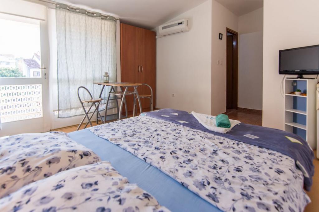 Welkom bij RoLo appartementen en kamers. Het Bošana-strand ligt recht tegenover het huis. Op het strand zelf kunnen onze gasten deelnemen aan sportactiviteiten, en er zijn ook voorzieningen voor kinderen: kinderspeeltuin, waterpark, watersporten. Als u wilt ontspannen, iets wilt drinken of eten, kunt u dit doen in nabijgelegen cafés, restaurants of fastfoodrestaurants. De parkeerplaats ligt direct voor het huis en op het erf van het huis, naast de tuin, staat ook een barbecue, waar onze gasten vrij gebruik van kunnen maken. Wij raden onze appartementen en kamers aan aan gezinnen, koppels en alleenstaanden. De verblijfsprijs is inclusief toeristenbelasting, parkeerplaats, gebruik van airconditioning, gebruik van draadloos internet en beddengoed. Al onze wooneenheden hebben een eigen badkamer met toilet. Omdat we vlakbij het centrum van de stad zijn gevestigd, is alles wat u nodig heeft dichtbij onze accommodatie en loopt u in minder dan 10 minuten naar het centrum.