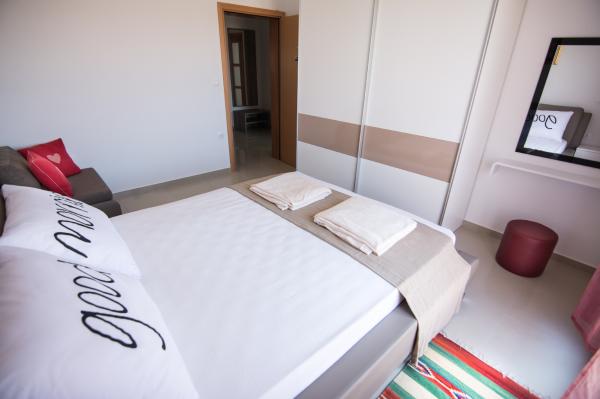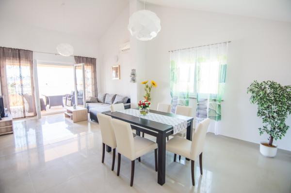 Groot, schoon, modern appartement, mooi uitzicht op zee, 5 minuten lopen naar het strand, bakker naast de deur, rustige straat. Eigenaar erg aardige en behulpzame dame. We waren er twee weken en het was geweldig. Bedankt voor een heerlijke vakantie.