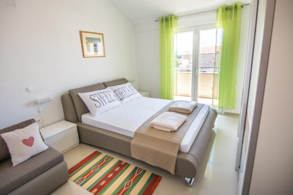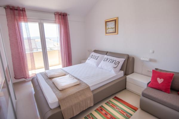 We kwamen aan met 2 volwassenen en 3 kinderen. Parkeren was gratis in de tuin, op een ruime plek. We werden comfortabel ontvangen in de accommodatie, die netjes, schoon en van alle gemakken voorzien was. Het balkon biedt een prachtig uitzicht op de zee en de tegenoverliggende eilanden. Het appartement ligt in een rustige, vredige straat. De nabijheid van Kaufland en Lidl was erg handig voor ons. De eigenaren waren vriendelijk en trakteerden de kinderen op kleine lekkernijen. Het strand en het stadscentrum zijn op loopafstand, zelfs met kleine kinderen. Ik kan de accommodatie van harte aanbevelen!