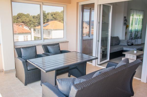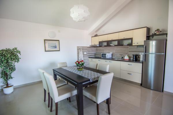 Indrukwekkend, prachtige, ruime woning met een prachtig aangelegde, grote tuin en een parkeerplaats voor gemotoriseerde gasten, zodat er geen probleem is zo ver als voertuigen. Ik heb persoonlijk verbleven in het appartement A2 + 1, gelegen op de eerste verdieping met een aparte ingang en uitzicht op zee. De kamers in het appartement zijn zeer ruim, licht, netjes en schoon. Een ander pluspunt is de comfortabele omgeving van het appartement en een mooi balkon met uitzicht op de zee en natuurlijk Wi-Fi. wijk Sam is erg rustig. Nabij is er een bakkerij. Het strand ligt op een paar minuten lopen. Op het hele appartement is zeer comfortabele en rustige plek om te rusten. Ik zou aanraden aan iedereen. Menu was geweldig.