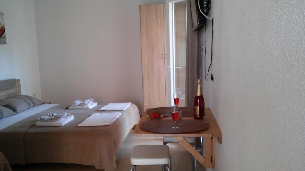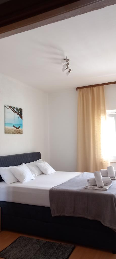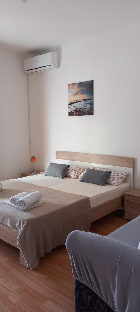 De appartementen bevinden zich op de eerste verdieping van een gezinswoning, in een rustig deel van de stad. 500 m van het strand en 700 m van het stadscentrum, vlakbij een dennenbos en een tenniscentrum. Parkeren kan op het erf van het huis in de schaduw. Het terras met grill is elke dag beschikbaar. In de stad en haar omgeving zijn diverse sportieve, recreatieve en gezinsactiviteiten mogelijk.