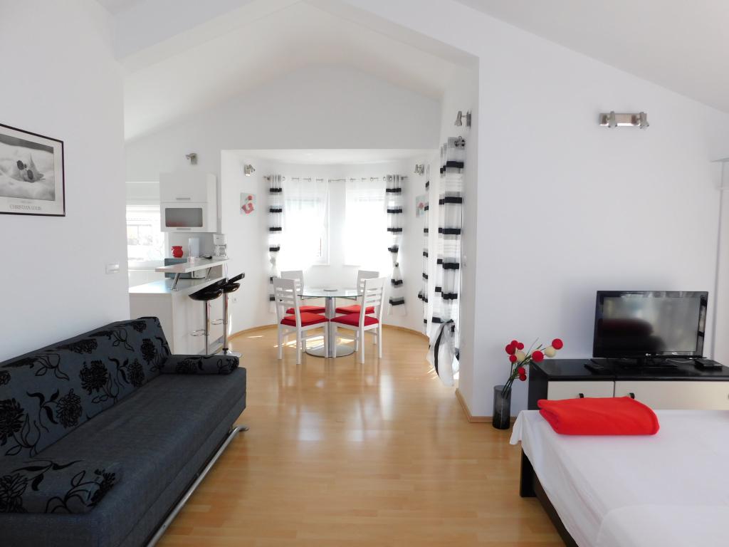 Een pluim voor de familie Jurišić, en vooral voor mevrouw Vanesa, die ons hartelijk verwelkomde en altijd beschikbaar was voor alle vragen. Het appartement waar we in verbleven is zeer modern en comfortabel ingericht. Een groot pluspunt voor het appartement zijn twee badkamers met douches. De keuken is uitgerust met alles wat nodig is voor een gezin van vier personen. De bedden zijn comfortabel en er zijn voldoende kledingkasten om spullen in op te bergen. Dicht bij het strand en het centrum zelf. We hebben de auto vijf dagen niet gebruikt. Onze kinderen van 11 en 7 genoten van alle faciliteiten die de plaats biedt (glijbanen, pretpark voor kinderen). We raden deze stad en het appartement waar we verbleven zeker aan.