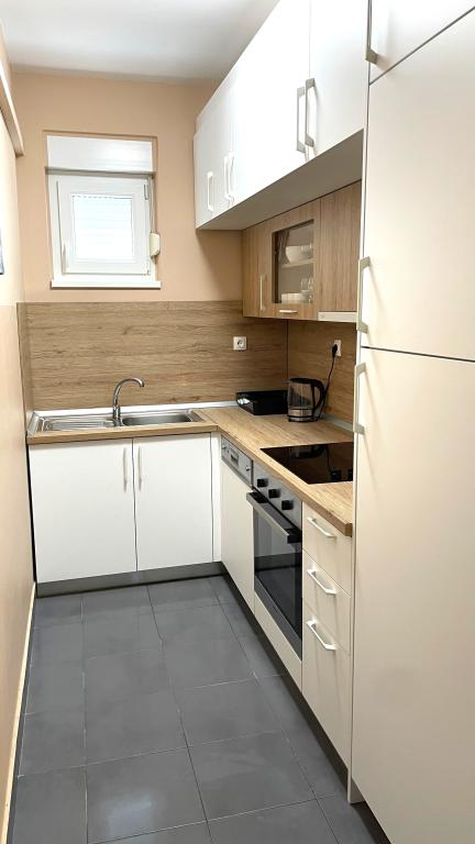 Onze appartementen zijn gelegen in Biograd aan zee, op slechts 7 minuten lopen boven het belangrijkste stadsstrand Dražica. De dichtstbijzijnde winkel ligt aan de overkant van het huis en het stadscentrum ligt op 600 meter afstand. Er zijn ook tal van cafés en restaurants in de buurt, en een zomerbioscoop onder de sterrenhemel ligt op slechts 3 minuten lopen van de accommodatie. Alle appartementen zijn uitgerust met airconditioning, tv, gratis wifi, allemaal zonder extra kosten, en bevatten een volledig uitgeruste keuken met vaatwasser, waterkoker en koffiezetapparaat. In de appartementen vindt u gratis toiletartikelen en keukenbenodigdheden, evenals schone doeken en handdoeken. Op het erf van het huis is een buitenhaard met barbecuebenodigdheden en er is gratis parkeergelegenheid.