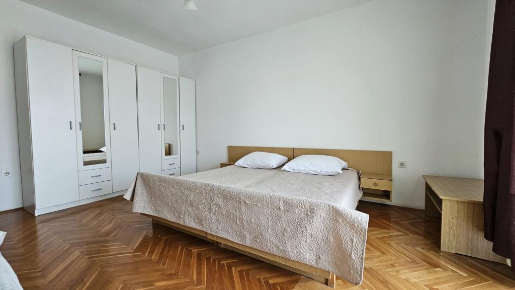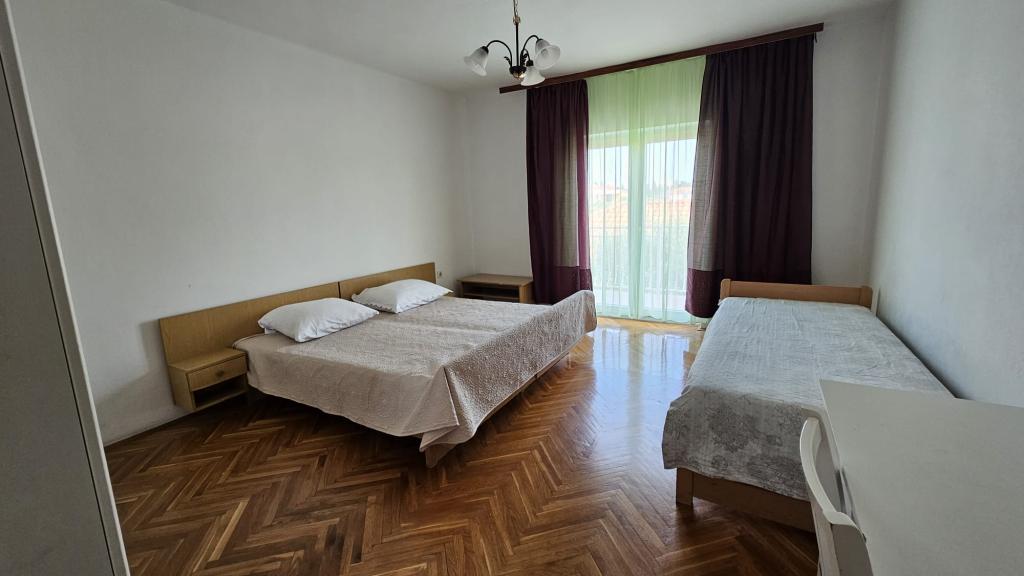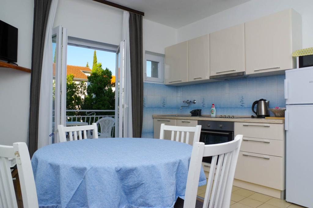 De appartementen bevinden zich op de eerste verdieping van het familiehuis. Parkeren is mogelijk op de binnenplaats en is bij de prijs inbegrepen. Appartement 1 heeft een keuken met een slaapbank die kan worden omgebouwd tot tweepersoonsbed (alleen voor kinderen tot 12 jaar), een badkamer en een slaapkamer voor twee personen. Appartement 2 heeft twee aparte slaapkamers. Eén slaapkamer heeft een extra bed (alleen voor een kind tot 12 jaar), een keuken en een badkamer. Elke kamer heeft een eigen balkon.