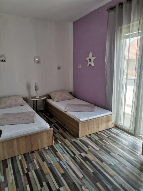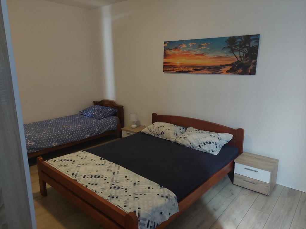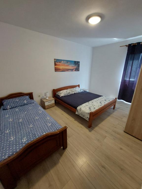 Appartementen bevinden zich op 10 minuten van het centrum naar het strand in slechts 3 minuten. Bure Shopping Centre en Konzum liggen ook in de nabijheid. De appartementen zijn uitgerust met alle noodzakelijke dingen voor een aangenaam verblijf (airconditioning, alle keukenapparatuur). Parkeren is mogelijk aan de voorkant van het appartement en het grote terras biedt uitzicht op de zee. Elk appartement heeft een groot balkon en in elke slaapkamer heeft elke kamer een eigen balkon en uitzicht op zee. De locatie van het appartement ligt in een rustig deel van de stad, ver weg van het lawaai en de luide muziek van de nachtclubs. Het appartement is ruim en biedt alles wat u nodig heeft voor een goede en aangename vakantie in het hart van Dalmatië.