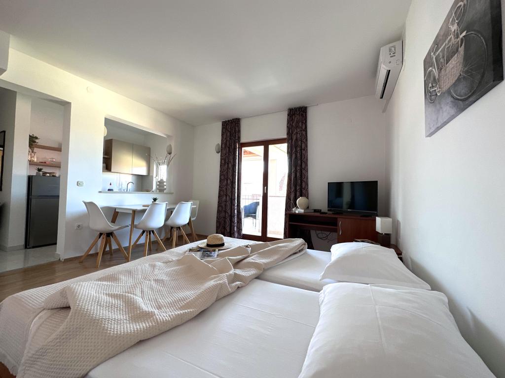 Welkom! 😉 Bedankt dat je hier bent en dat je Appartementen Niko beschouwt als een faciliteit waar je je vakantie wilt doorbrengen. Wilt u dicht bij het centrum en het strand van Dražica zijn, de stad te voet verkennen, de nervositeit van het zoeken naar parkeerplaatsen in de stad vermijden? Als je antwoord JA is, dan zijn Niko-appartementen iets voor jou. De appartementen zijn ideaal voor gezinnen met kinderen en stellen. Stelt u zich eens voor op het terras met koffie in de ochtend, een boek en frisse lucht. Gebruik je jaar om te ontspannen en tot rust te komen, focus op het genieten van de mooie momenten met familie en creëer herinneringen. Appartementen Niko zijn hier om u comfortabele accommodatie in de stad te bieden, en de gastheren zijn hier om u alle nodige informatie te verstrekken. Als u op vakantie online wilt zijn, is er gratis wifi, is er een parkeerplaats voor uw auto en om de hitte te verminderen, zijn alle appartementen uitgerust met airconditioning. Als je vragen hebt, schrijf me dan gerust, ik ben er voor je! Ivana