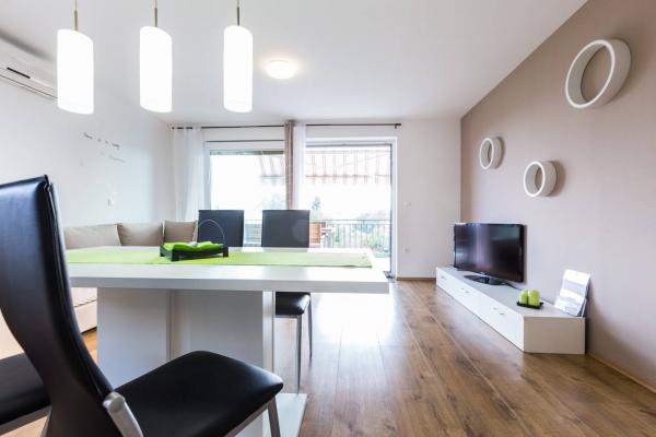 Het appartement is ongelooflijk mooi en comfortabel, met zo veel nieuwe en nuttige apparatuur (vaatwasser, koffiezetapparaat, oven, grote koelkast met vriezer, airconditioning, tv, wi-fi ...). Alles is schoon en mooi ingericht. Er zijn ook twee ruime balkons. De locatie van het appartement is geweldig - u kunt het centrum bereiken in 5 minuten te voet, de jachthaven en het strand Bošana zijn ook zeer dicht, maar er is geen geluid, zodat u kunt genieten van uw vakantie in alle rust door middel van dag en nacht. Supermarkt is net om de hoek. De eigenaren zijn erg aardig, ze bieden schone handdoeken om de twee of drie dagen. Ik beveel verblijf hier!