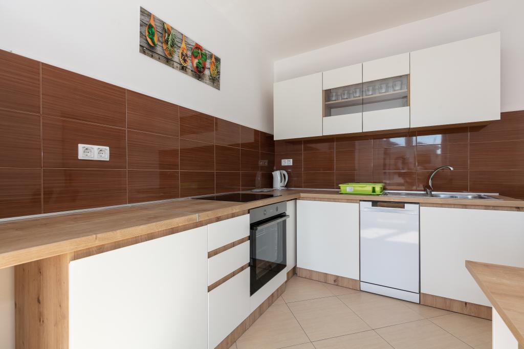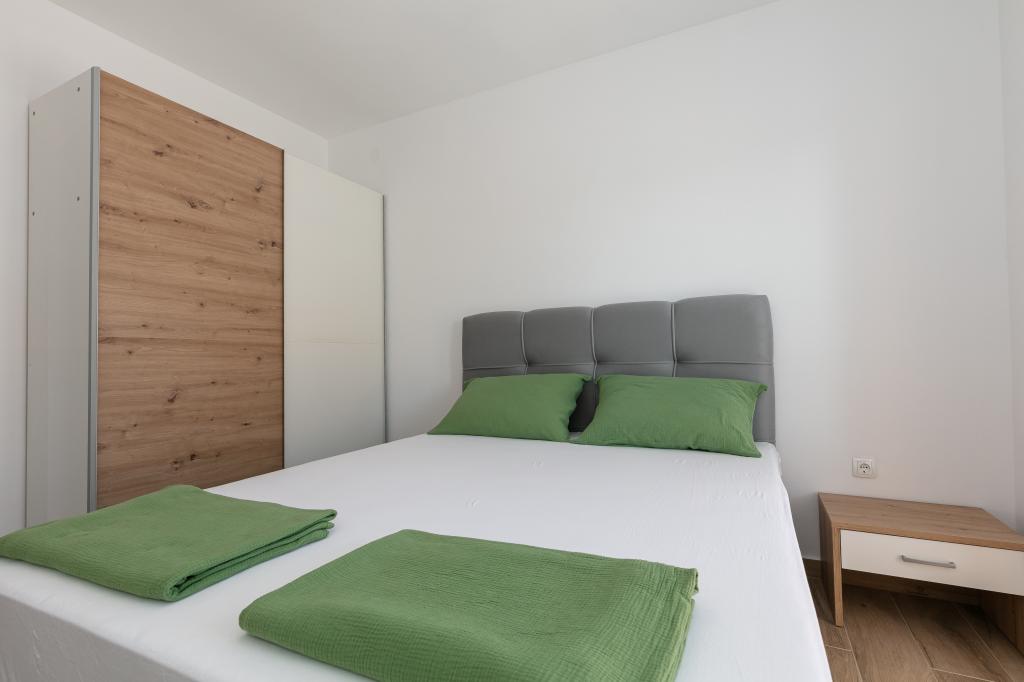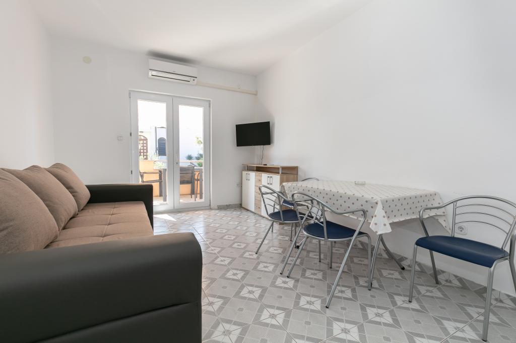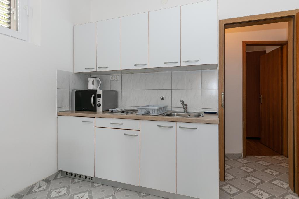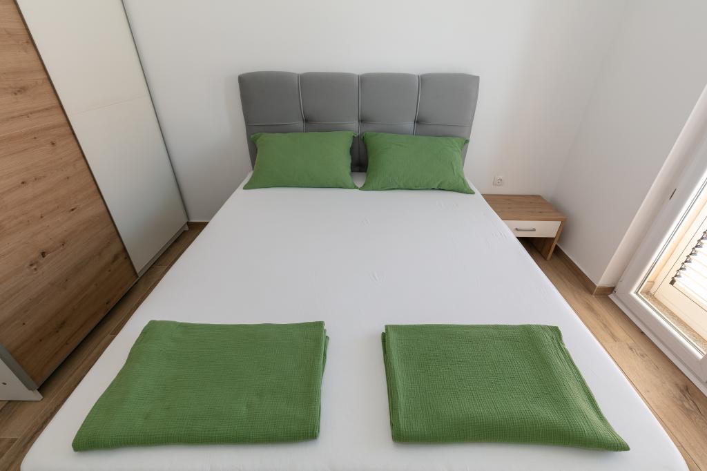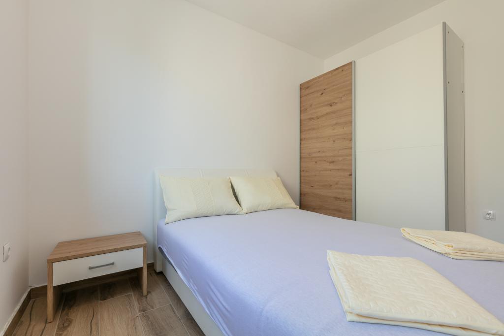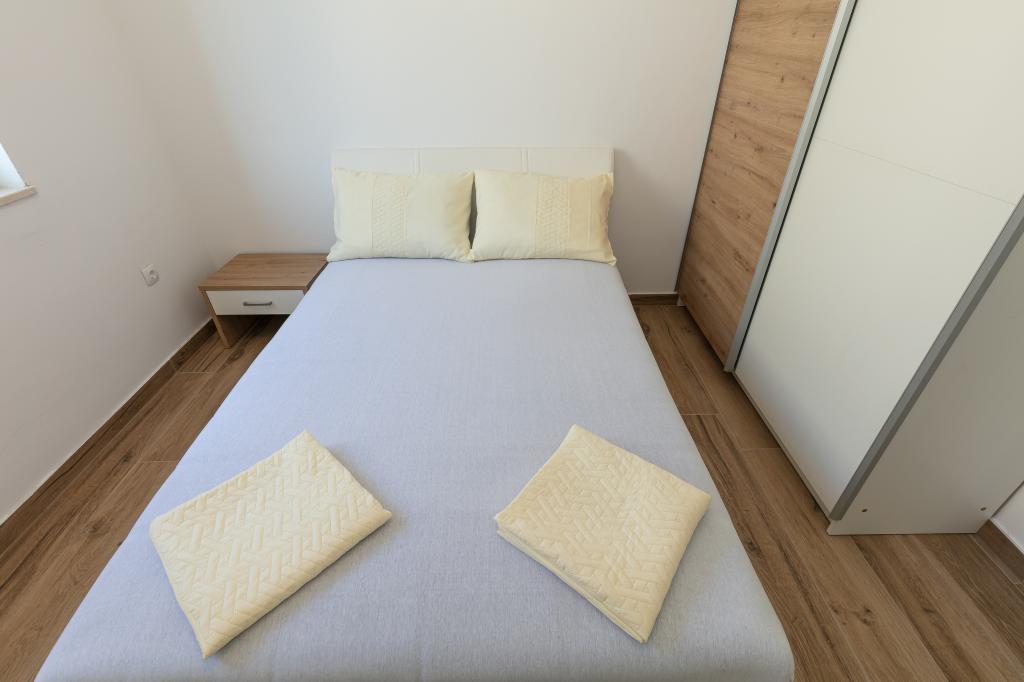 Mijn beoordeling is 8/10. De nederzetting is rustig en het strand is relatief dichtbij. Het appartement is netjes, schoon en vrij ruim. De keuken is te klein en het elektrisch fornuis is erg slecht, waardoor we twee keer zo lang bezig waren met het koken van de lunch dan wanneer we gas hadden. Het terras van het appartement is geweldig, vrij groot en 's middags altijd in de schaduw. Het appartement had geen rek voor het drogen van wasgoed en handdoeken, maar slechts een kleine uitbreiding aan de muur van het terras, wat onvoldoende is. We kregen 4 kleinere handdoeken.