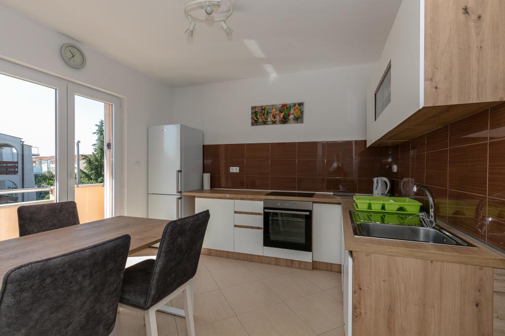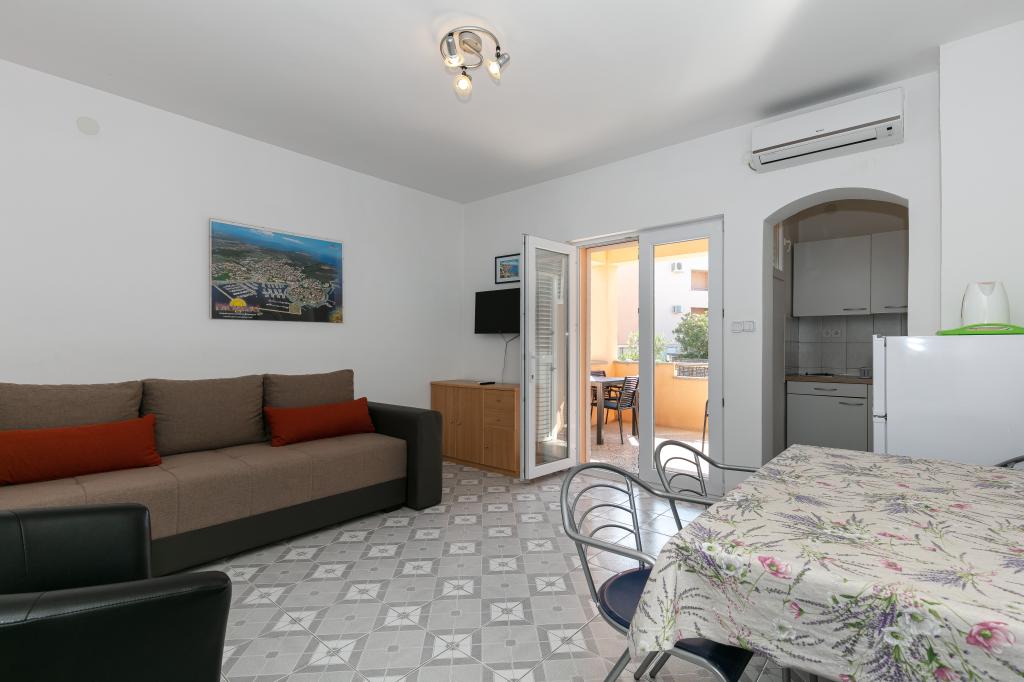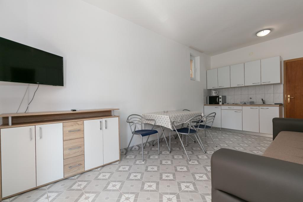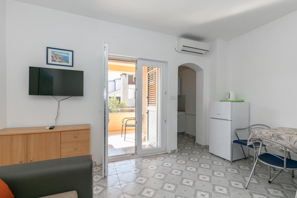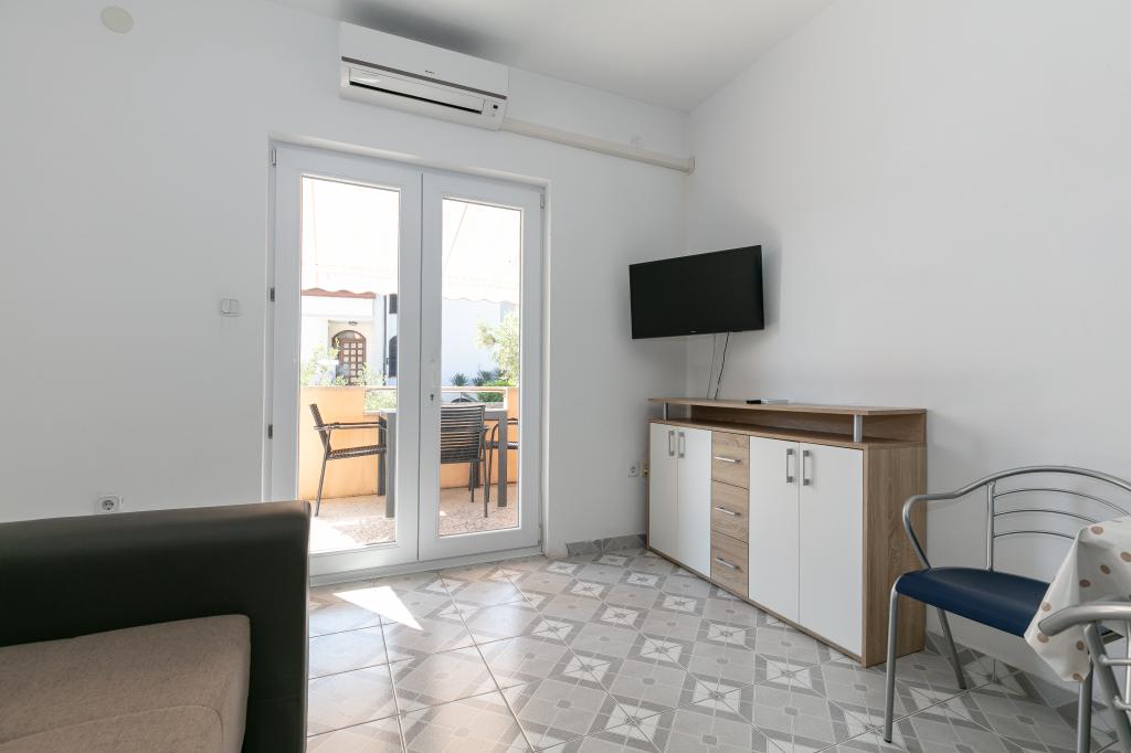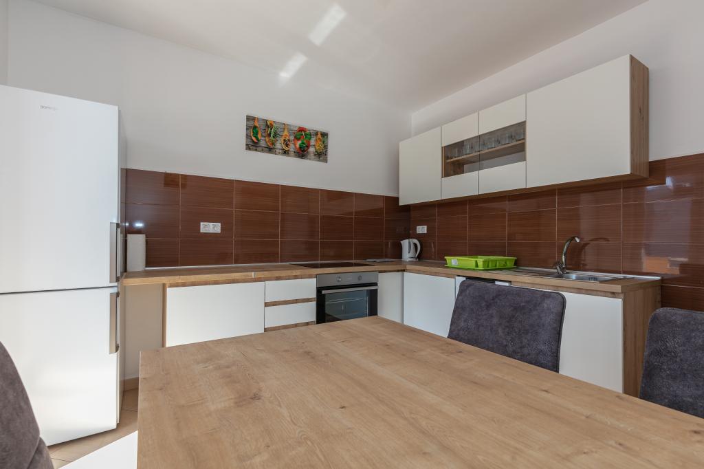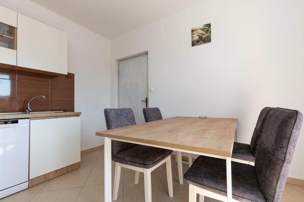 Mijn beoordeling is 8/10. De nederzetting is rustig en het strand is relatief dichtbij. Het appartement is netjes, schoon en vrij ruim. De keuken is te klein en het elektrisch fornuis is erg slecht, waardoor we twee keer zo lang bezig waren met het koken van de lunch dan wanneer we gas hadden. Het terras van het appartement is geweldig, vrij groot en 's middags altijd in de schaduw. Het appartement had geen rek voor het drogen van wasgoed en handdoeken, maar slechts een kleine uitbreiding aan de muur van het terras, wat onvoldoende is. We kregen 4 kleinere handdoeken.