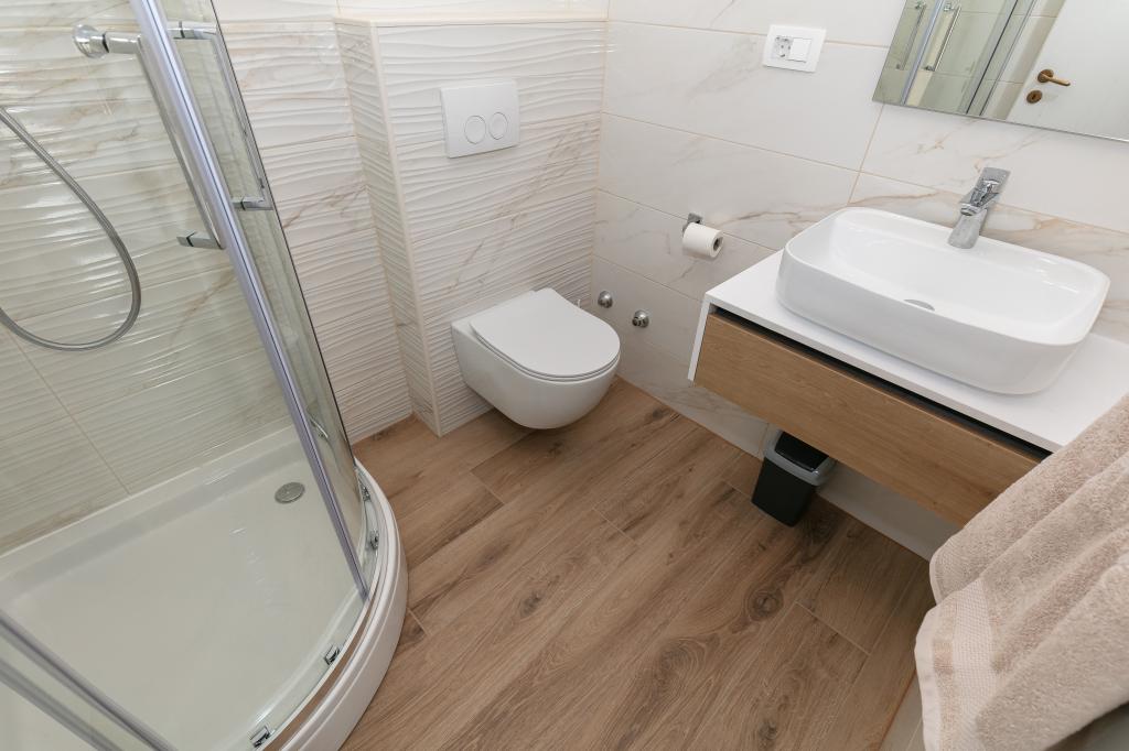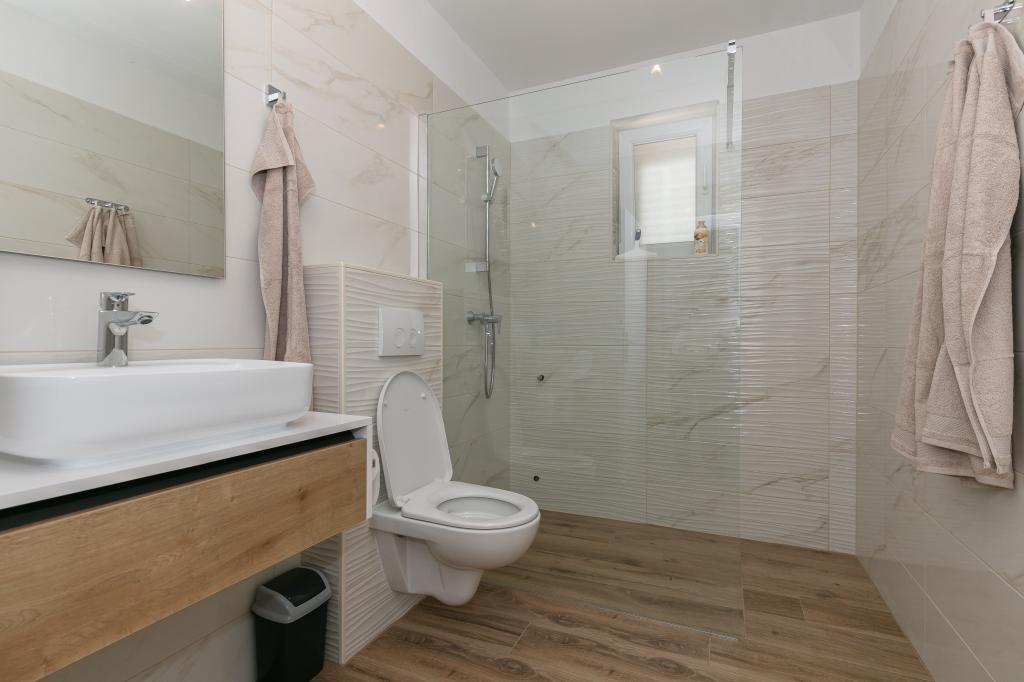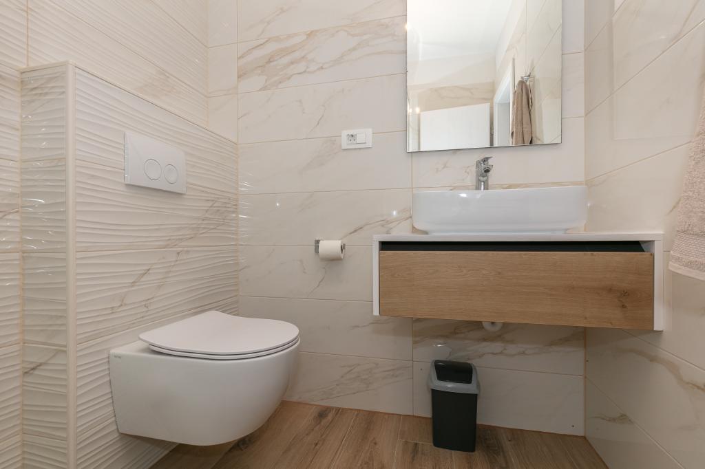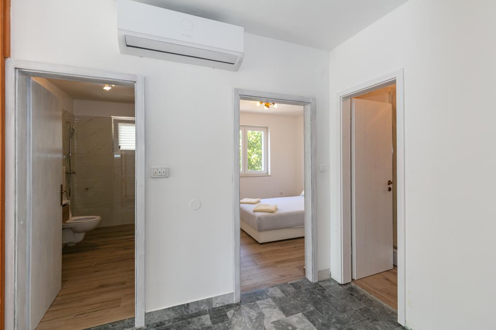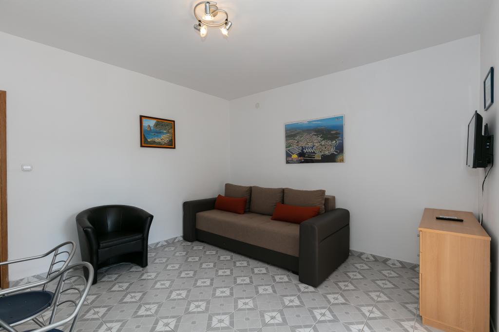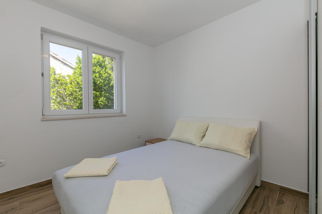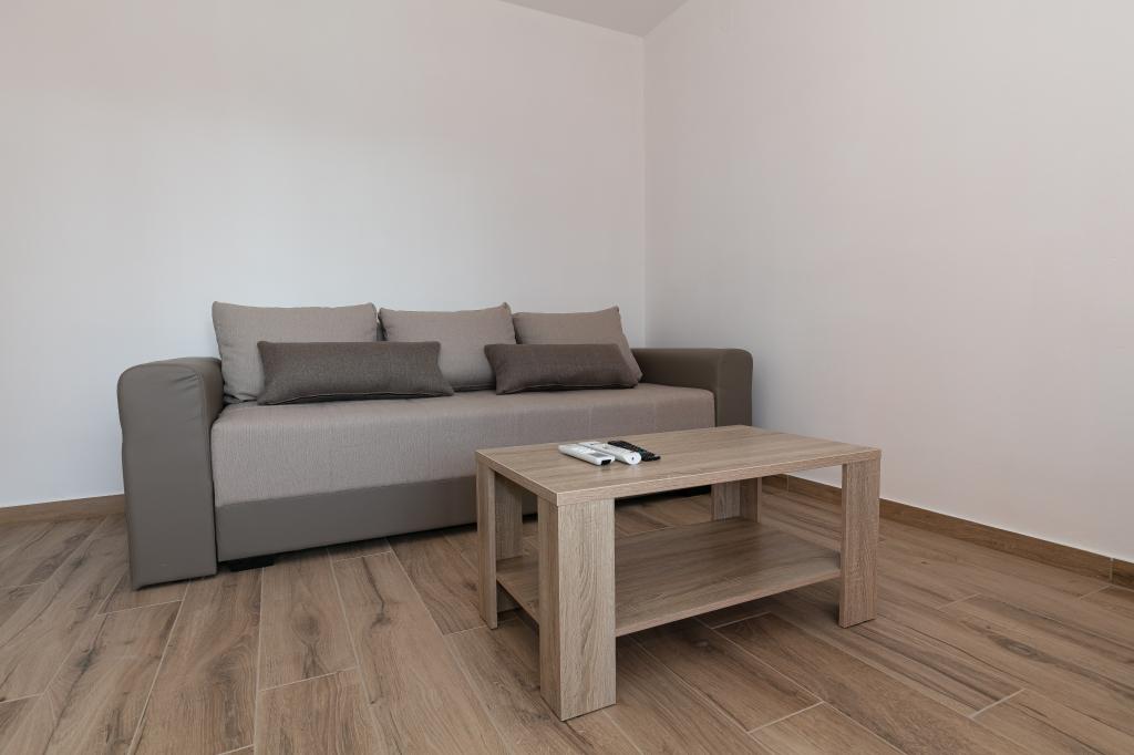 Mijn beoordeling is 8/10. De nederzetting is rustig en het strand is relatief dichtbij. Het appartement is netjes, schoon en vrij ruim. De keuken is te klein en het elektrisch fornuis is erg slecht, waardoor we twee keer zo lang bezig waren met het koken van de lunch dan wanneer we gas hadden. Het terras van het appartement is geweldig, vrij groot en 's middags altijd in de schaduw. Het appartement had geen rek voor het drogen van wasgoed en handdoeken, maar slechts een kleine uitbreiding aan de muur van het terras, wat onvoldoende is. We kregen 4 kleinere handdoeken.