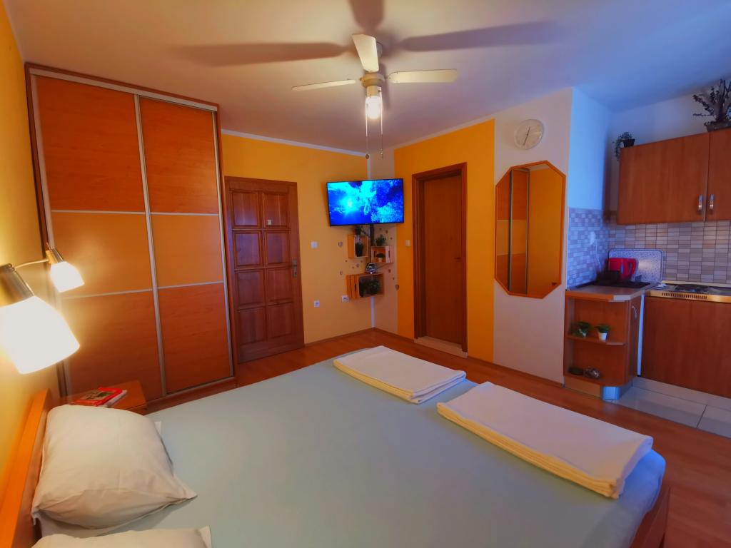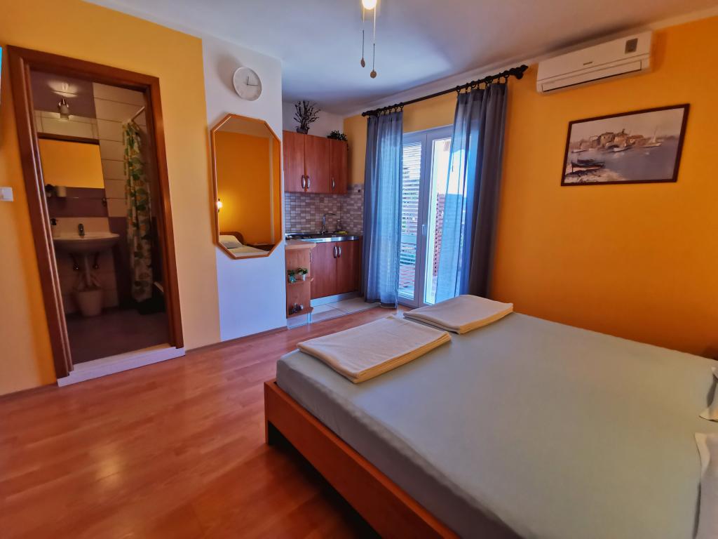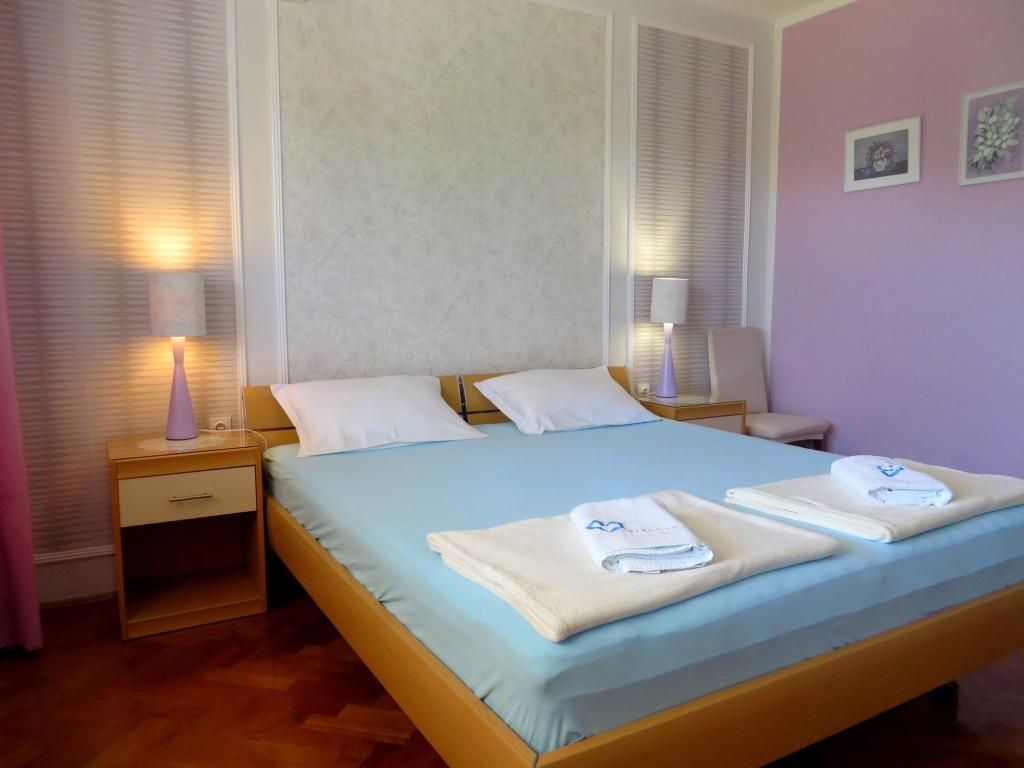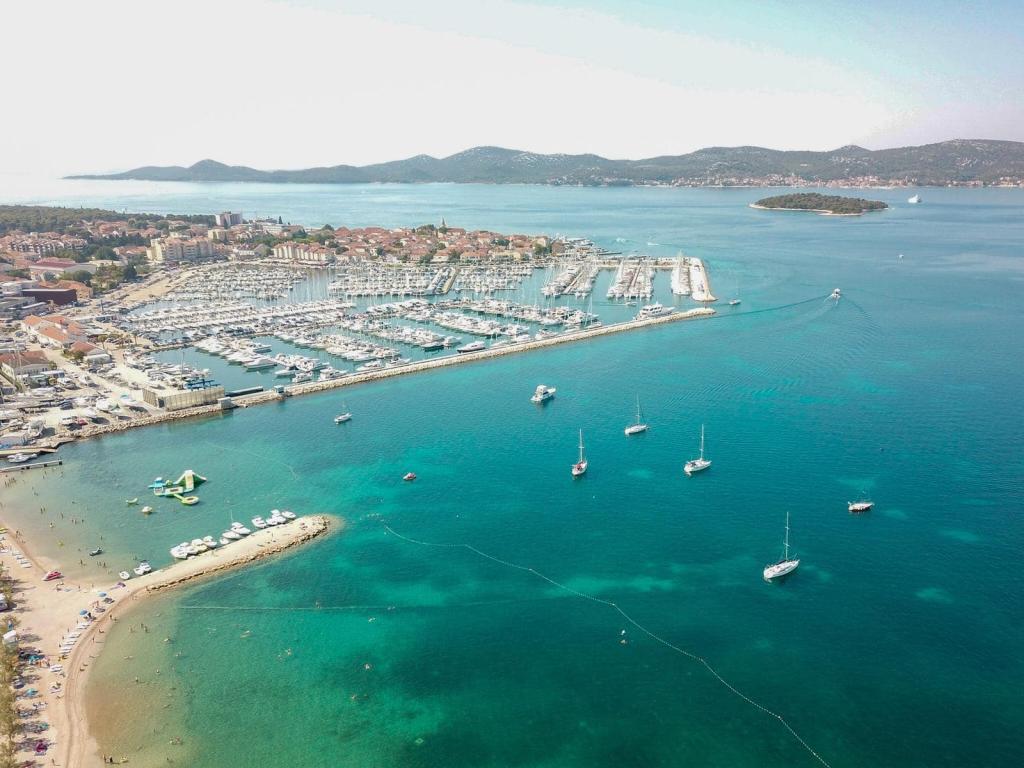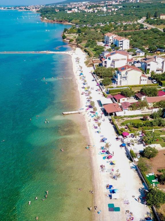Strandappartementen Roza gelegen op de eerste rij van het Bošana-strand in een tuin vol groen, dichtbij alle voorzieningen. Winkels, restaurants en bars bevinden zich in de directe omgeving, het stadscentrum ligt op minder dan 10 minuten lopen. Beveiligd parkeren op het erf voor voertuigen van standaardformaat.