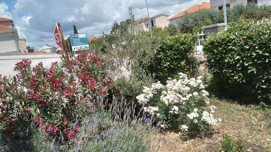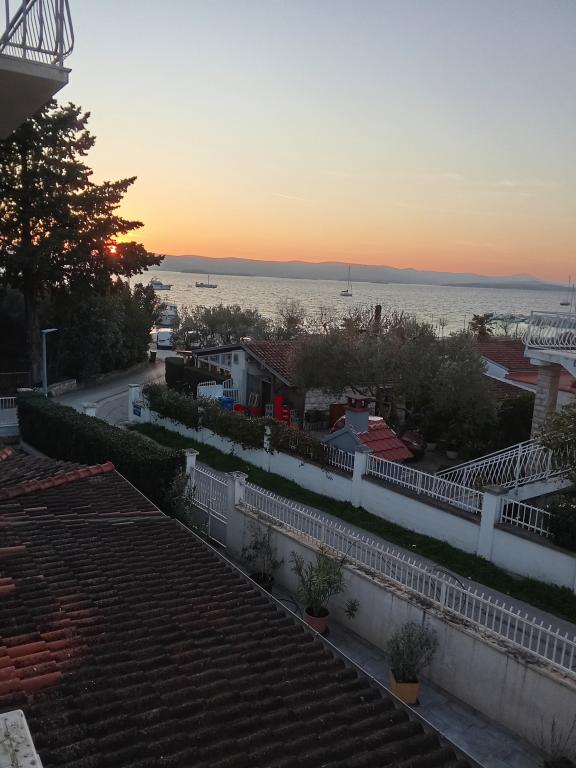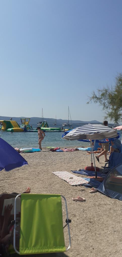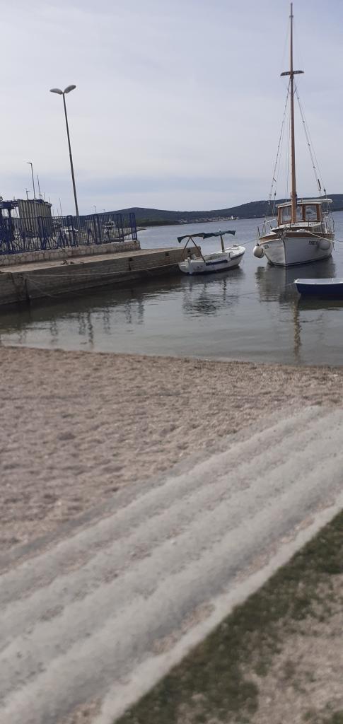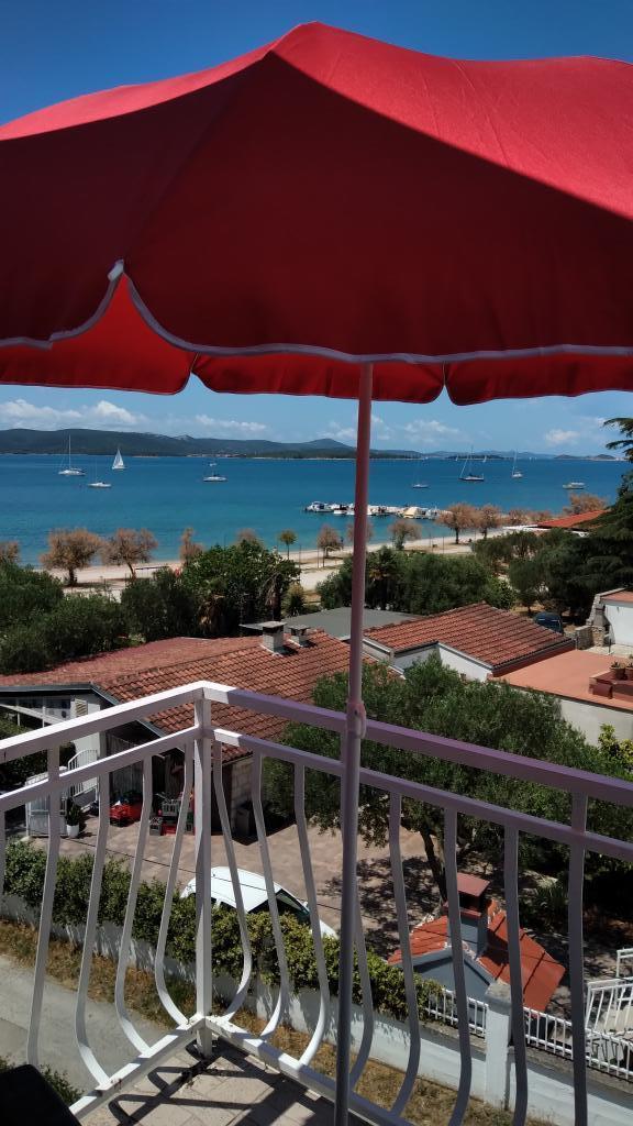 Het huis ligt naast het strand, op 10 meter afstand, met een balkon en terras met uitzicht op de zee. Alle 3 de appartementen zijn voorzien van airconditioning en WiFi. privéparkeerplaats onder het dak voor 4 auto's. Er zijn cafés en restaurants op het strand. Winkel 50 m Lidl en Kaufland 200 m naar het huis. Wij verhuren een parkeerplaats als u een boot wilt huren in de jachthaven van Kornati. Wij heten u welkom in de Stefani-appartementen.