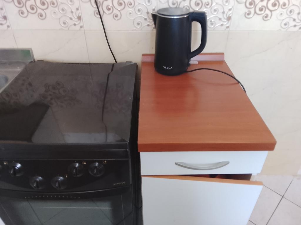 Het appartement is oké. Het moet echt worden gewit en er zou een pan moeten worden toegevoegd (er zijn twee pannen en drie kleinere potten), maar verder is het voor deze prijs te doen als je niet veeleisend bent.