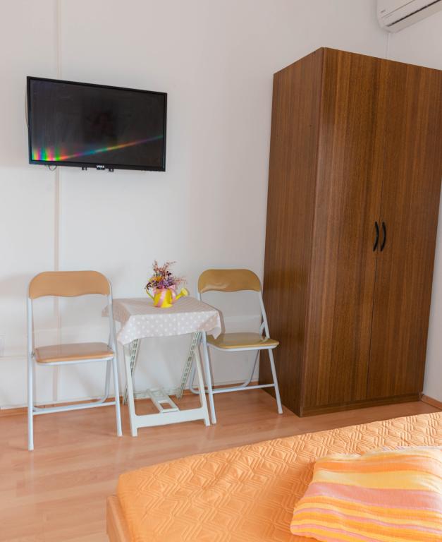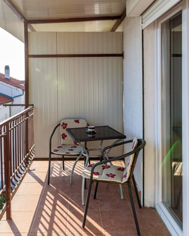 Uiterst vriendelijke en gedienstige eigenaar van de accommodatie. Nette kamer, airco en tv, balkon met mooi uitzicht. Keuken aanwezig. De locatie van de accommodatie ligt op ongeveer 10 minuten lopen van prachtige stranden, het centrum zelf, winkels ook op 5 minuten lopen. Het is niet nodig om een auto te gebruiken vanwege de nabijheid van al het bovenstaande. Jelice, nogmaals bedankt voor alles! Sanda en Anamaria