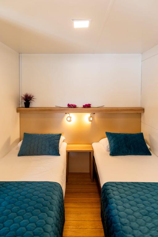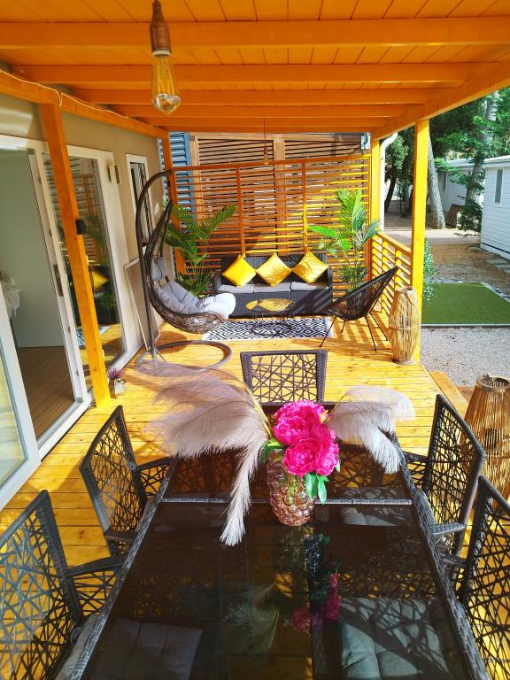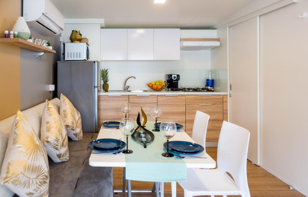 Stacaravan Nancy ligt op Camp Soline in Biograd na Moru, op slechts twee minuten van het prachtige kiezelstrand. Het beschikt over twee kamers, waarvan één met een bed (160 x 200 cm) en een eigen toilet/badkamer. De tweede kamer heeft twee bedden (80 x 200 cm), die eenvoudig kunnen worden samengevoegd tot een groter bed. Het beschikt over een woonkamer, een volledig uitgeruste keuken, een extra toilet/badkamer, een vaatwasser, een magnetron, een vriezer, een koffiezetapparaat en een slaapbank voor twee personen. Het huis is geschikt voor zes personen (4 x 2). Op het prachtige en ruime terras kunt u heerlijk ontspannen en genieten van de zonsondergang en een goed glas wijn. In Kampo is er een restaurant op slechts 200 m van het huis, daarnaast zijn er verschillende cafés en restaurants en speeltuinen voor kinderen. Voor onze jongste gasten wordt er dagelijks animatie georganiseerd. Het centrum van Biograd is te bereiken via een pad door een dichtbegroeid, schaduwrijk pijnbomenbos. Hier vindt u allerlei attracties voor zowel de allerkleinsten als de volwassenen.