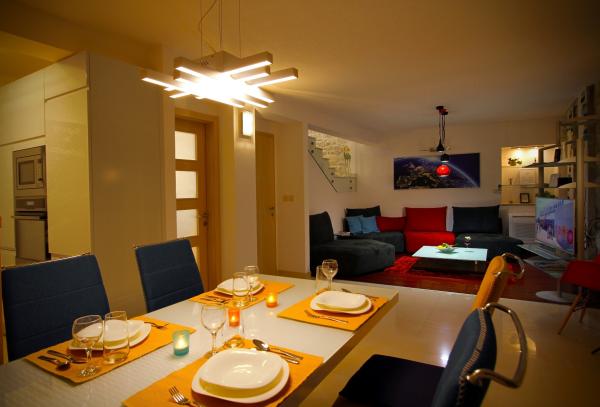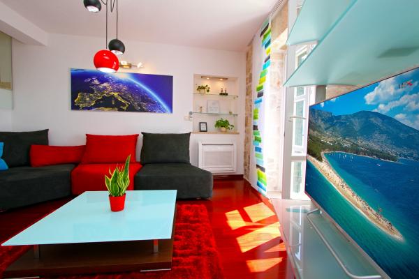 Voor uw onvergetelijke vakantie hebben we het luxe duplex appartement "ALLURE" voorbereid - een volledig nieuw en modern appartement in een aantrekkelijk Dalmatisch huis. Het is gelegen op een uitzonderlijke locatie in de onmiddellijke nabijheid van de zee en het stadscentrum. Geniet van een uitstekend uitgerust appartement met twee balkons en een prachtig uitzicht op de zee. Luxe duplex appartement, 100 m2, biedt accommodatie voor 4-5 personen. Op de eerste verdieping bevindt zich een ruime woonkamer, keuken en eetkamer, twee balkons met uitzicht op zee en een grote badkamer. Op de tweede verdieping zijn er twee slaapkamers met eigen badkamer en ook een prachtig uitzicht op de zee. Wij verheugen ons op uw komst!