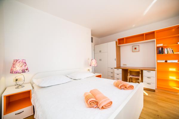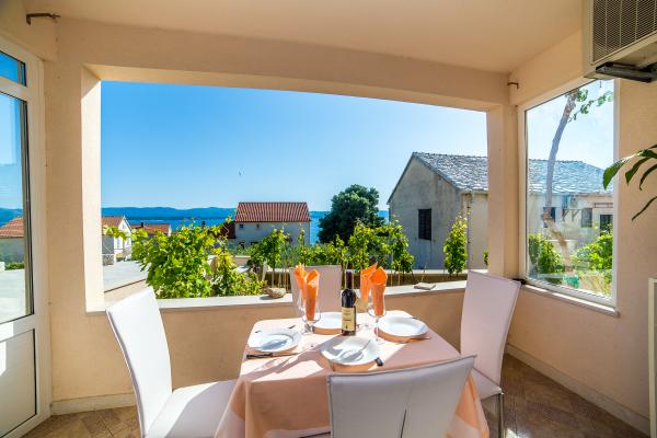 Center Apartments zijn gelegen in het centrum van de stad, 50 meter boven de haven. In de buurt van het postkantoor, bank, apotheek, politie, markt, restaurants en een supermarkt. Stranden in de buurt van het Dominicaanse klooster en het hotel White House ligt op 5 minuten lopen. Van het eiland Bol naar het strand Zlatni rat er lokale boten en een toeristisch treintje. Het huis werd 10 jaar geleden gebouwd in een moderne stijl. De woning heeft een eigen parkeerplaats. Onze gasten kunnen de barbecue gebruiken voor de bereiding van vis of vlees gebraad. In hetzelfde huis woont en onze familie en we zijn altijd blij om onze gasten te bedienen. Apartments Center is samengesteld uit drie afzonderlijke četeverokrevetna appartementen. De appartementen zijn goed ingericht en uitgerust en hebben een eigen terras met uitzicht op de zee. Twee extra appartementen zijn voorzien van satelliet-tv, Wi-Fi internet, en twee airconditioners. Appartementen Mima zijn gelegen aan de westkant van Bol, op een toplocatie, op slechts 300 meter afstand van het stadscentrum en op 200 meter van het strand. Het strand Zlatni rat is 15 minuten. te voet.