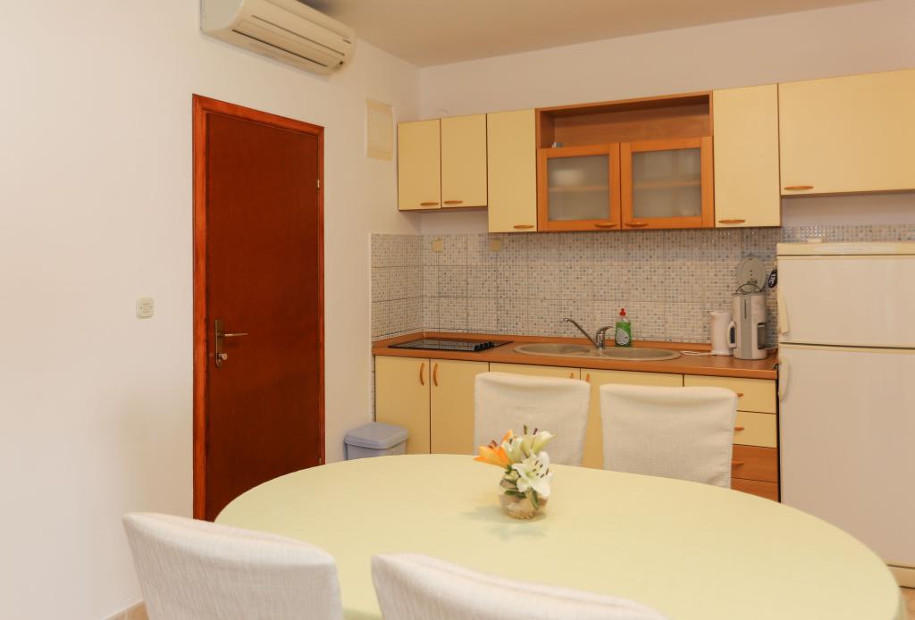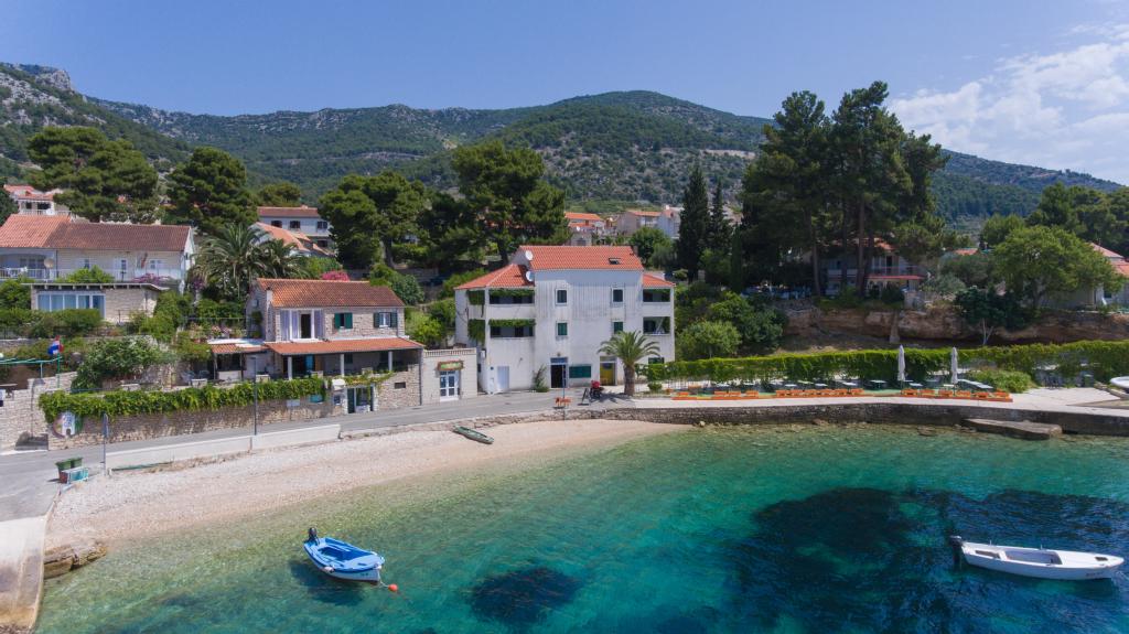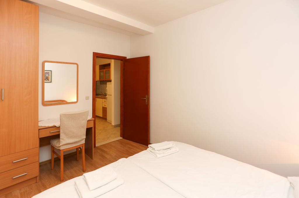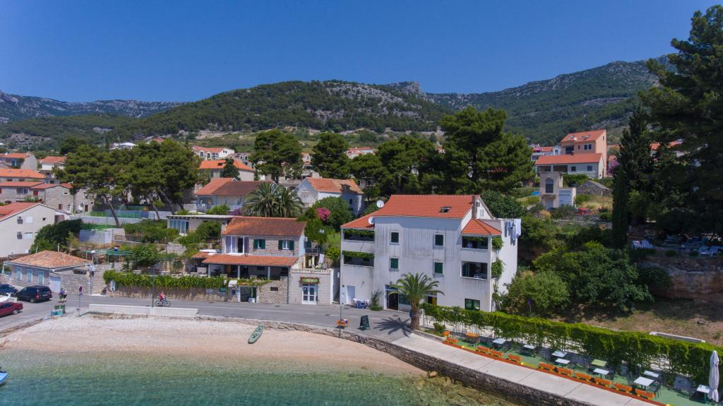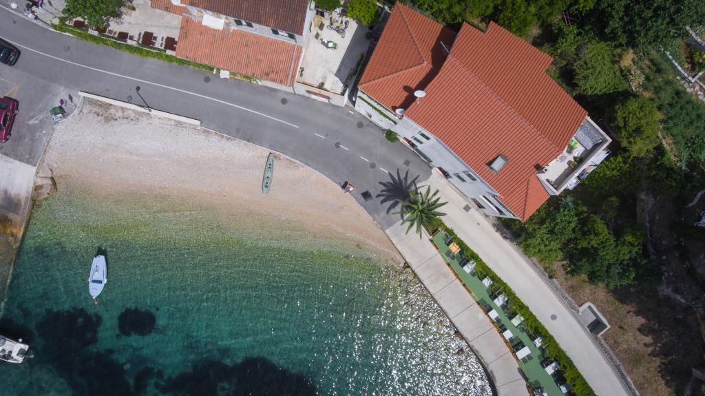 De appartementen Laguna liggen halverwege tussen het stadscentrum en het Dominicanenklooster. Elk appartement beschikt over een slaapkamer met een tweepersoonsbed, een slaapkamer met twee eenpersoonsbedden, een badkamer, een keuken en een groot terras met uitzicht op zee. Het stadscentrum ligt op 150 meter afstand. Binnen een straal van 100 meter bevinden zich 3 à-la-carte restaurants met Dalmatische gerechten en twee pizzeria's. Het restaurant op de begane grond is gesloten vanwege geluidsoverlast, dus het dichtstbijzijnde à-la-carte restaurant ligt op 50 meter afstand.