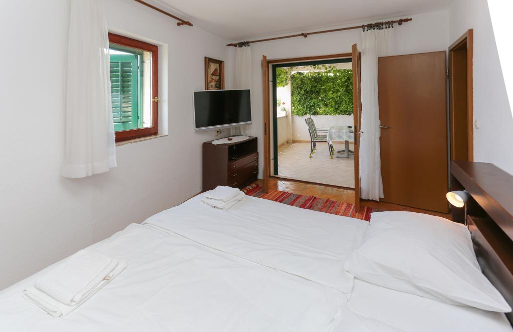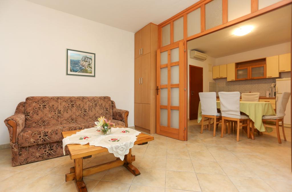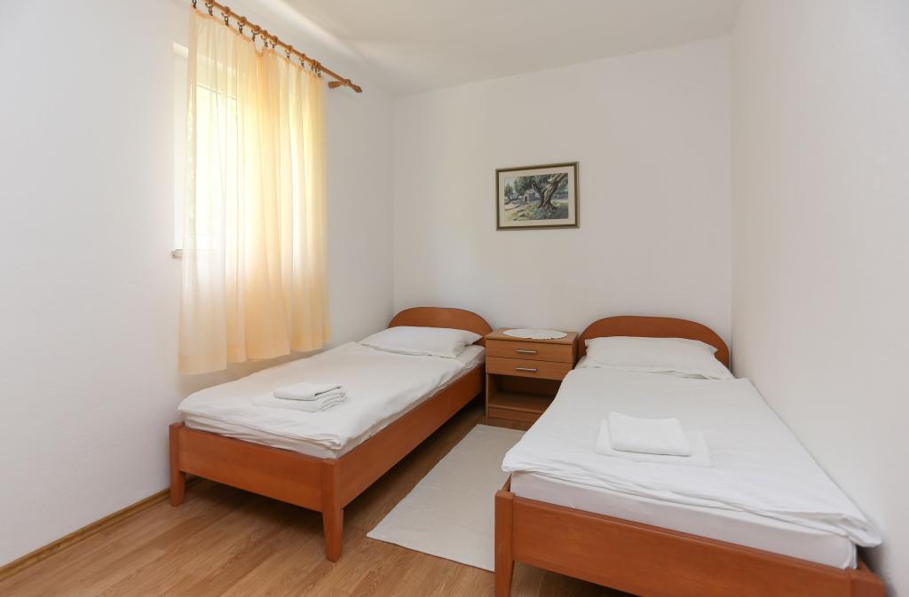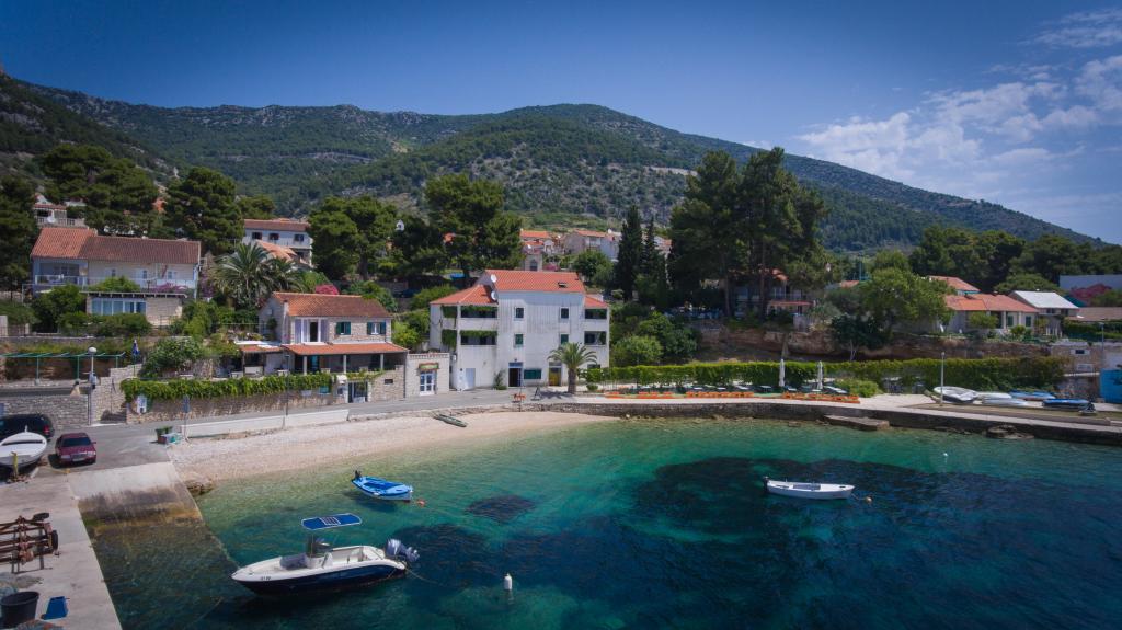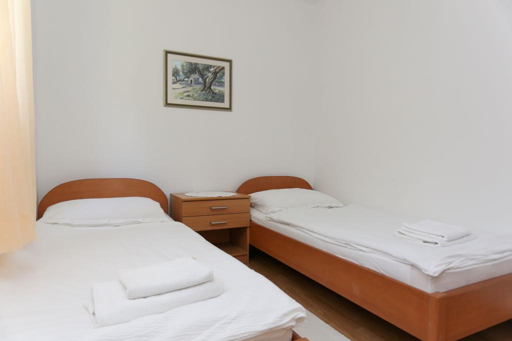 De appartementen Laguna liggen halverwege tussen het stadscentrum en het Dominicanenklooster. Elk appartement beschikt over een slaapkamer met een tweepersoonsbed, een slaapkamer met twee eenpersoonsbedden, een badkamer, een keuken en een groot terras met uitzicht op zee. Het stadscentrum ligt op 150 meter afstand. Binnen een straal van 100 meter bevinden zich 3 à-la-carte restaurants met Dalmatische gerechten en twee pizzeria's. Het restaurant op de begane grond is gesloten vanwege geluidsoverlast, dus het dichtstbijzijnde à-la-carte restaurant ligt op 50 meter afstand.