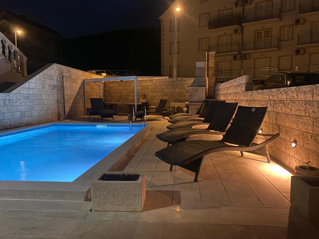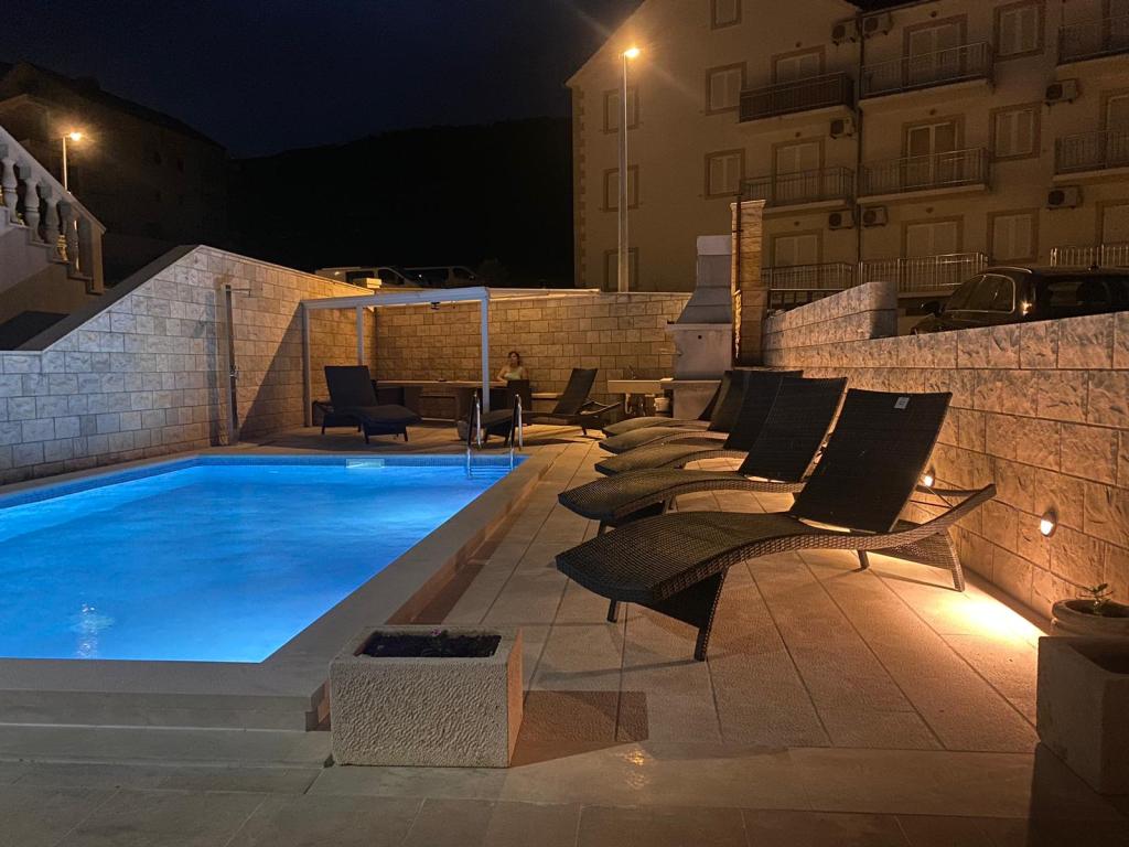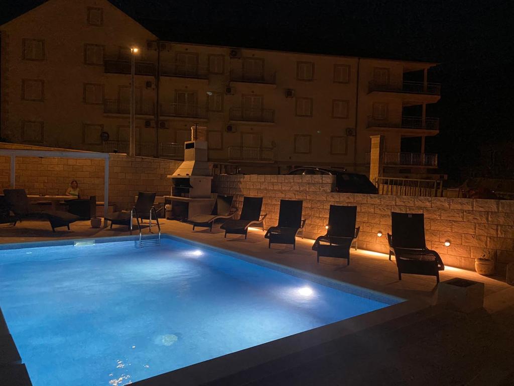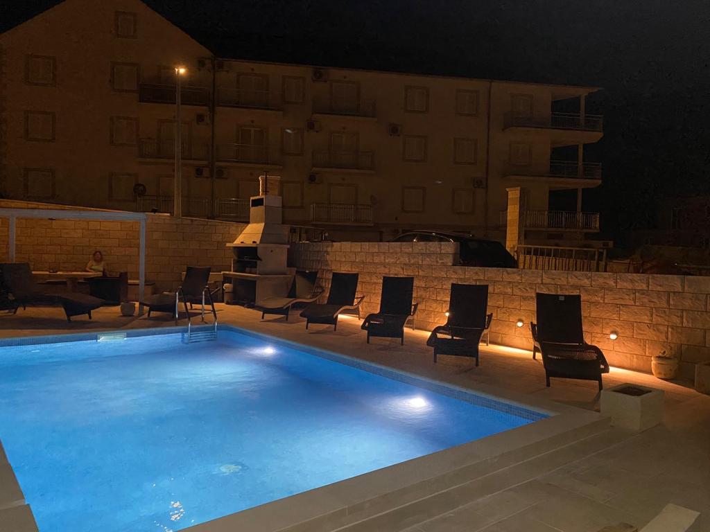 Volledig uitgeruste en moderne appartementen in Bol, 100 m van het centrum en 200 m van het eerste strand. Appartement Lux heeft twee aparte slaapkamers, twee badkamers, twee terrassen (een met uitzicht op zee), grote keuken, eetkamer, airconditioning, tv, satelliet, gratis internet. Aan de voorzijde van het huis is een tuin en grill voor u tijdens de dienst.