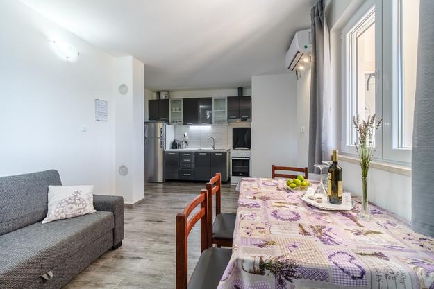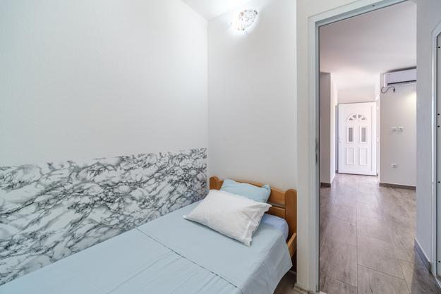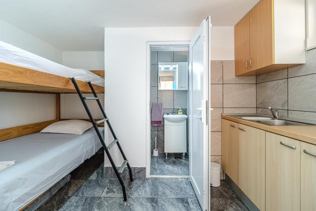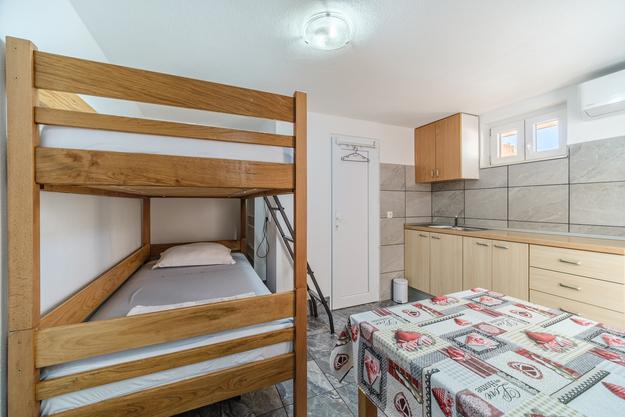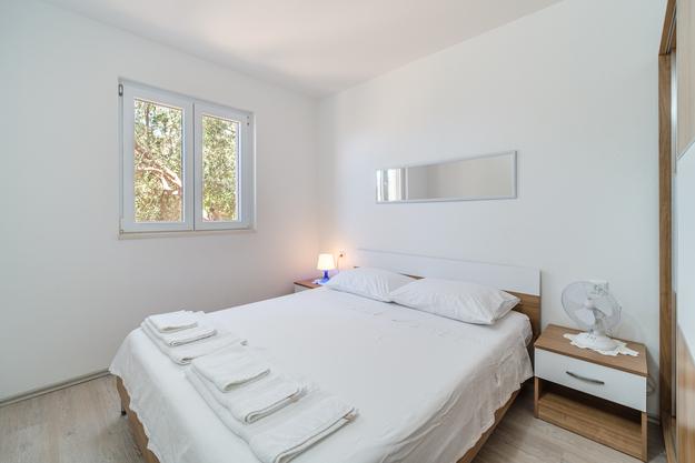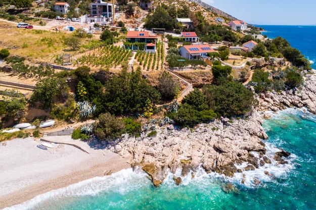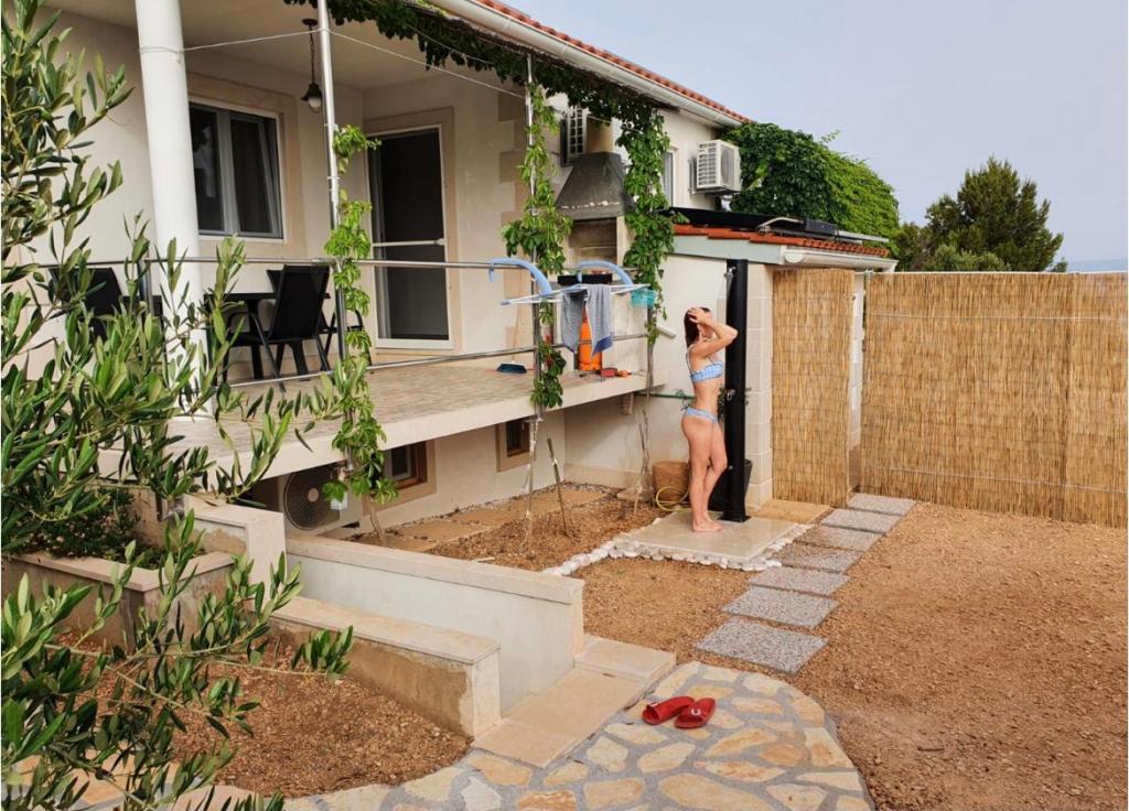 Uniek appartement. 20 meter van de zee. Eigen parkeerplaats (2 auto's) en eigen ingang naar het strand, dat op 50 meter afstand ligt. Het appartement is het enige met airconditioning in deze baai en gasten kunnen gebruik maken van gratis WiFi, 2 e-bikes en 2 SUP's. Op het terras bevindt zich ook een buitendouche met uitzicht op zee. Deze advertentie omvat 2 afzonderlijke appartementen - bij de prijs inbegrepen. De eerste is een groter appartement van 40 m2 met twee slaapkamers (1 tweepersoonsbed, 1 eenpersoonsbed en een slaapbank voor een volwassene of twee jongere kinderen), keuken, badkamer en woonkamer. De tweede is een studio in de kelder (ongeveer 10 m2) met een stapelbed, badkamer en extra bed. De appartementen zijn in 2018 nieuw gebouwd. De appartementen zijn volledig zelfvoorzienend en worden aangedreven door zonnepanelen. Het appartement is verbonden met een ander identiek appartement dat onze familie gebruikt en dat niet wordt verhuurd. U bent de enige gasten en heeft een aparte ingang naar het strand. Het strand van Vela Farske is lichtjes afgesneden en een van de zeldzame parels van het eiland Brač.