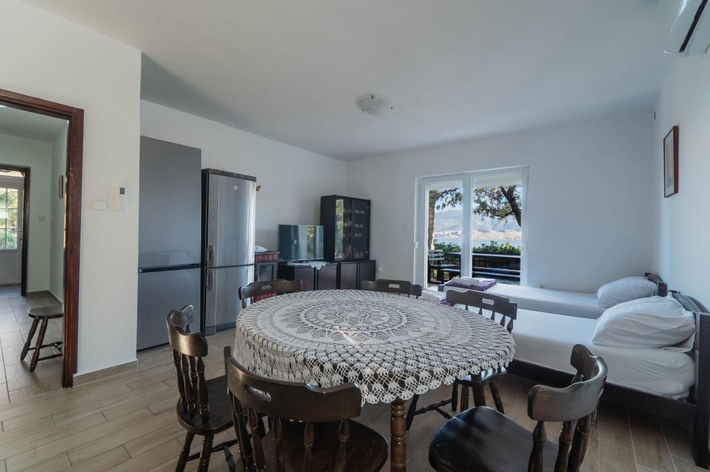 Het appartement waren we al 3 keer. Het appartement is ingericht standaard, 3 slaapkamers, keuken, badkamer, groot terras. 8-9 mensen kunnen passen zonder problemen. 2x airconditioning. Buitendouche. De eigenaar en zijn familie zijn zeer gastvrij en behulpzaam. Weg naar de zee na een levensvatbare pad ongeveer 100 m, mooi, klein strand kiezels. Meer kleine en grote romantische stranden in de omgeving, als je een stuk of per auto te bereiken. Schone zee, prachtige. Ik beveel het.