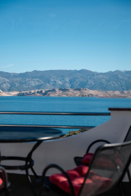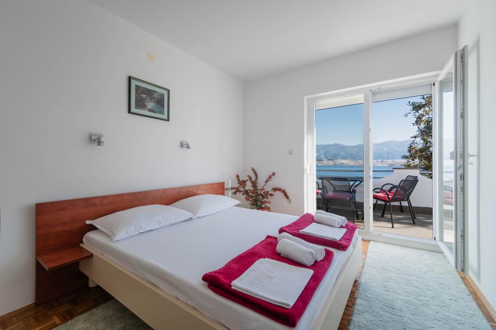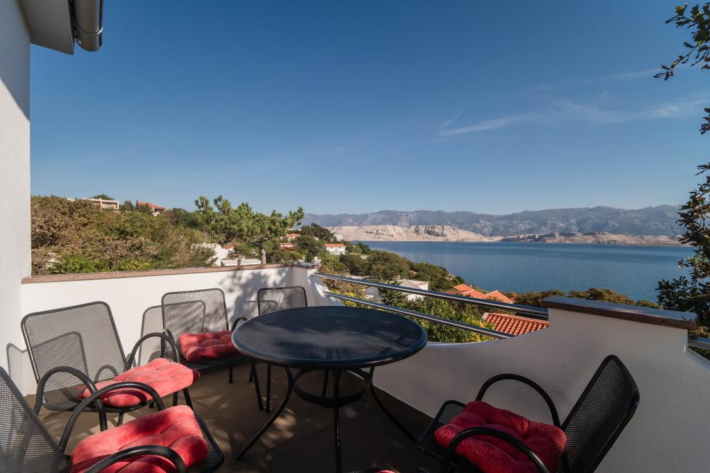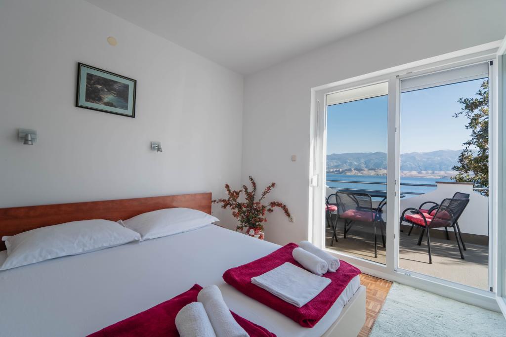 Inlusief wel Toeristenbelasting. Boekingsbevestigingsdocument bij reserveringWe huurden beide appartementen met een groep vrienden en kinderen. Het is een zeer rustige, afgelegen, groene locatie met een prachtig uitzicht. Beide appartementen zijn zorgvuldig en goed uitgerust, en de gastheren zijn erg vriendelijk. Het bovenste appartement is zonniger en bestaat uit drie tweepersoonsslaapkamers (waarvan één verbonden is met de eetkamer), een keuken en een badkamer. Eén slaapkamer heeft een extra slaapbank. Het appartement heeft twee airco's en een zonnig terras, dat 's middags voor welkome schaduw zorgt. Het onderste appartement bestaat uit drie slaapkamers (de eerste is een grote tweepersoonsslaapkamer, de tweede is een kleine tweepersoonsslaapkamer en de derde is een kleine slaapkamer voor 1-1,5 persoon), een goed uitgeruste keuken met een eethoek en twee extra bedden, en een badkamer. Dit appartement heeft ook twee airco's. Het appartement heeft een schaduwrijk terras en toegang tot een kleine groene tuin met ligstoelen. Een groot voordeel van beide appartementen is dat alle ramen voorzien zijn van horren, dat er een wasmachine, een buitendouche, goed functionerende wifi en een eigen parkeerplaats aanwezig zijn. De toegang tot het strand is een vrij steile afdaling van drie minuten via een comfortabel, verhard pad met traptreden. Het strand is een prachtige baai, geschikt voor zowel kinderen als ervaren zwemmers, en is ook interessant voor snorkelliefhebbers. Een supermarkt, restaurants en andere bezienswaardigheden en diensten bevinden zich een paar kilometer verderop, in het charmante stadje Pag. De eigenaren van de appartementen zijn ongelooflijk vriendelijk en gastvrij, altijd ter plaatse en zorgen voor alles. Ze spreken goed Engels en reageren snel op vragen. De accommodatie bevalt ons uitstekend en raden wij aan.