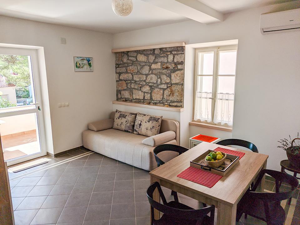 Appartementen TEREZIJA bevinden zich in het centrum van Božava op Dugi otok, op ongeveer 40 meter van de zee (waterkant). Er zijn drie wooneenheden (appartementen) in het huis. Alle appartementen hebben een beveiligde parkeerplaats, aparte ingang, keuken, ruime woonkamer, slaapkamer, badkamer, airconditioning, satelliet-tv, wifi internet en terras (balkon). Vanaf alle terrassen kunt u de zee, het grootste deel van de Božava-vallei en verre eilanden zien.