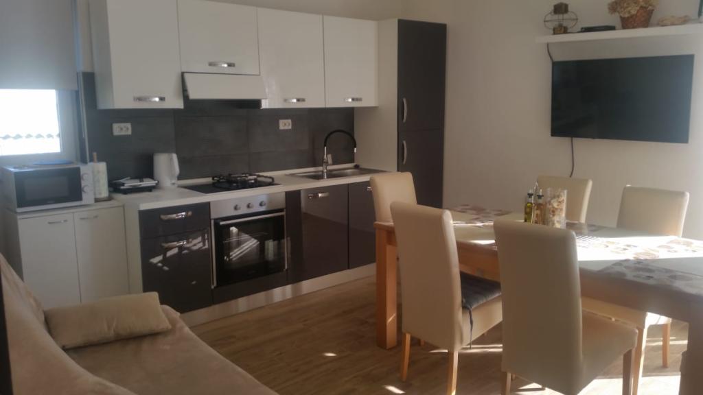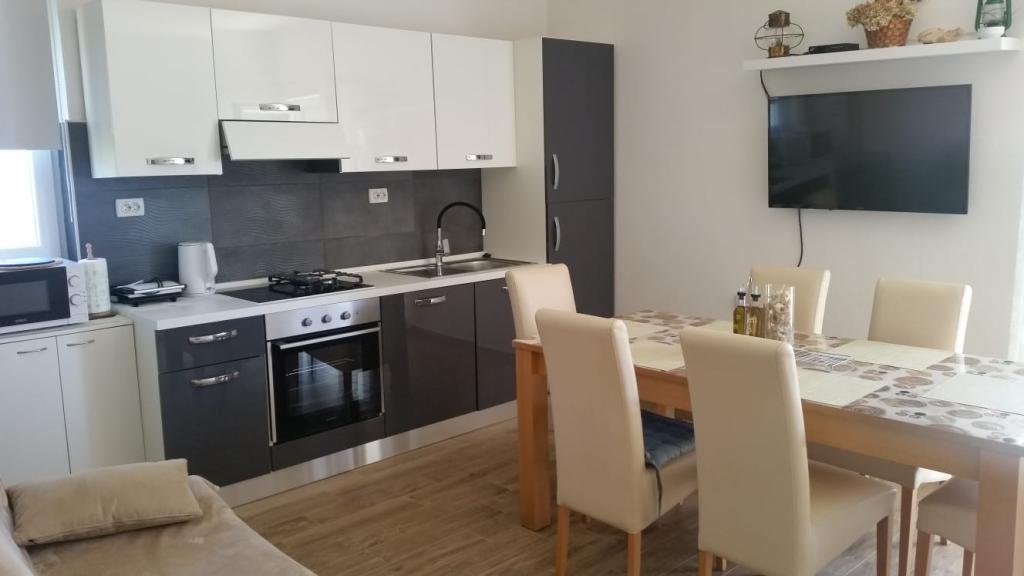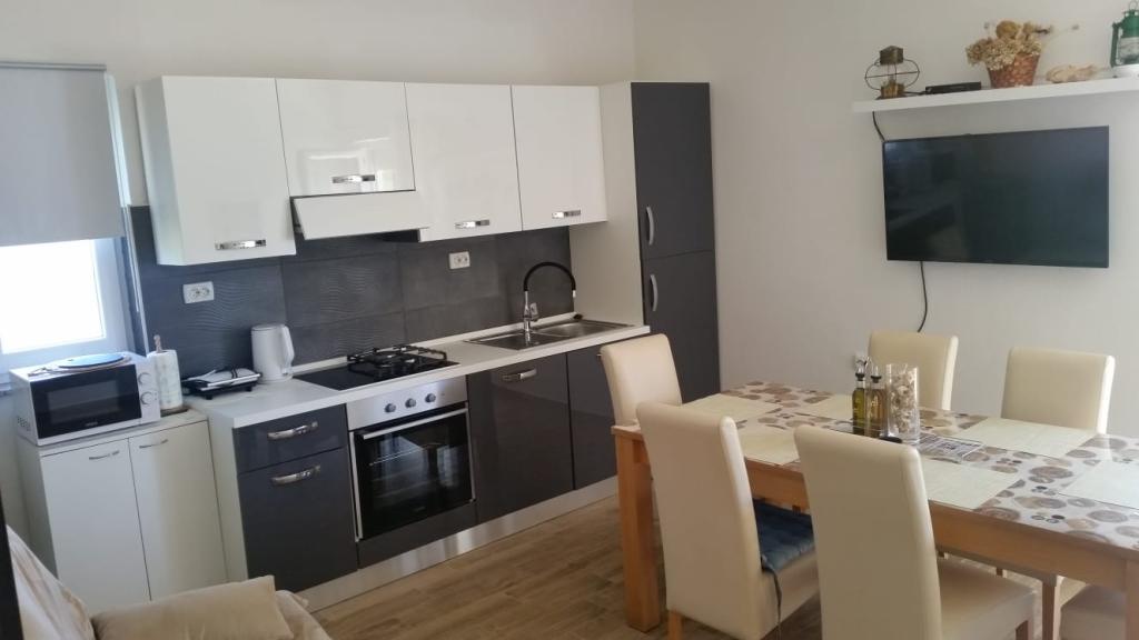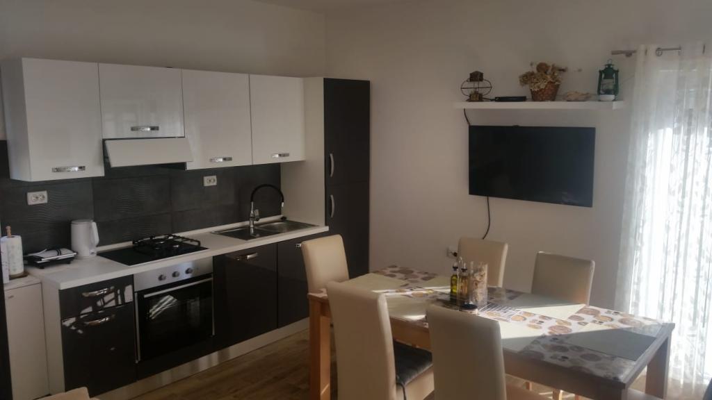 Het appartement is gelegen in Brbinj op Dugi otok, 10 meter van de zee, op de 1e verdieping en heeft een terras met uitzicht op de zee en de zonsondergang. In de buurt van het appartement bevinden zich twee restaurants. De accommodatie ligt op 3 minuten lopen van de veerhaven. Het appartement bestaat uit een keuken met woonkamer, drie slaapkamers, badkamer, extra toilet en terras. Het appartement is volledig uitgerust en voorzien van airconditioning. De keuken is modern en nieuw, en is voorzien van een vaatwasser, kookplaat, oven, koelkast met vriezer en magnetron. De eetkamer is ruim met een grote eettafel en bank, en toegang tot het terras. In de ruime hal bevinden zich een grote kastenwand, een onlangs gerenoveerde badkamer met douche, en drie slaapkamers die ruim en van alle gemakken zijn voorzien. Mogelijkheid om de overdekte barbecue in de tuin te gebruiken. . U kunt direct voor het appartement zwemmen. Alle andere mooie stranden van Dugi otok zijn met de auto in 10-15 minuten te bereiken. U kunt voor het huis parkeren.