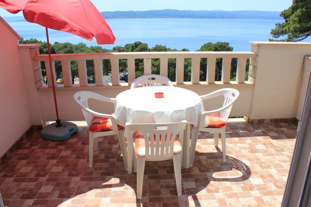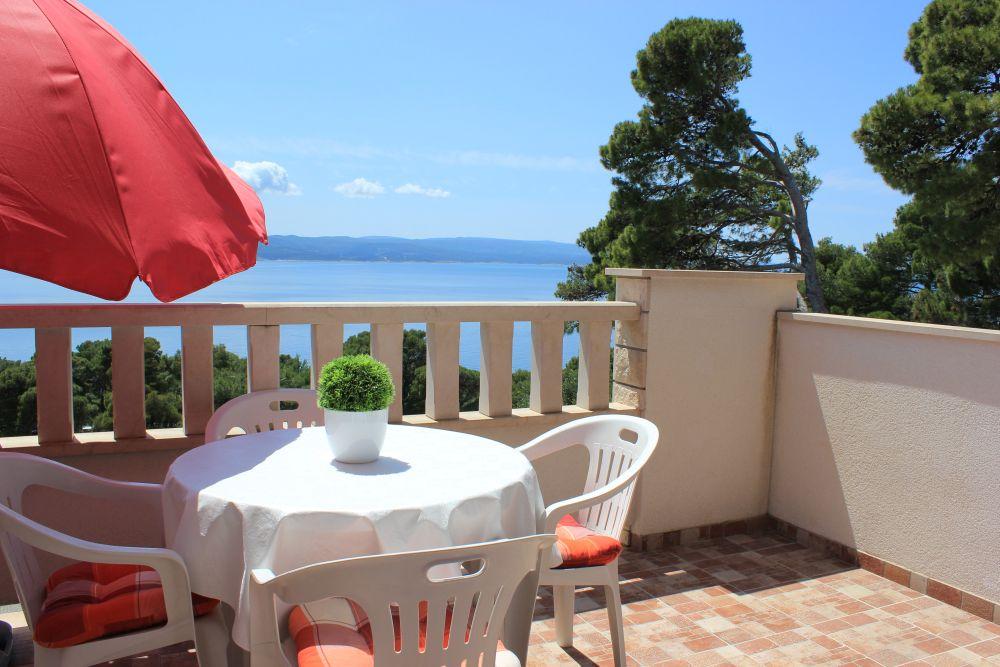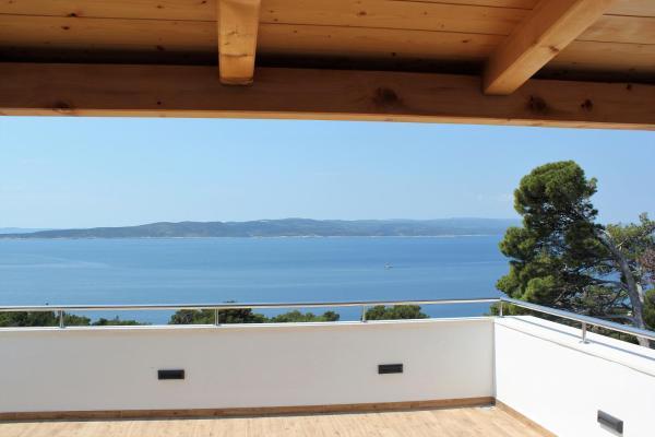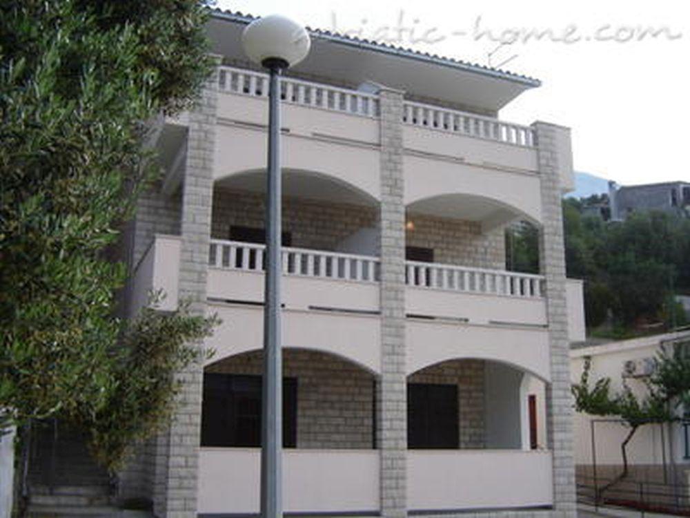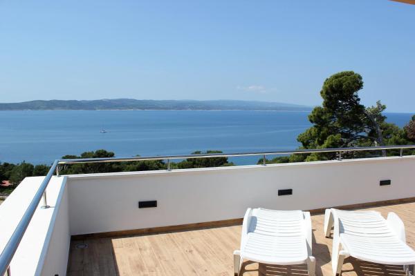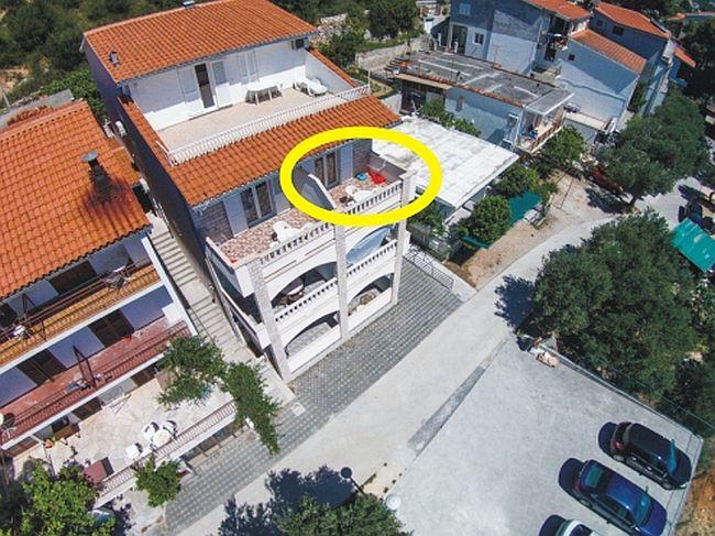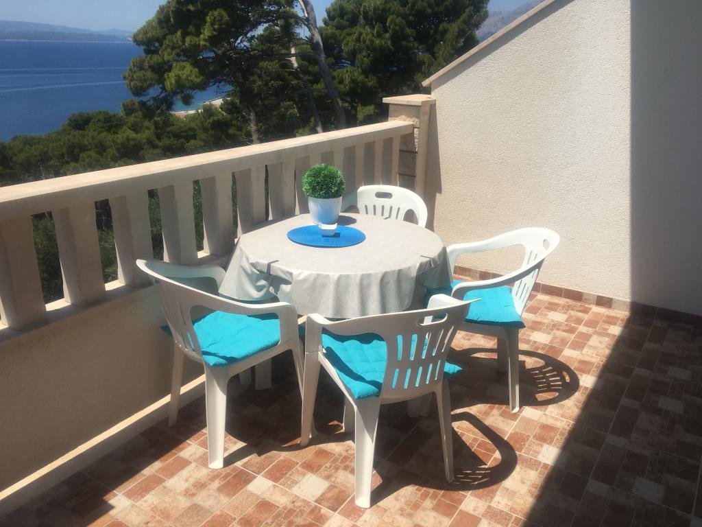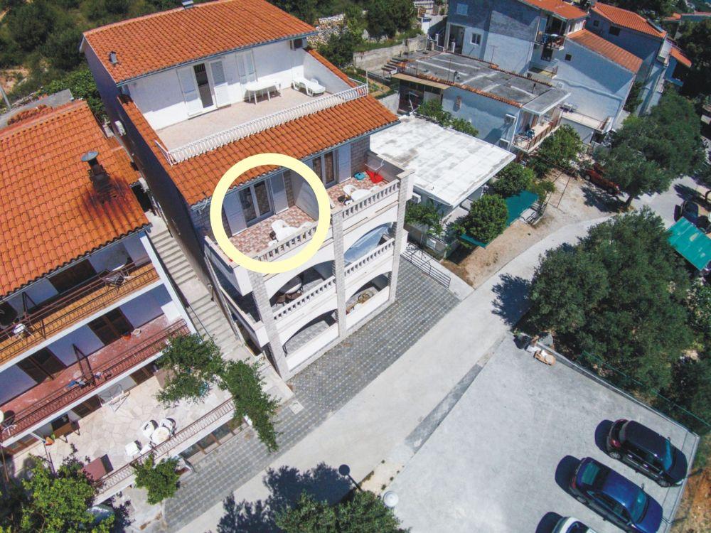 Het gebouw is gelegen in een zeer rustige (doodlopende) straat waar geen verkeer is (alleen auto's van de gasten en gebouweigenaren) en biedt een prachtig uitzicht op het dennenbos, de zee en het nabijgelegen eiland Brač. De afstand tot het strand en het centrum van de stad is ongeveer 300 meter. Onze parkeerplaats is beveiligd voor het gebouw.