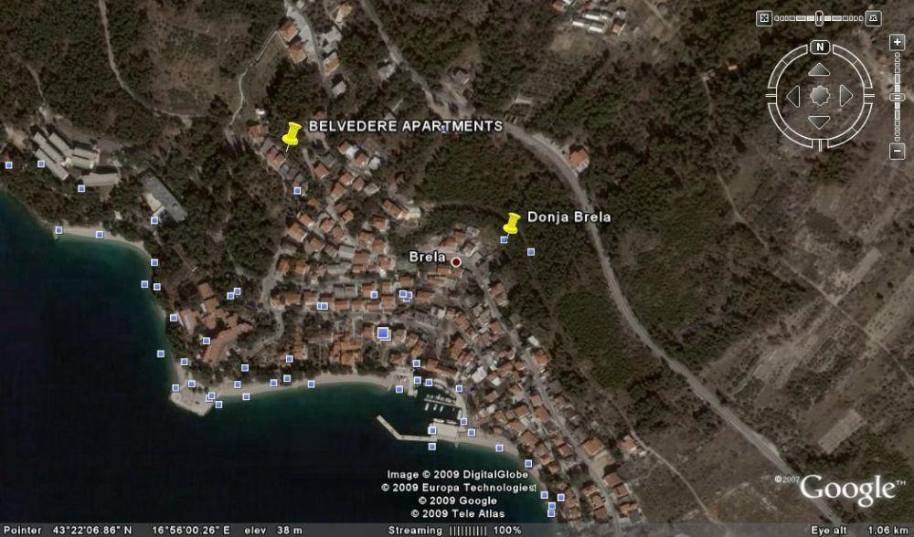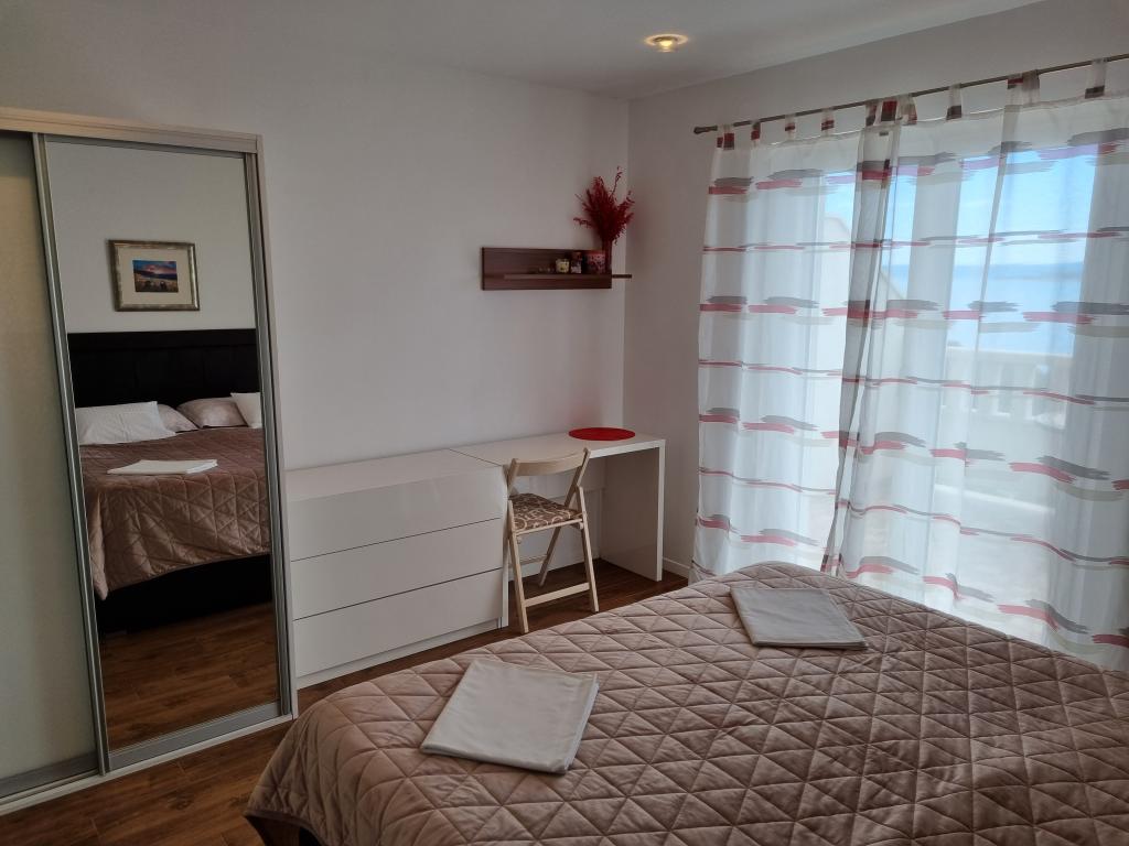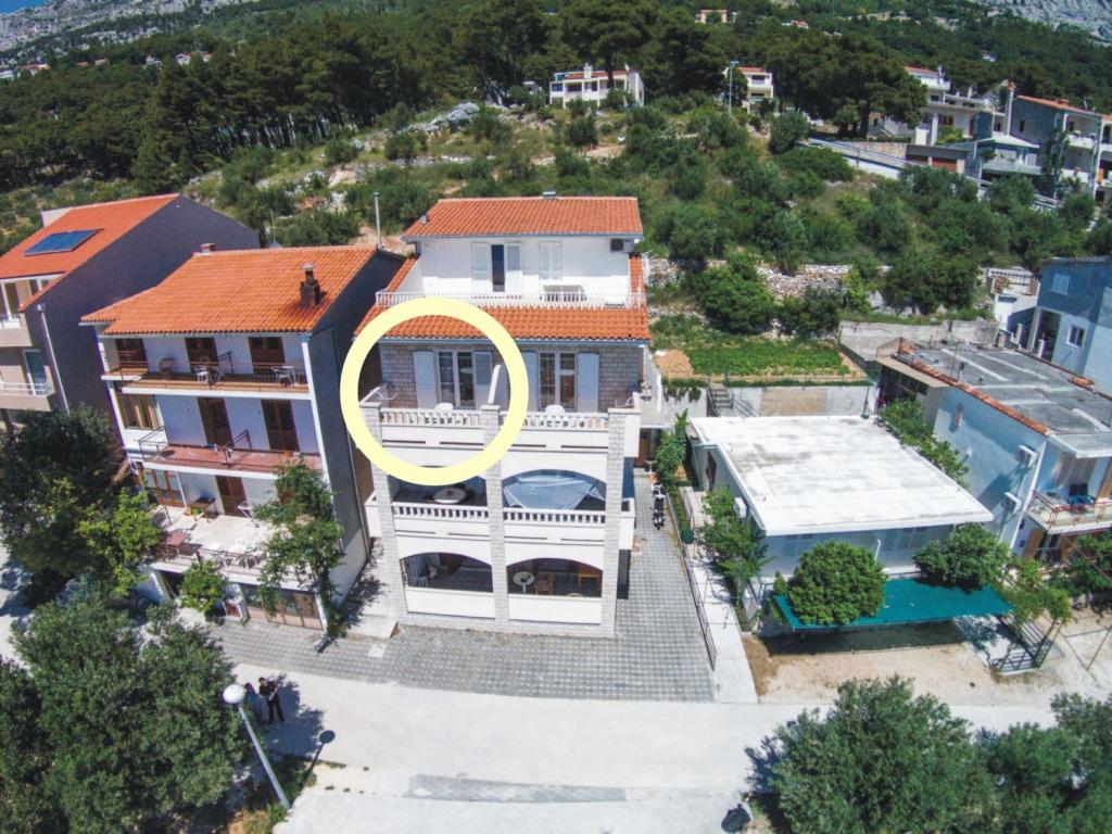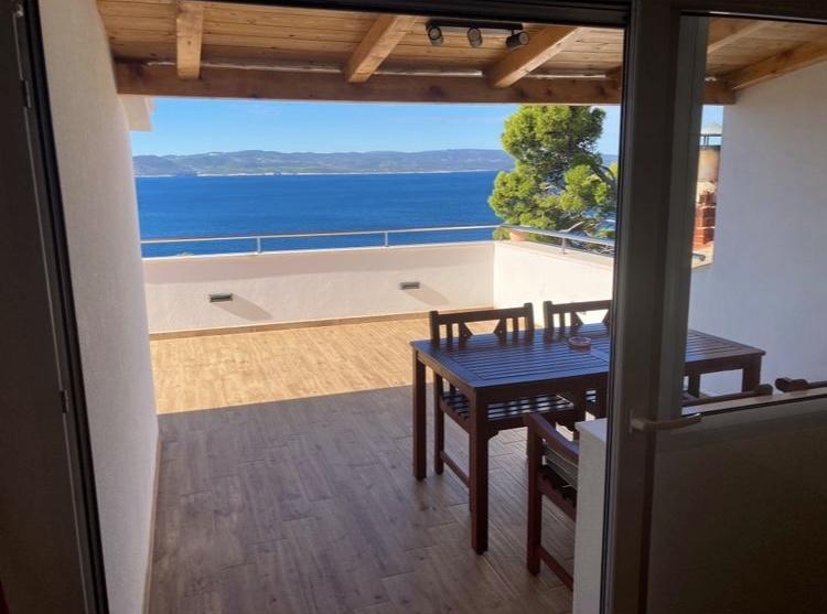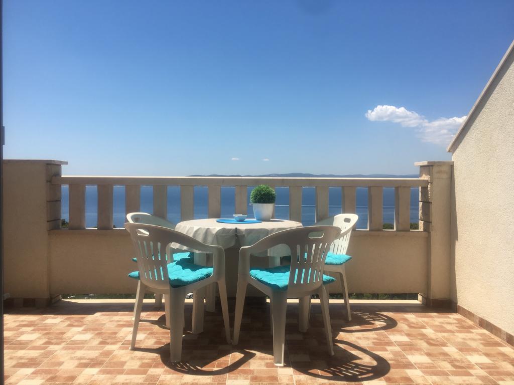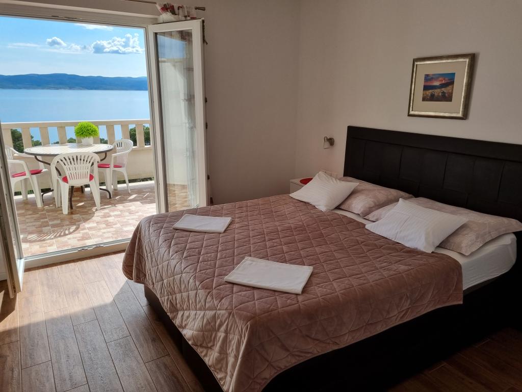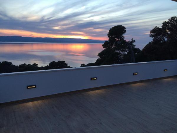 Het gebouw is gelegen in een zeer rustige (doodlopende) straat waar geen verkeer is (alleen auto's van de gasten en gebouweigenaren) en biedt een prachtig uitzicht op het dennenbos, de zee en het nabijgelegen eiland Brač. De afstand tot het strand en het centrum van de stad is ongeveer 300 meter. Onze parkeerplaats is beveiligd voor het gebouw.
