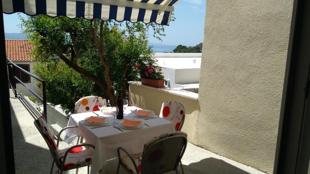 Appartement gelegen in een rustige buurt van Brela, tweede rij aan zee. De faciliteit ligt op 3 minuten. lopen naar prachtige stranden. Afstand van het centrum 50 m.